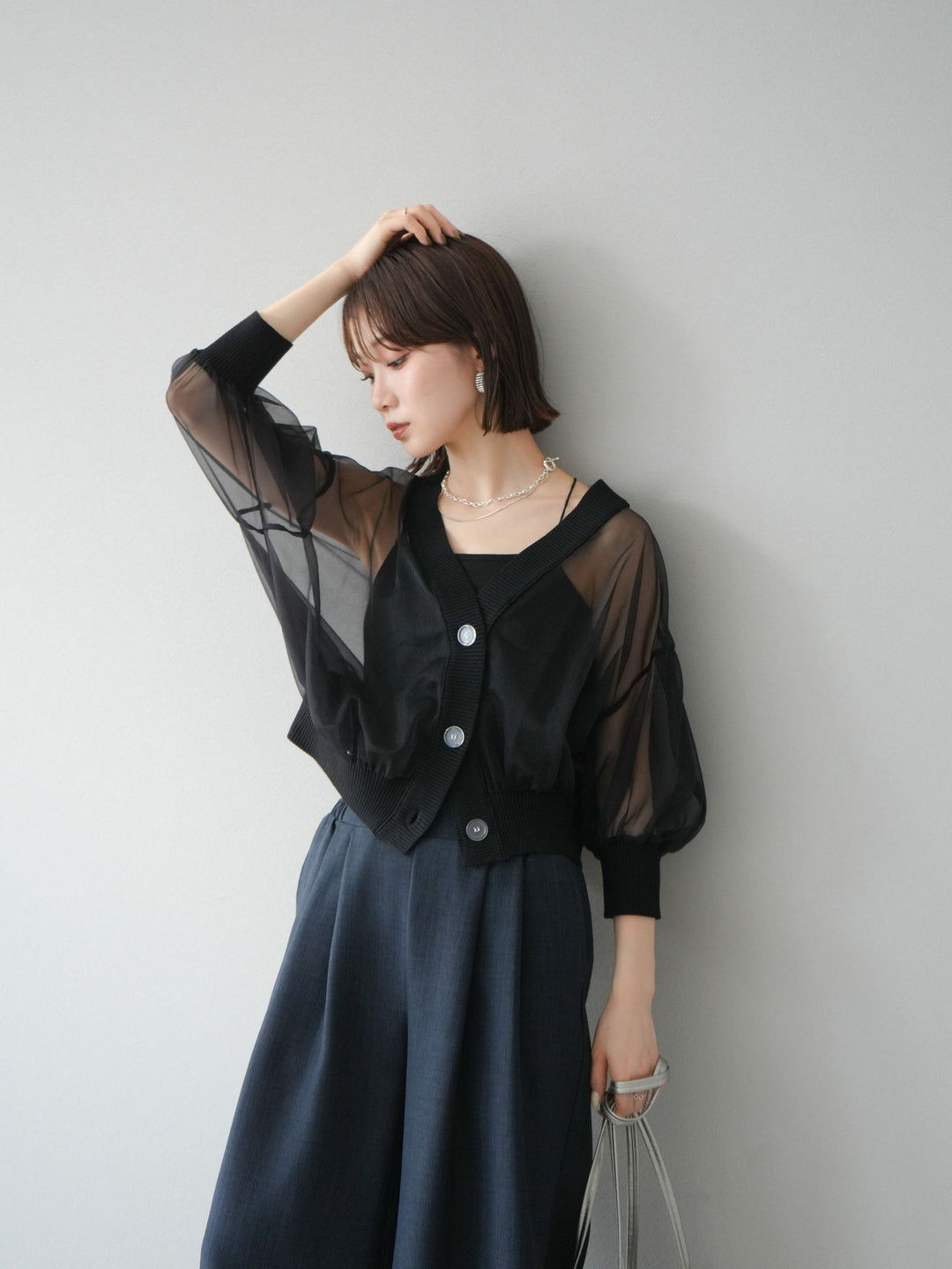 [予約]ボリュームスリーブシャギー MIXニットプルオーバー/charcoal