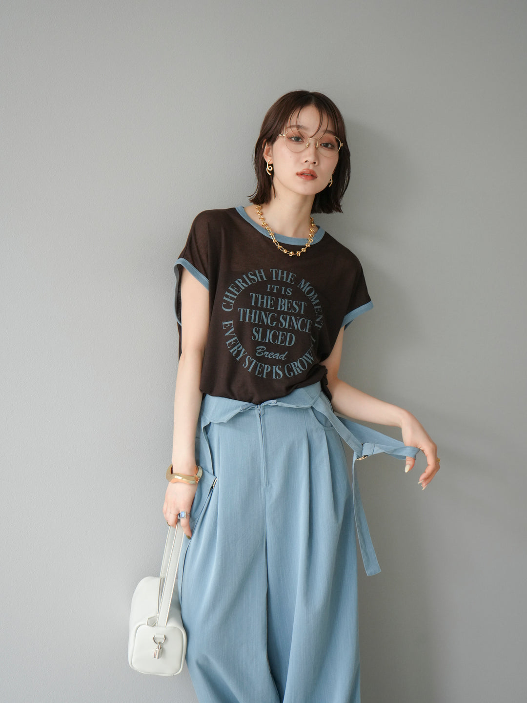 [予約]ラメ異素材ボーダーリブニットプルオーバー/brown×red