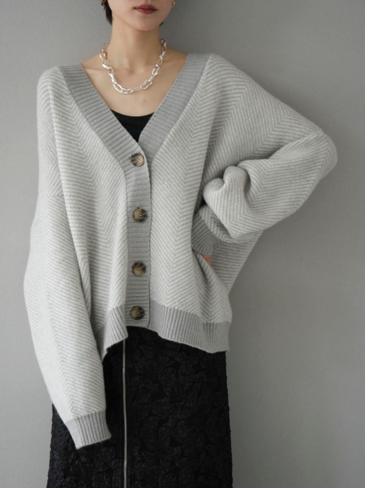 [予約]ミックスヤーンダブルZIPニットカーディガン/gray