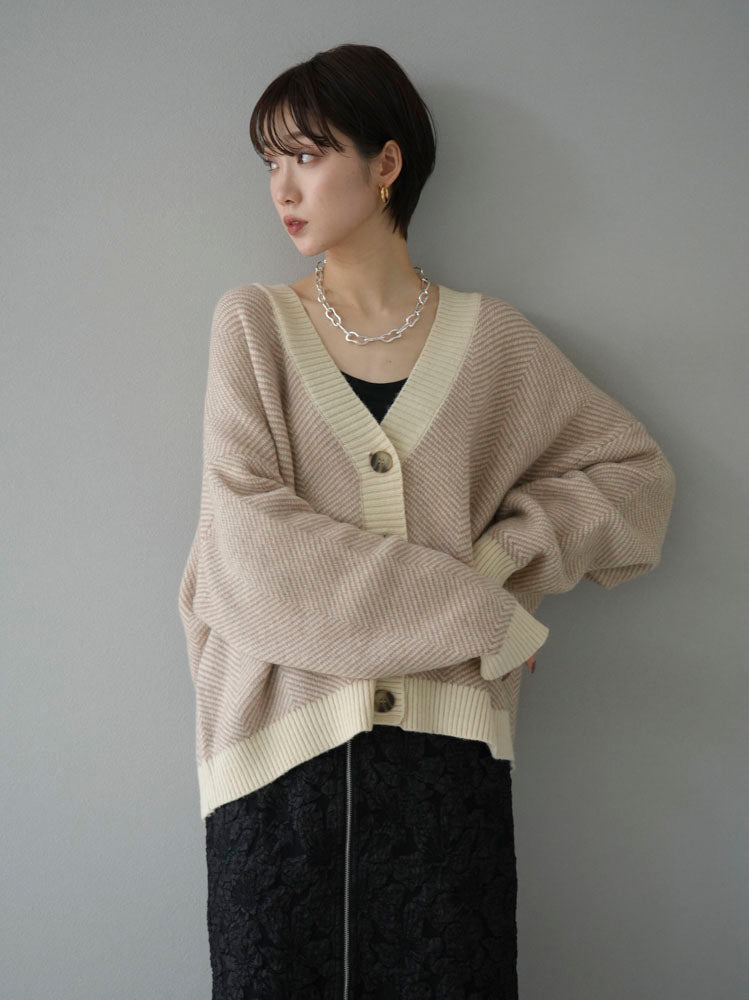 [予約]ミックスヤーンダブルZIPニットカーディガン/brown