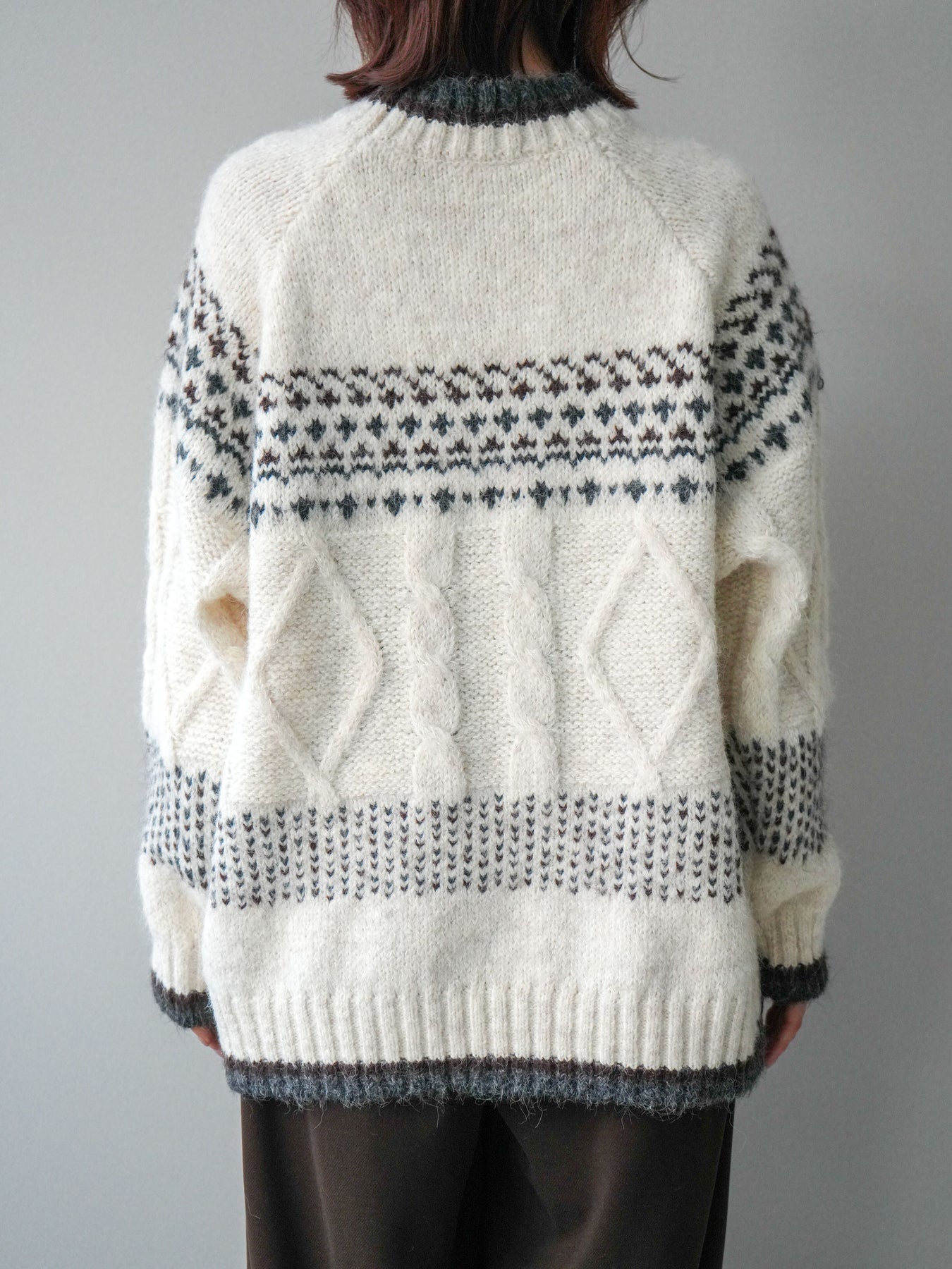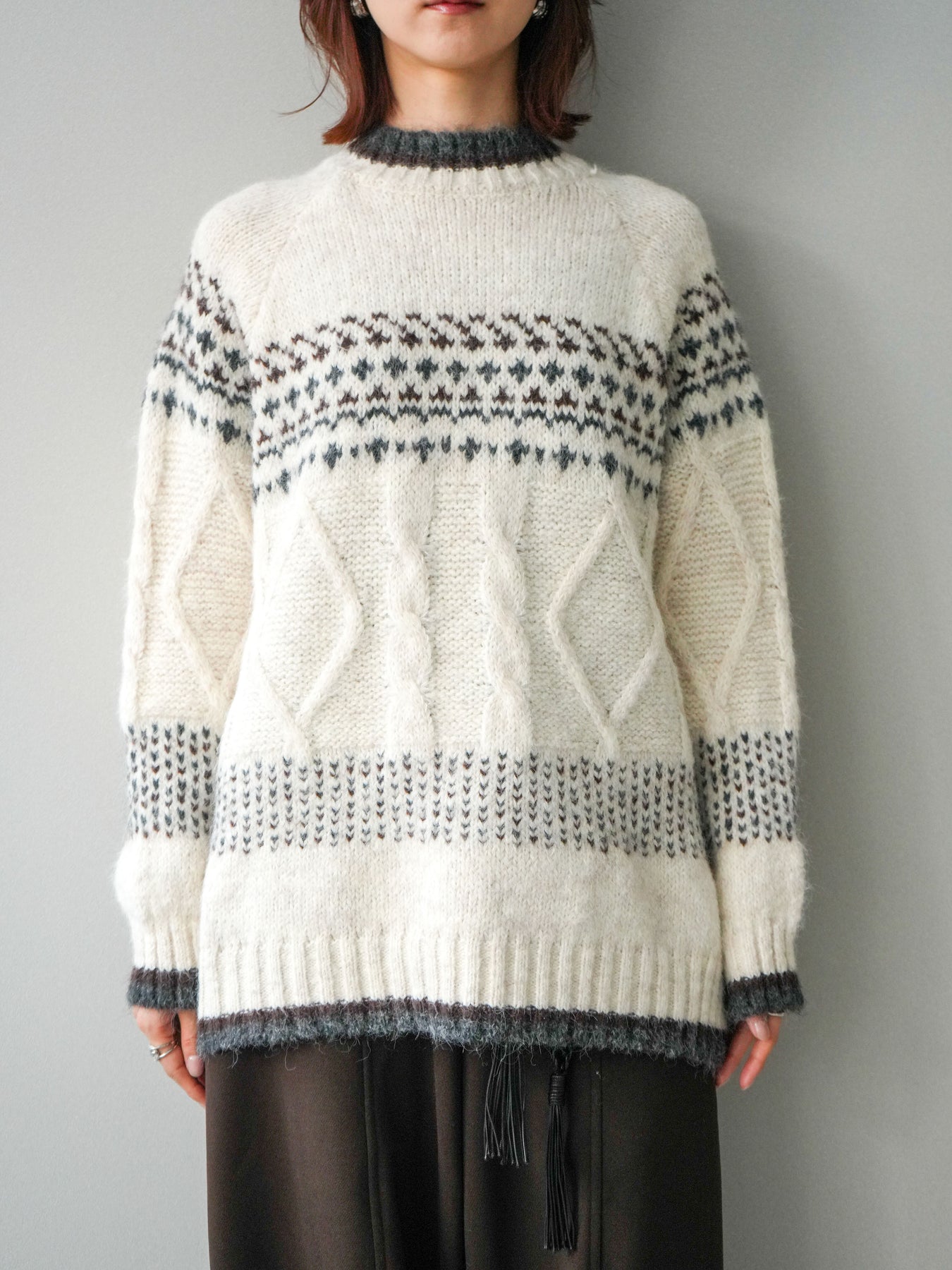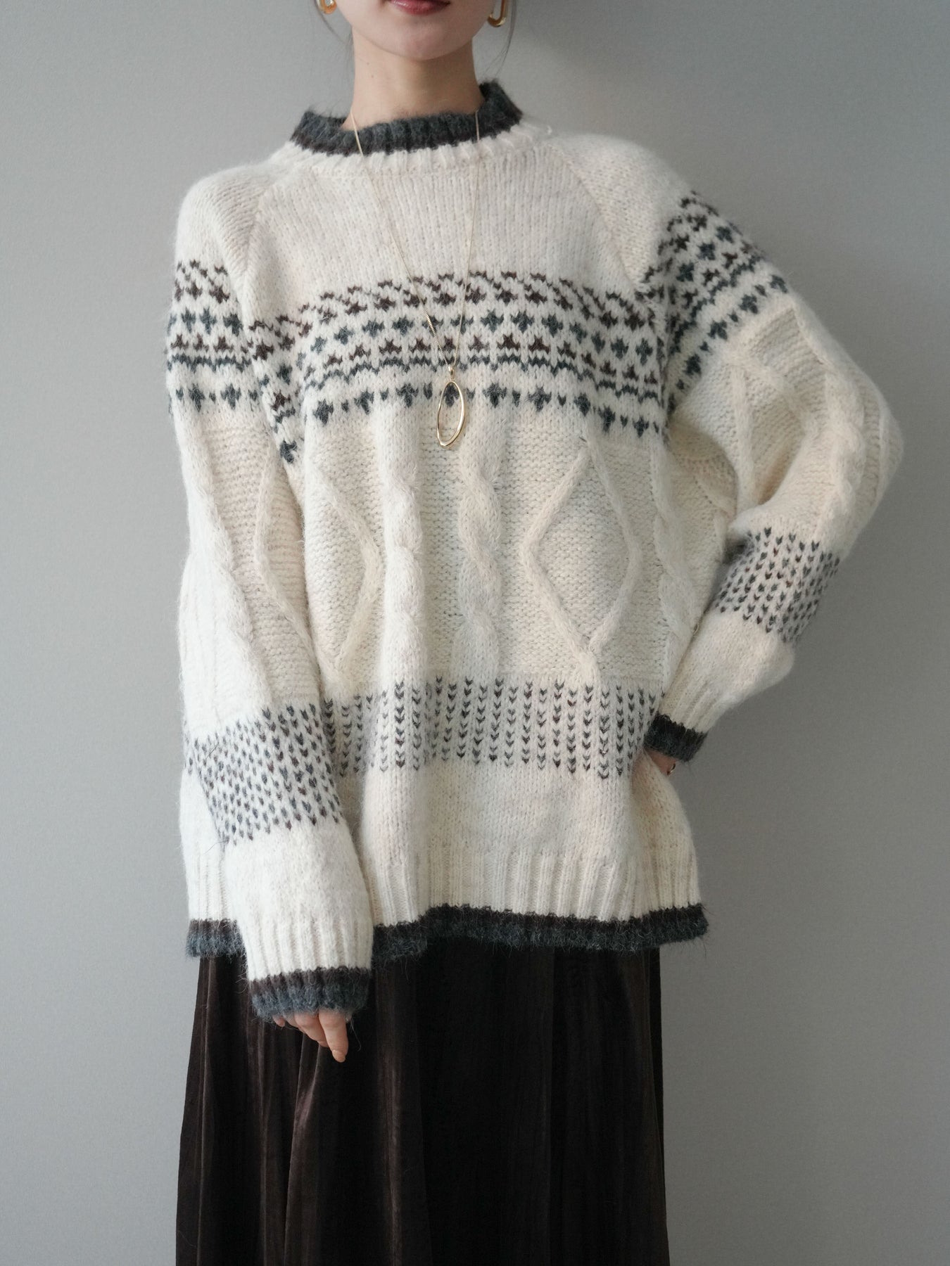 [予約]裾配色ノルディック柄ニットプルオーバー/White