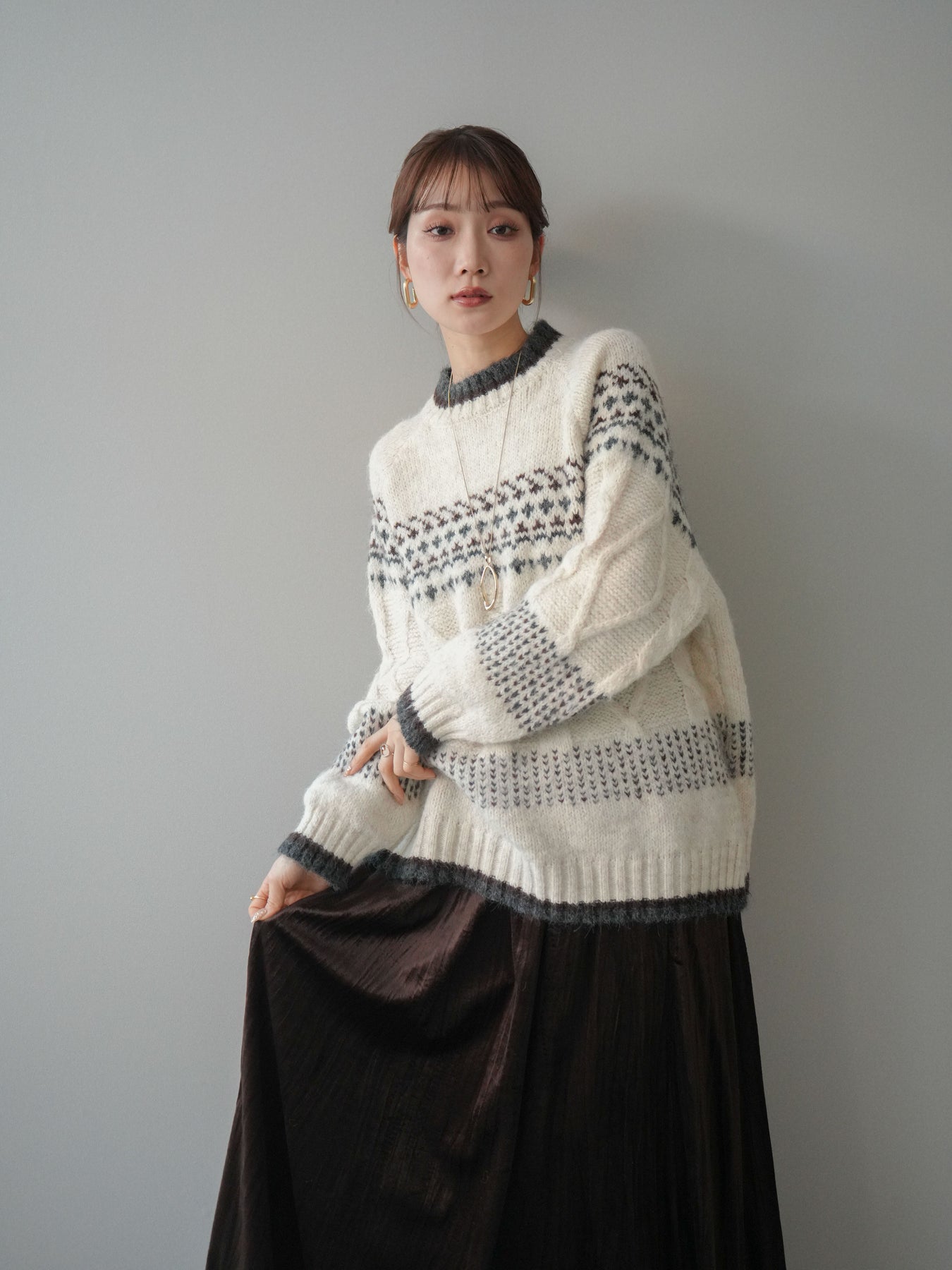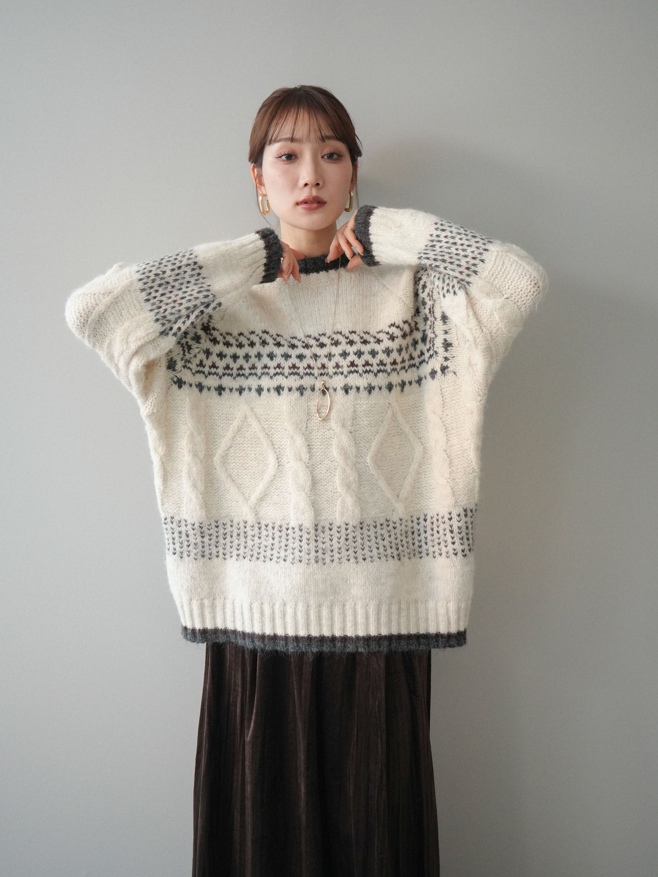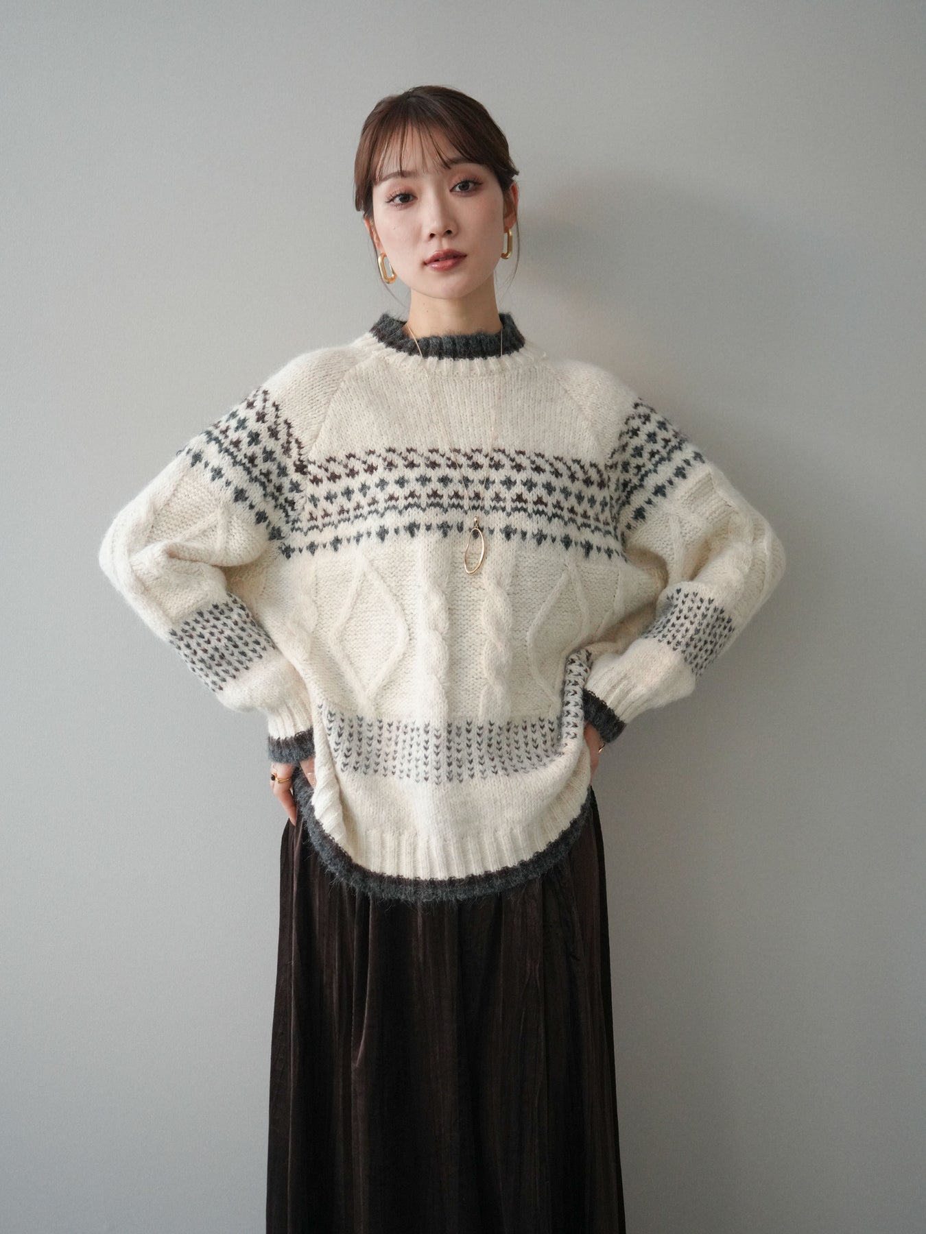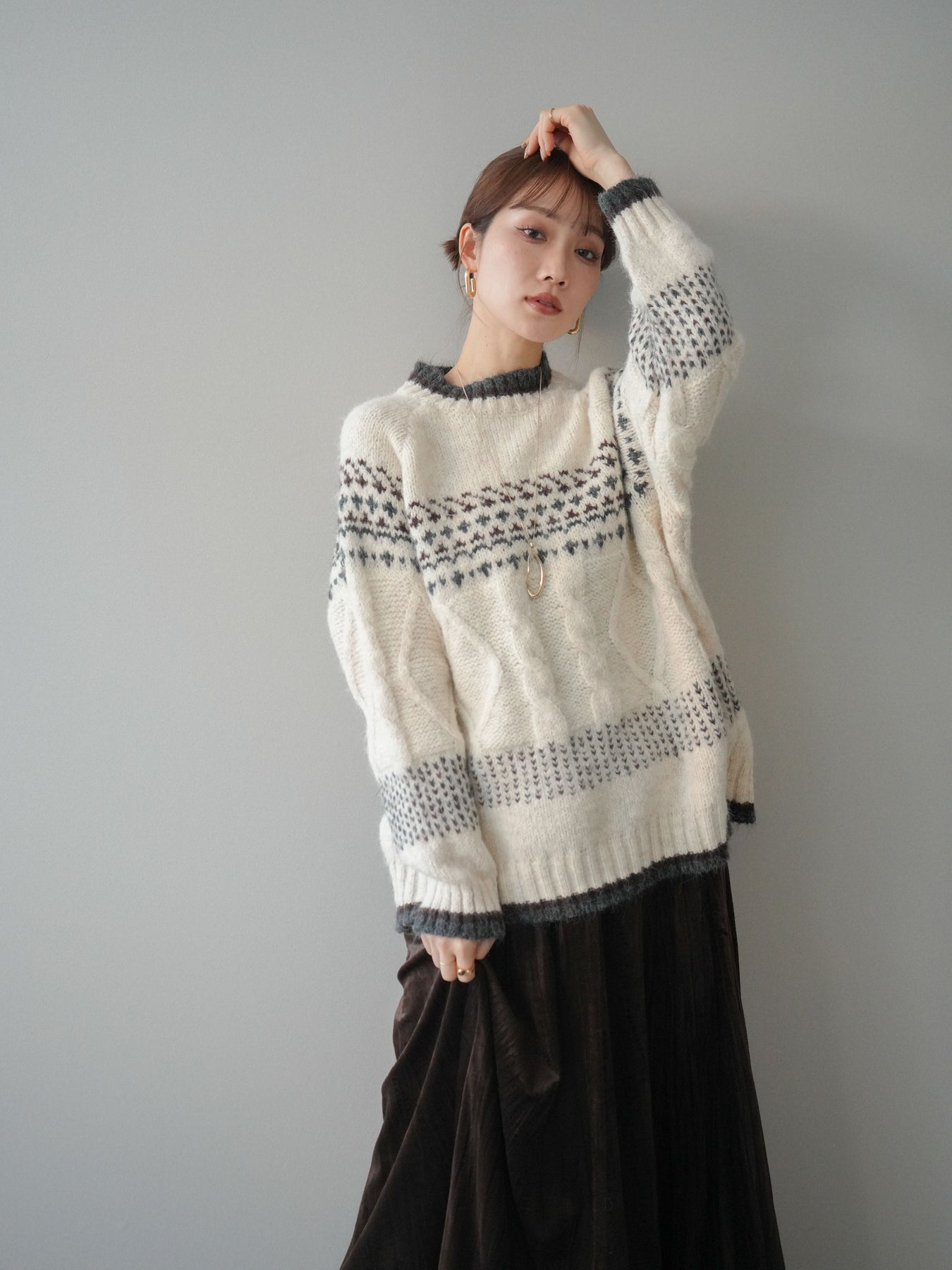 [予約]裾配色ノルディック柄ニットプルオーバーに関連する商品を探す↓