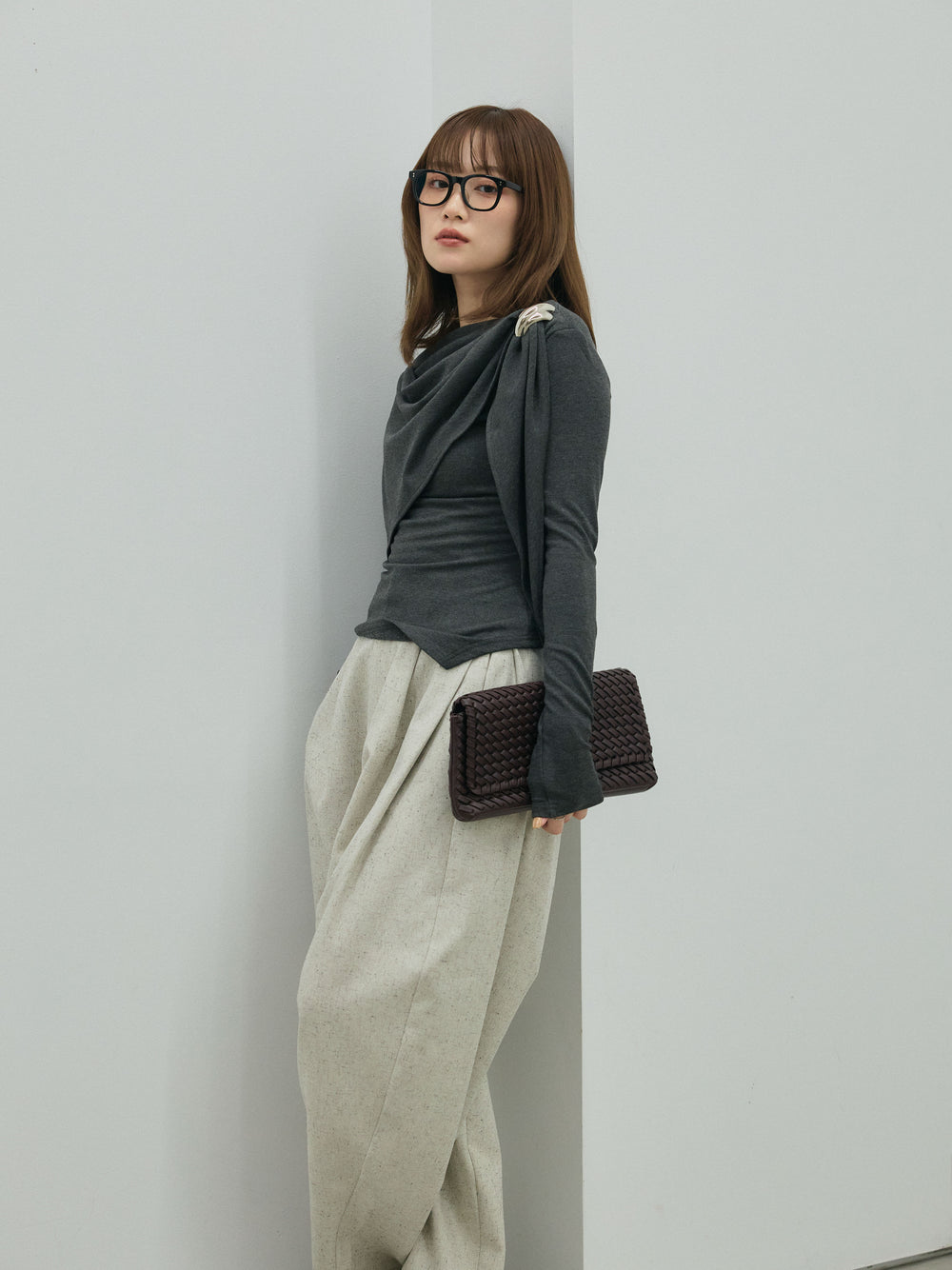 [予約]ブローチ付ドレープ裏起毛トップス/gray