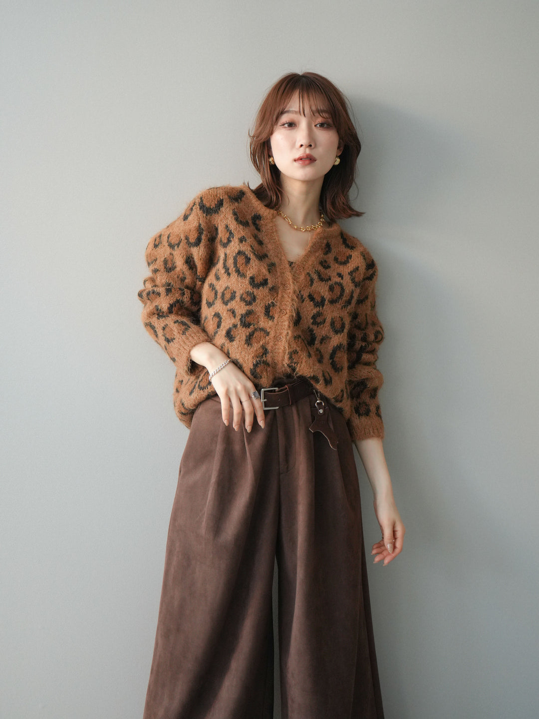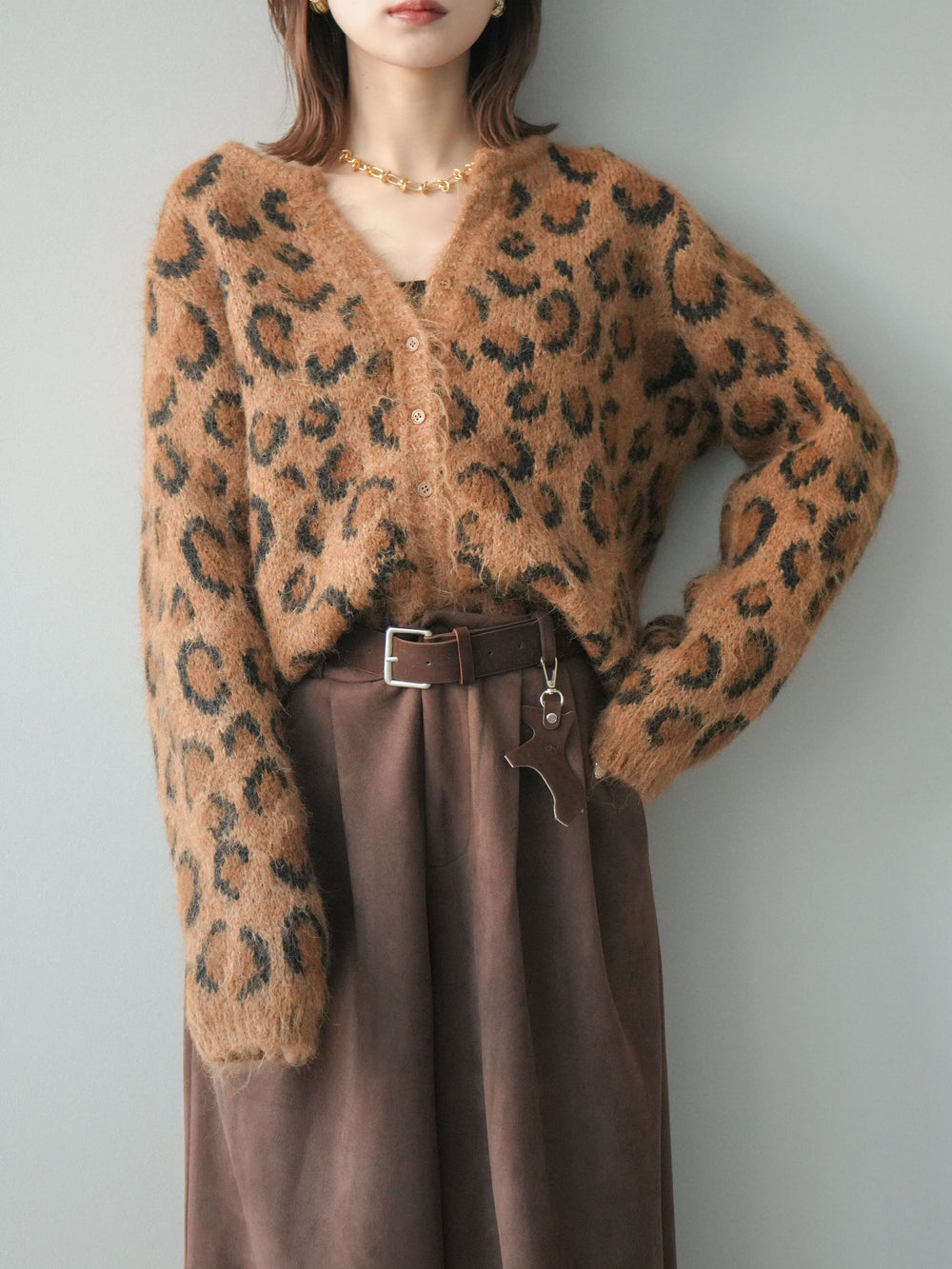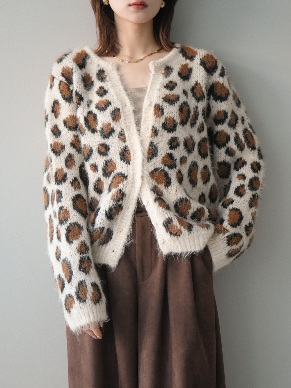 [予約]モヘアタッチレオパード柄ニットカーディガン/apricot