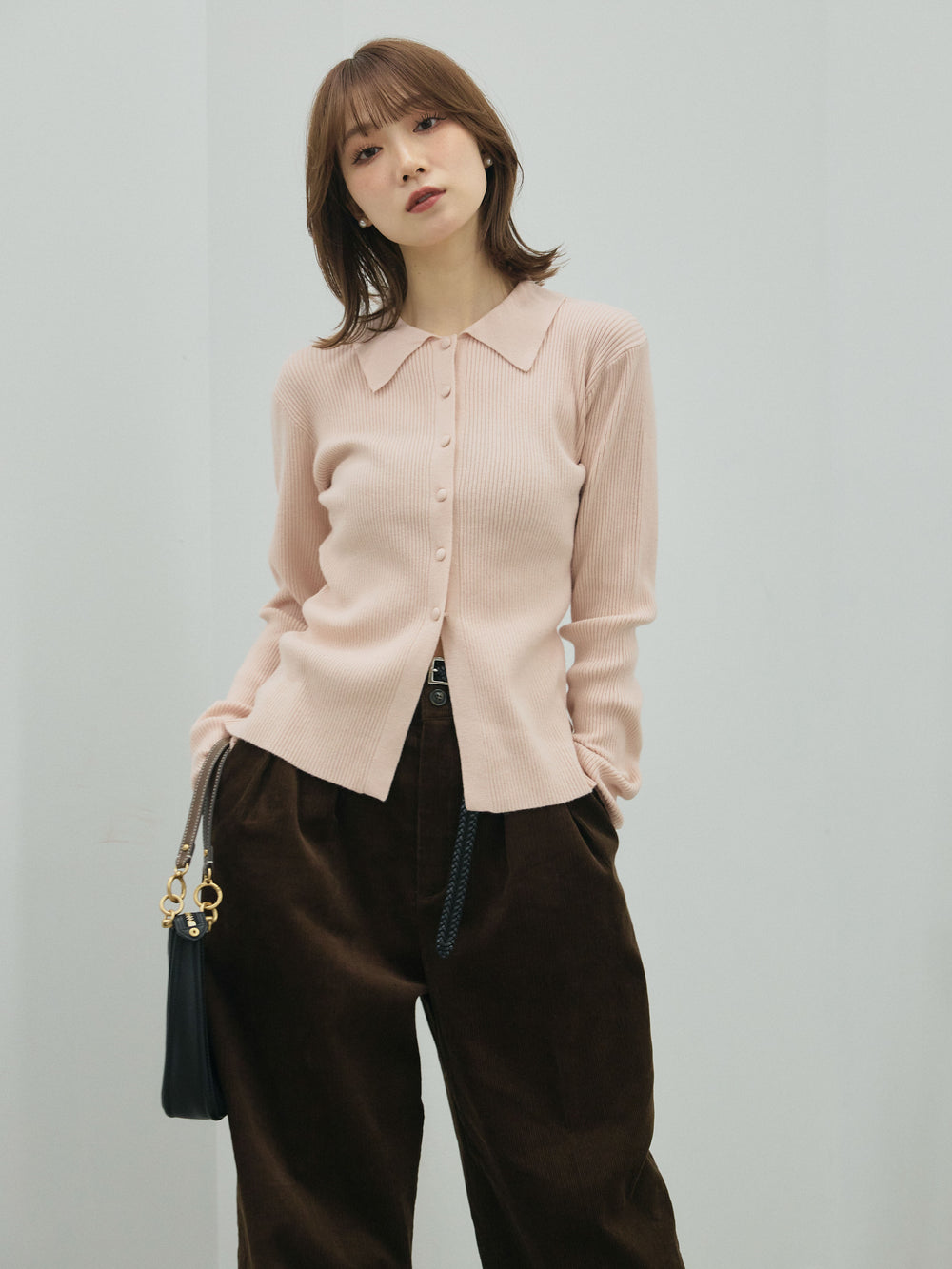 [予約]くるみボタンポロリブニットトップス/charcoal