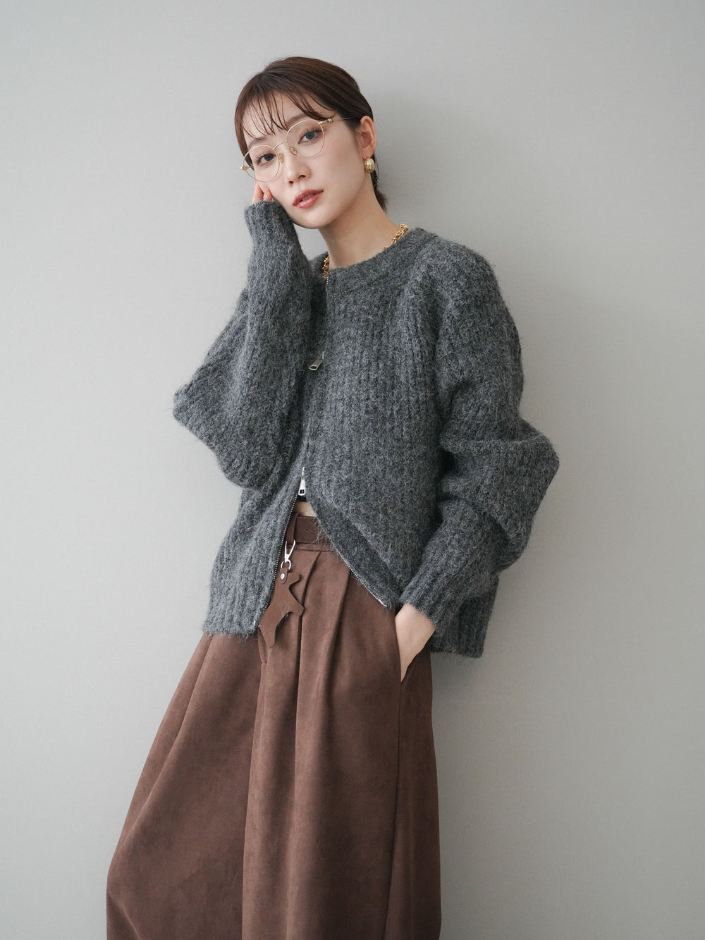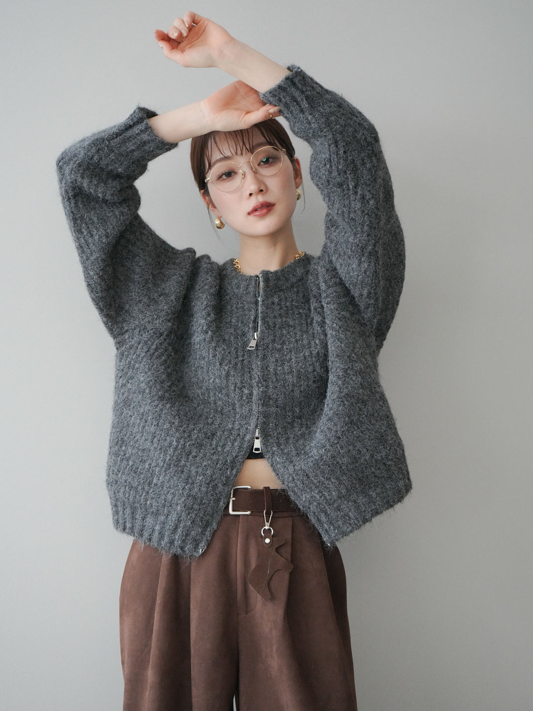 [予約]MIXヤーンモヘアタッチZIPニットカーディガン/gray