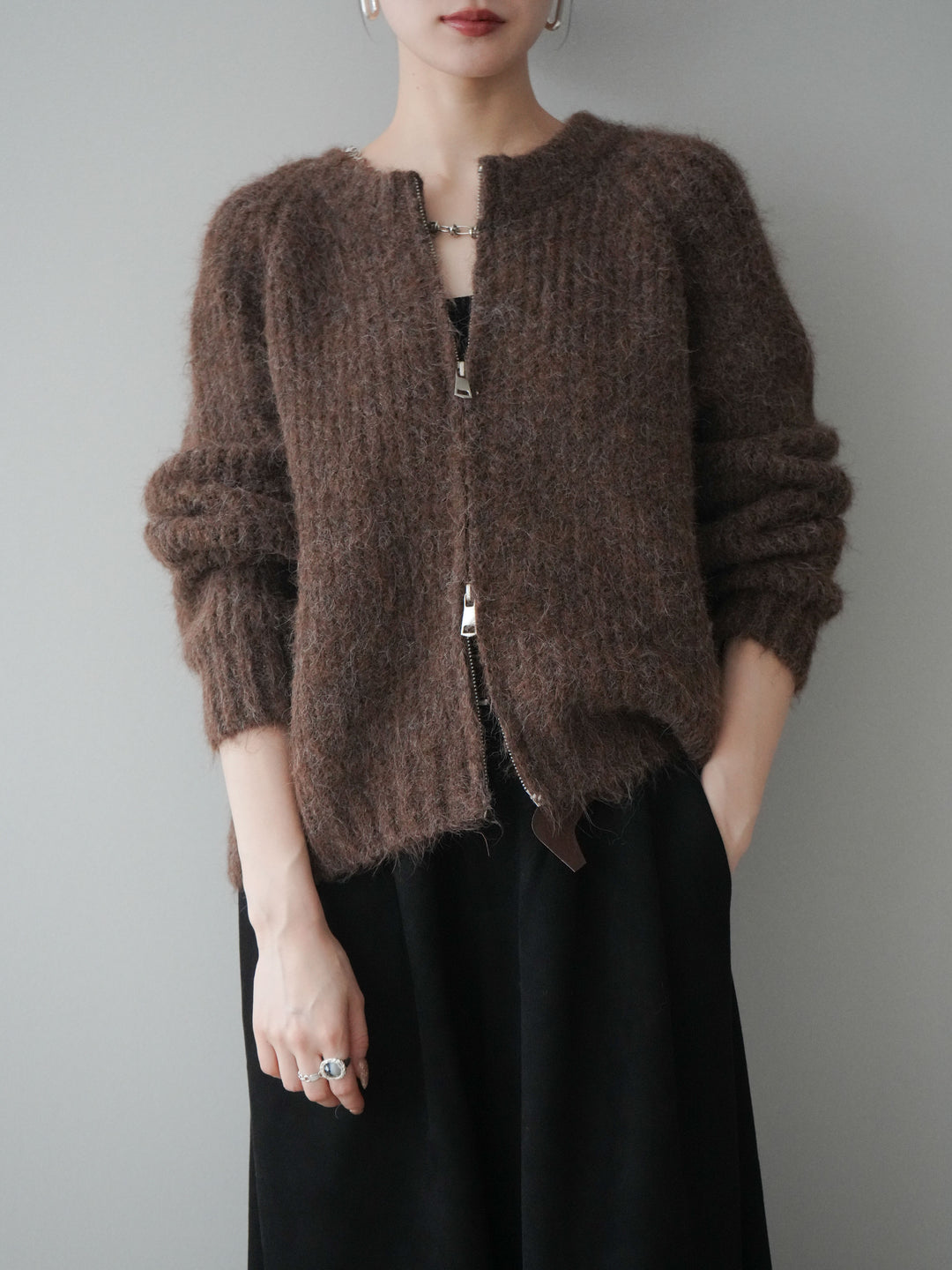 [予約]MIXヤーンモヘアタッチZIPニットカーディガン/brown