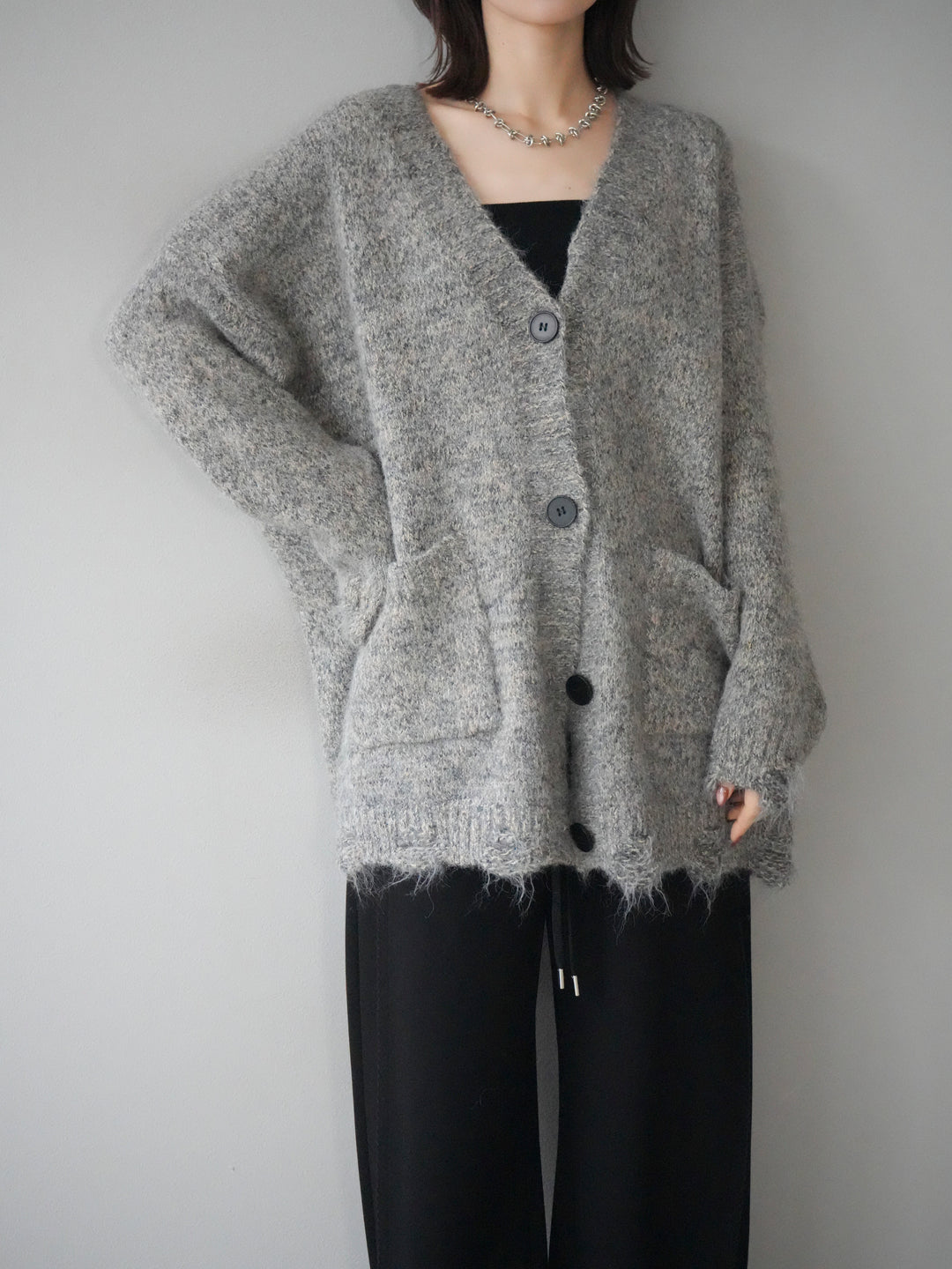 [予約]ミックスヤーンVネックオーバーニットカーディガン/green