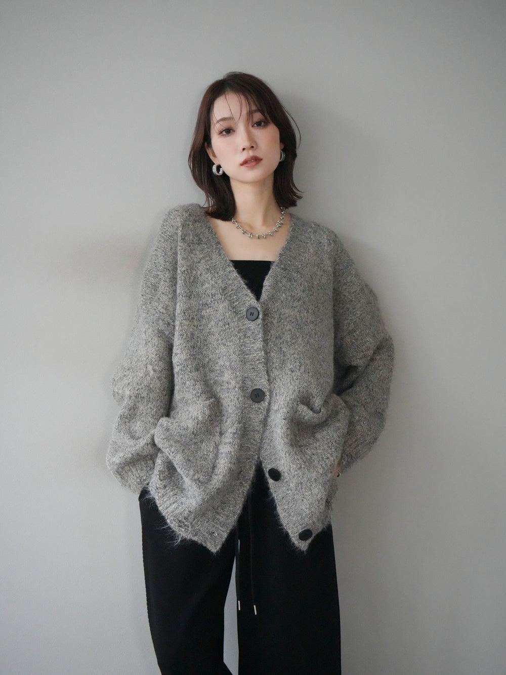 [予約]モヘアタッチアーガイルニットカーディガン/charcoal