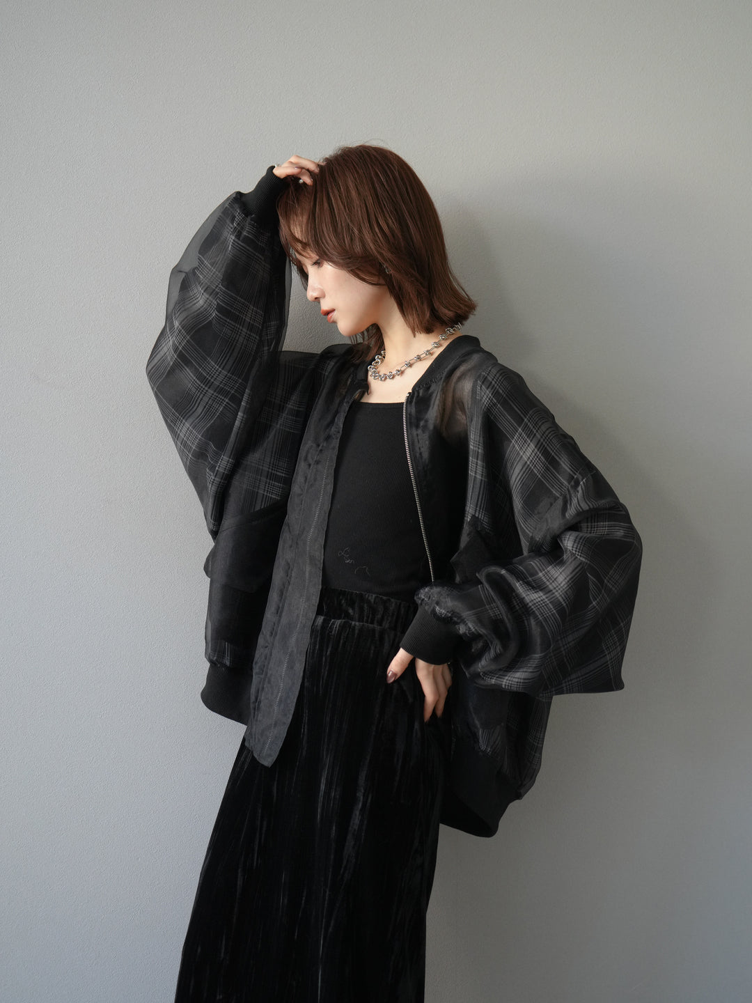 [予約]チェックチュールドッキングブルゾン/ブラック