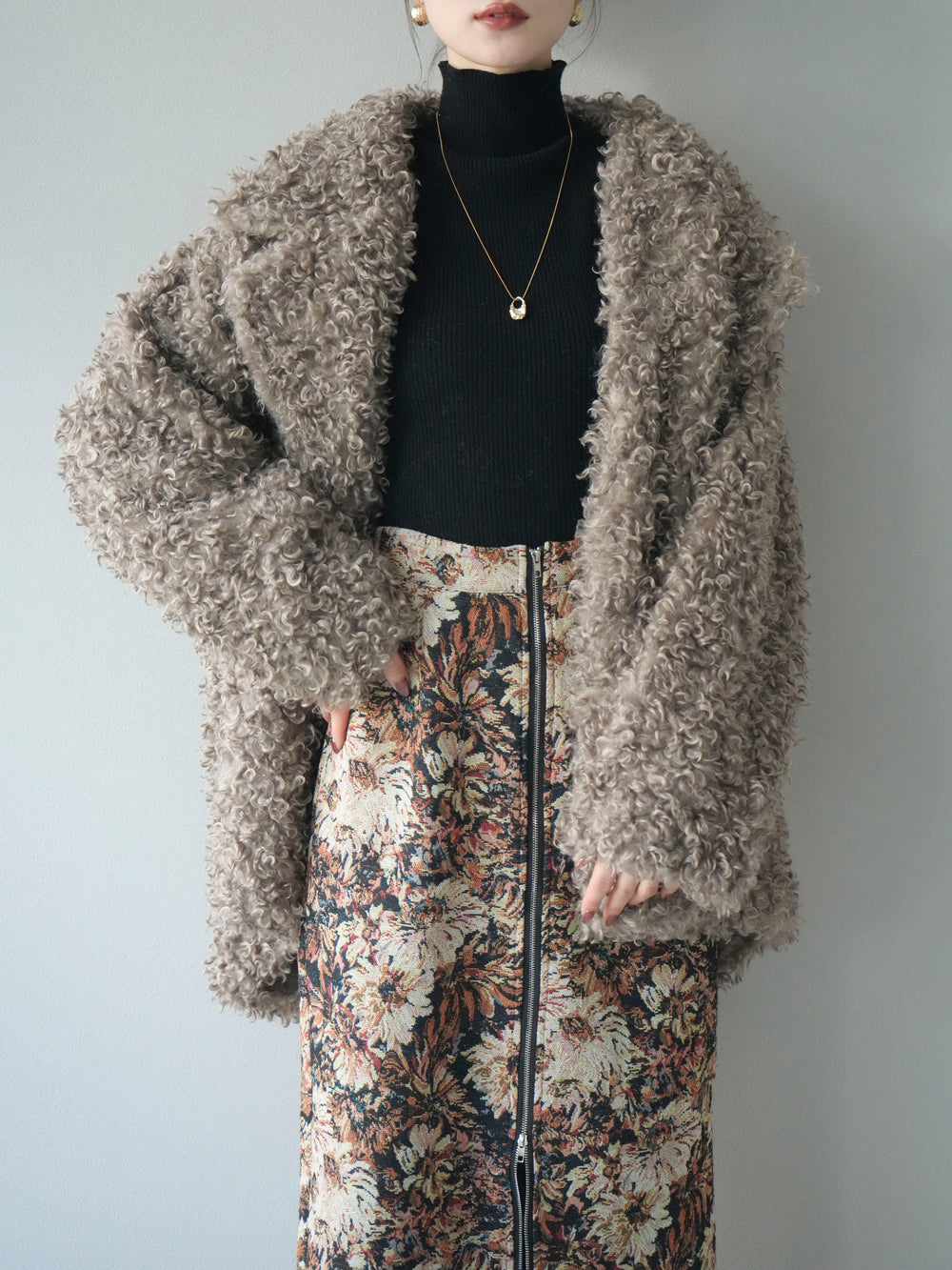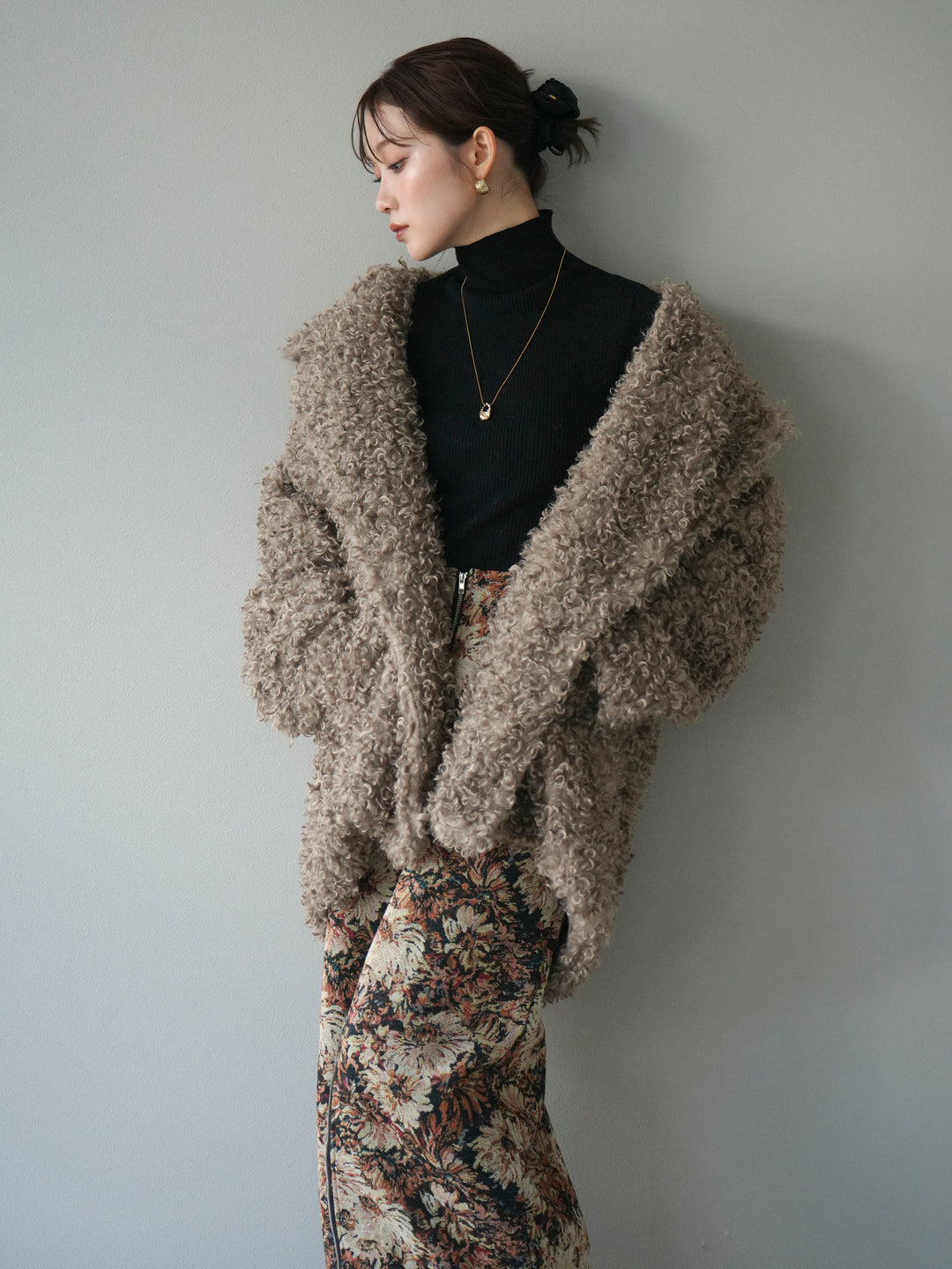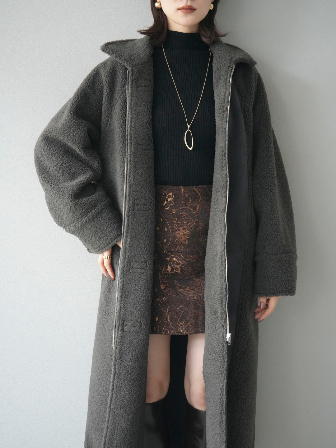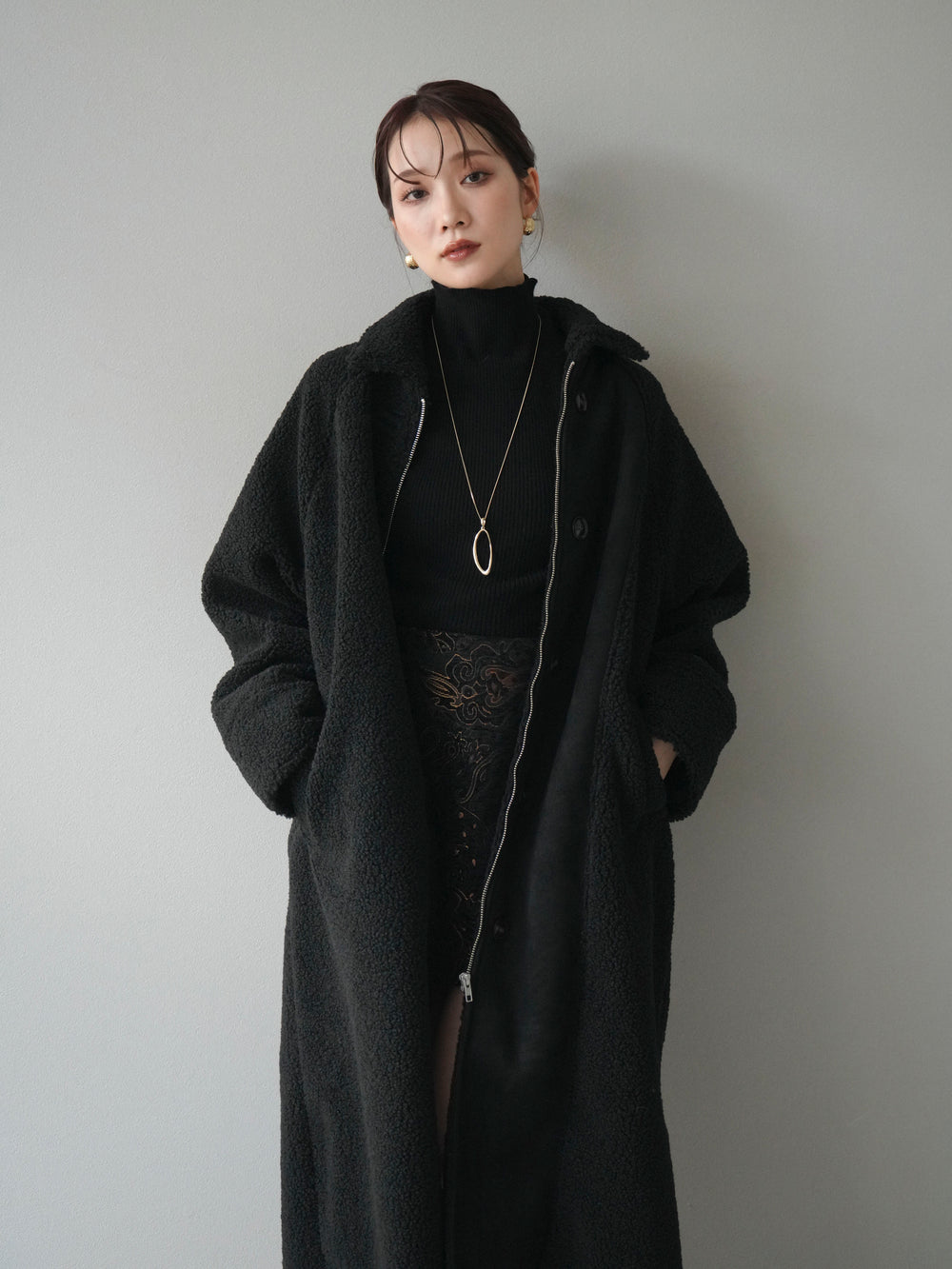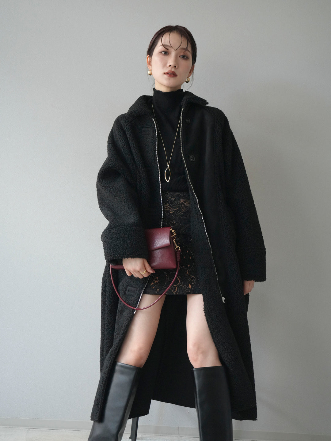 [予約]スタンドネックフェイクムートンミディアムコート/charcoal