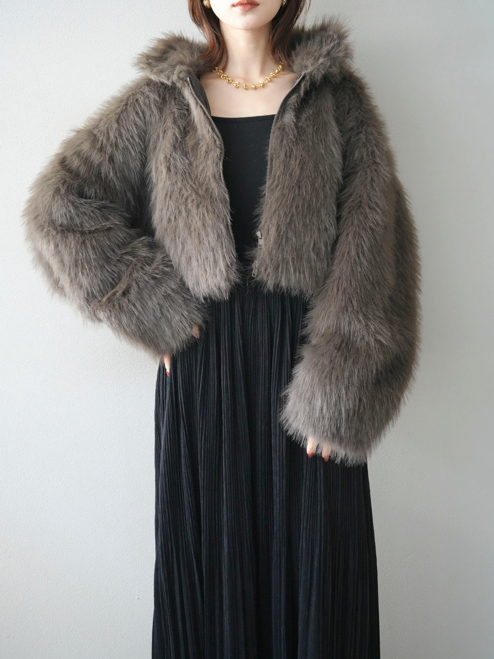 [予約]シャギーファースタンド2WAYジャケット/ gray