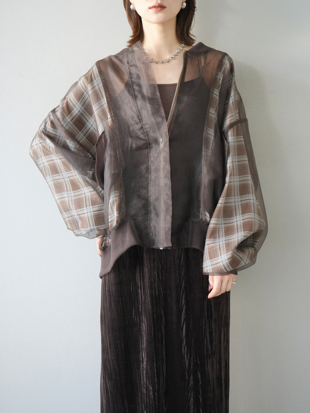 [予約]チェックチュールドッキングブルゾン/ブラウン