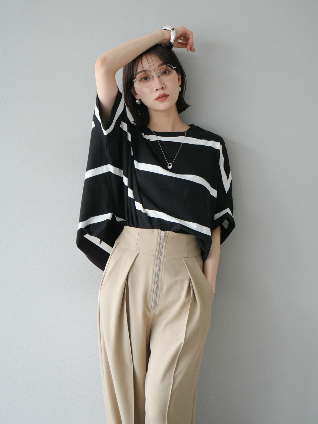[予約]モックネックコットンルーズTシャツ/チャコール