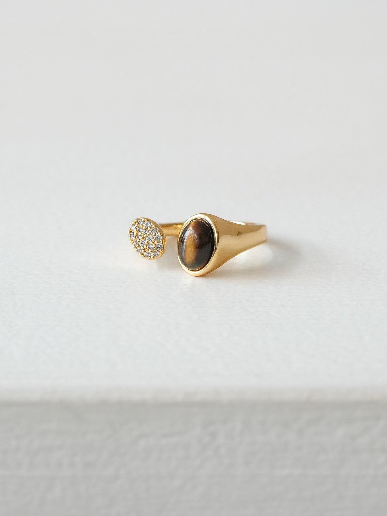 天然石の存在感と繊細なビジューの輝きが美しく調和したフォークリング。指先に沿うオープンデザインが抜け感を生み、手元を上品かつ印象的に見せてくれます。丸みのあるストーンが柔らかな表情を添え、シンプルながらも特別感のある仕上がりに。重ね付けはもちろん、ひとつで主役級のアクセントになるため、デイリーからドレスアップまで幅広いスタイリングで活躍するアイテムです。