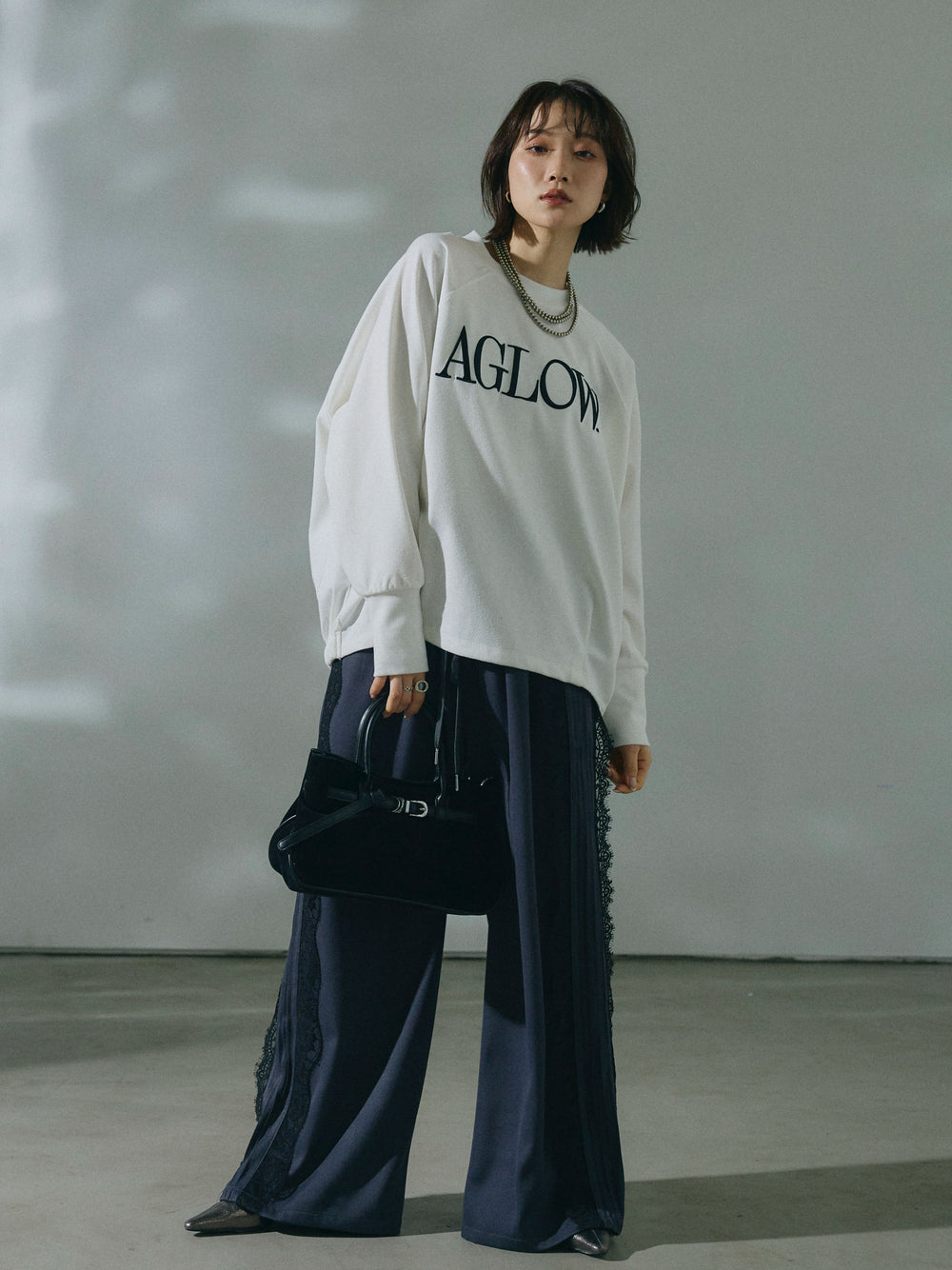 【Allure】[SET]ブークレダンボールロゴ刺繍プルオーバー+サイドピンタックレースイージーワイドパンツ(2set)