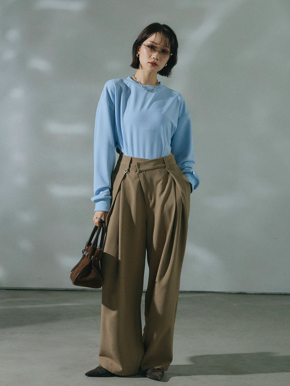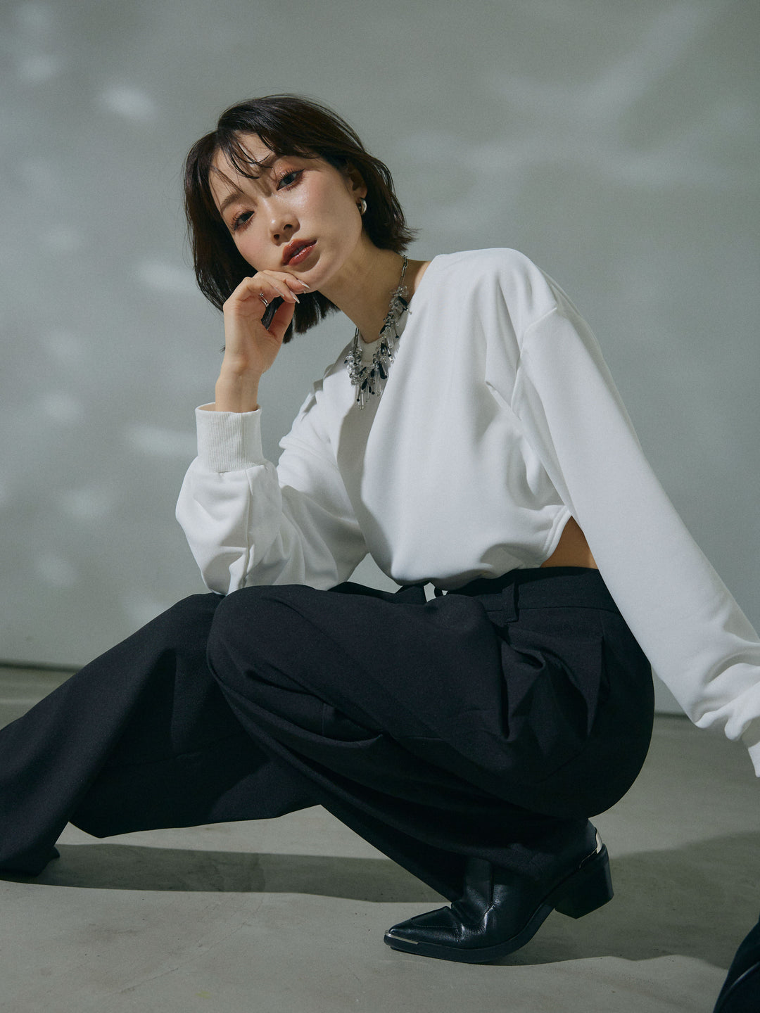 【Allure】[SET]スウェットボディスーツ+アシンメトリーウエストタックパンツ(2set)