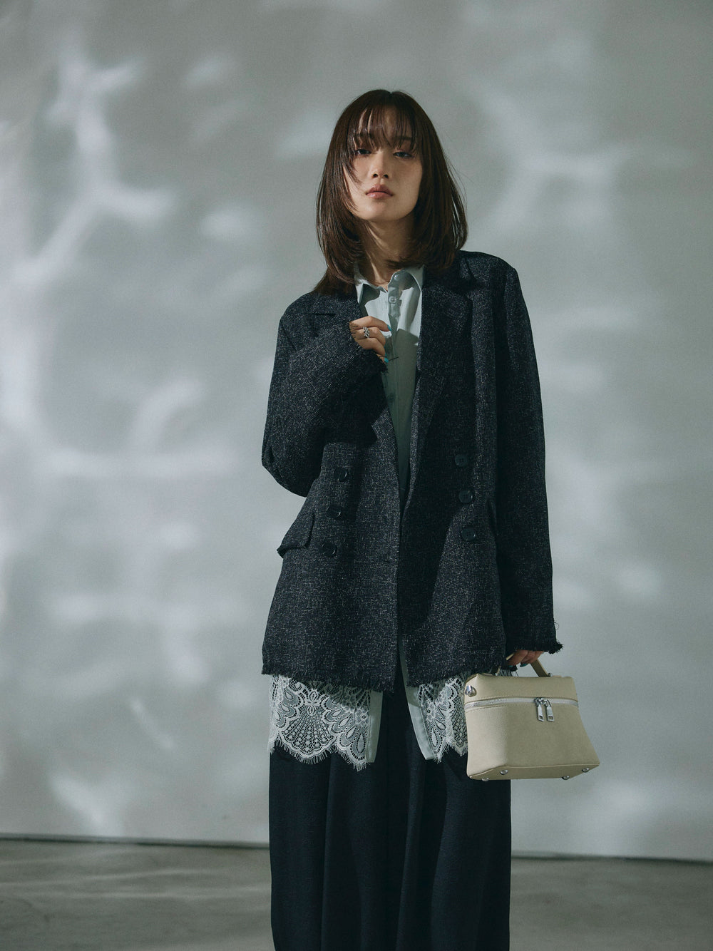 【Allure】[SET]スラブツイードフリンジテーラージャケット+裾レースポプリンシャツ(2set)