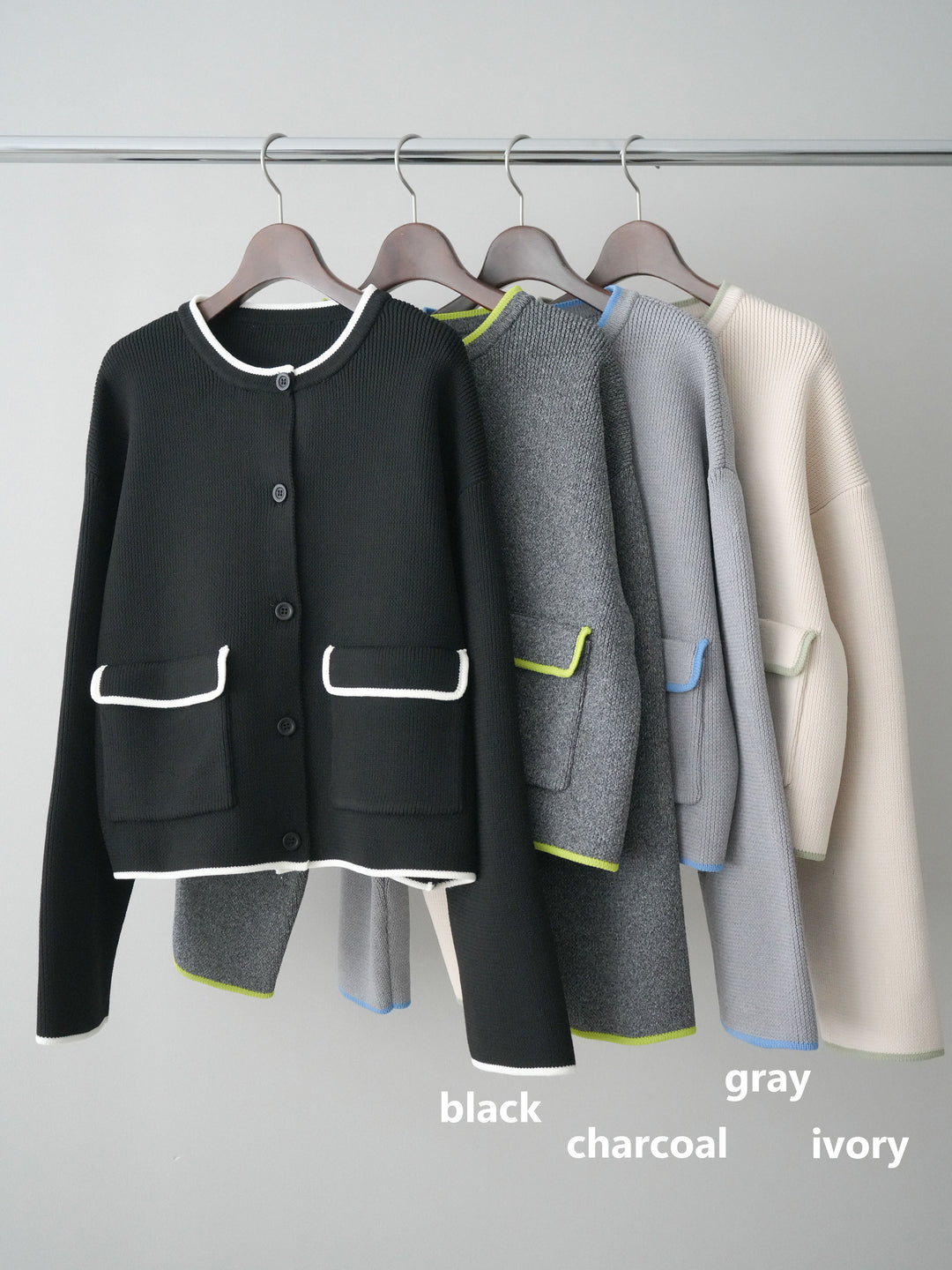 [SET]ポリエステル配色ニットカーディガン+ポリエステル配色ニットカーディガン(2set)