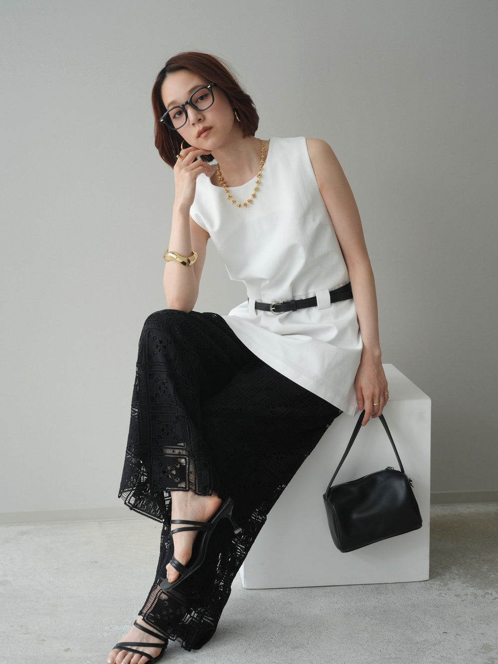[SET]ラッフルベルトワイドパンツ+ラッフルベルトワイドパンツ(2set)