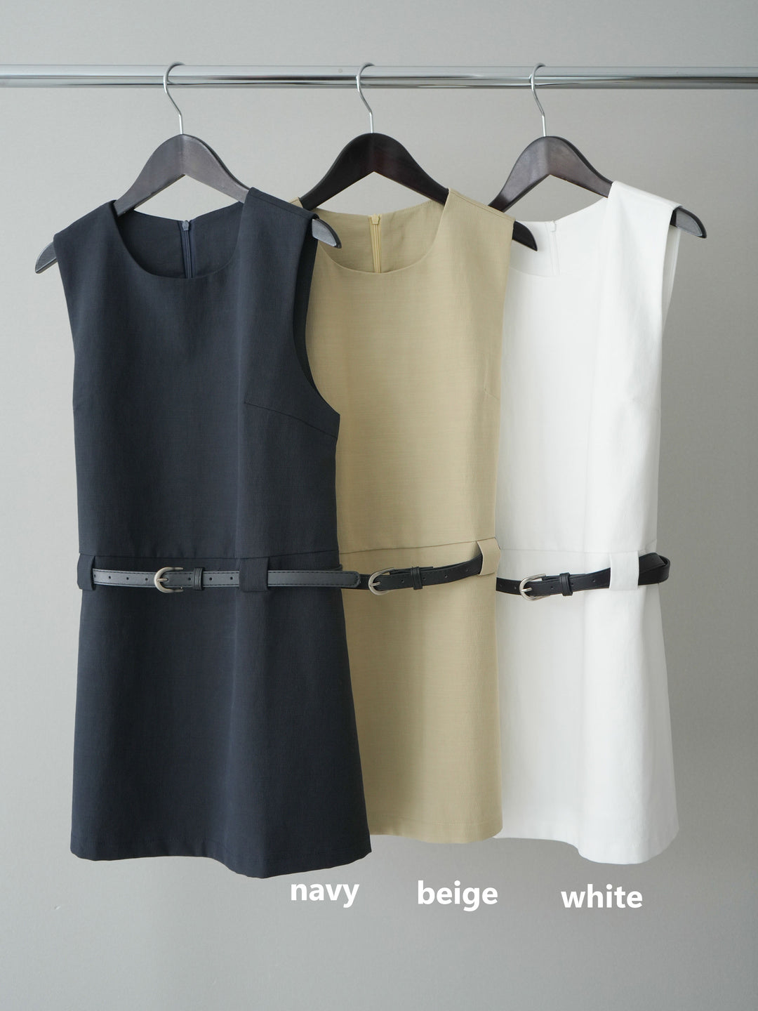 [SET]ベルト付リネンライクノースリチュニック+ベルト付リネンライクノースリチュニック(2set)