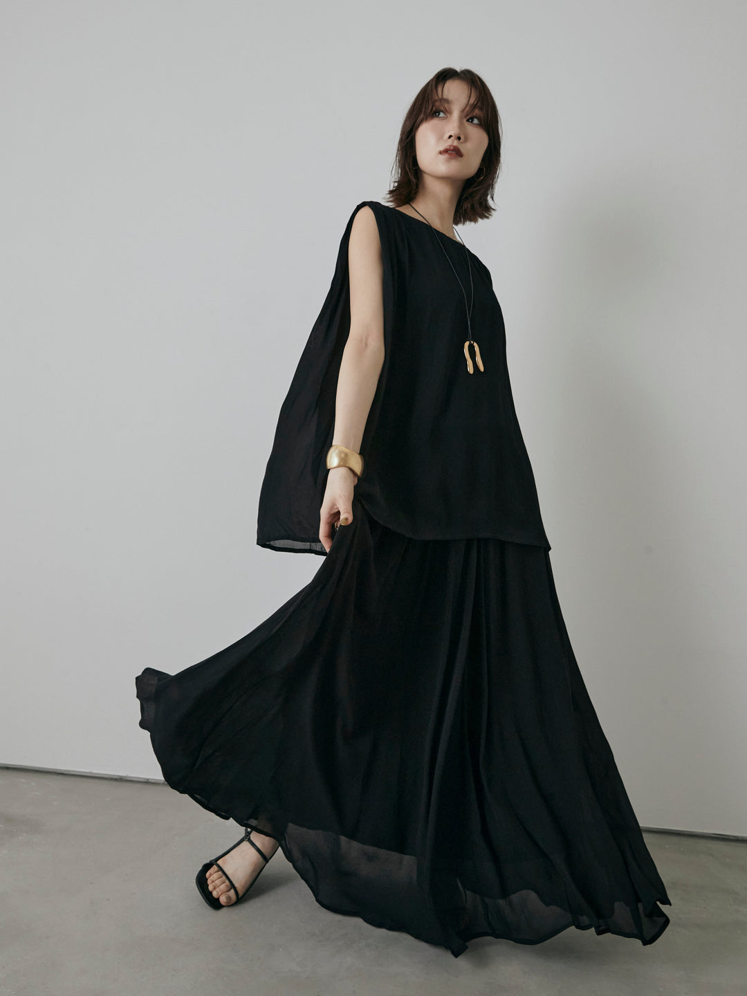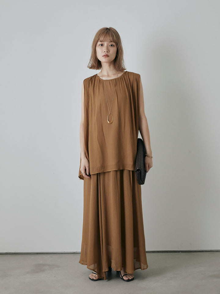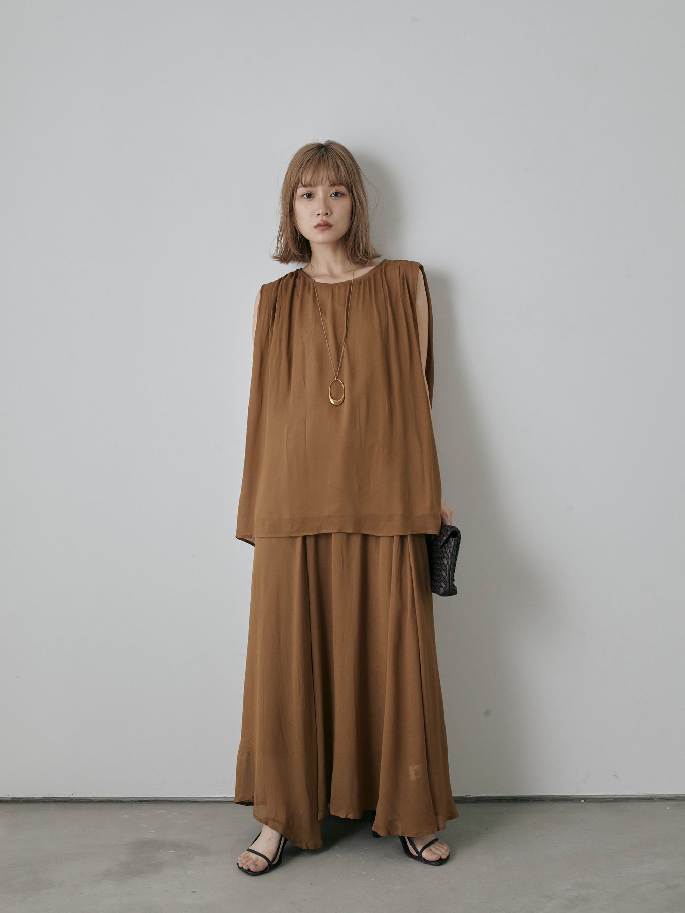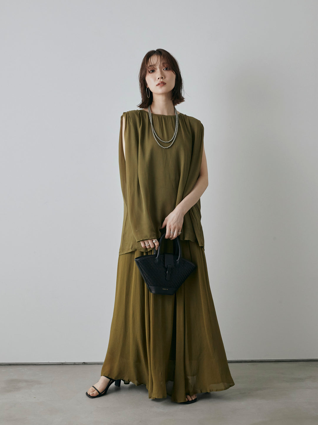 [SET]シアータックショルダーブラウス+シアーフレアマキシスカート(2set)