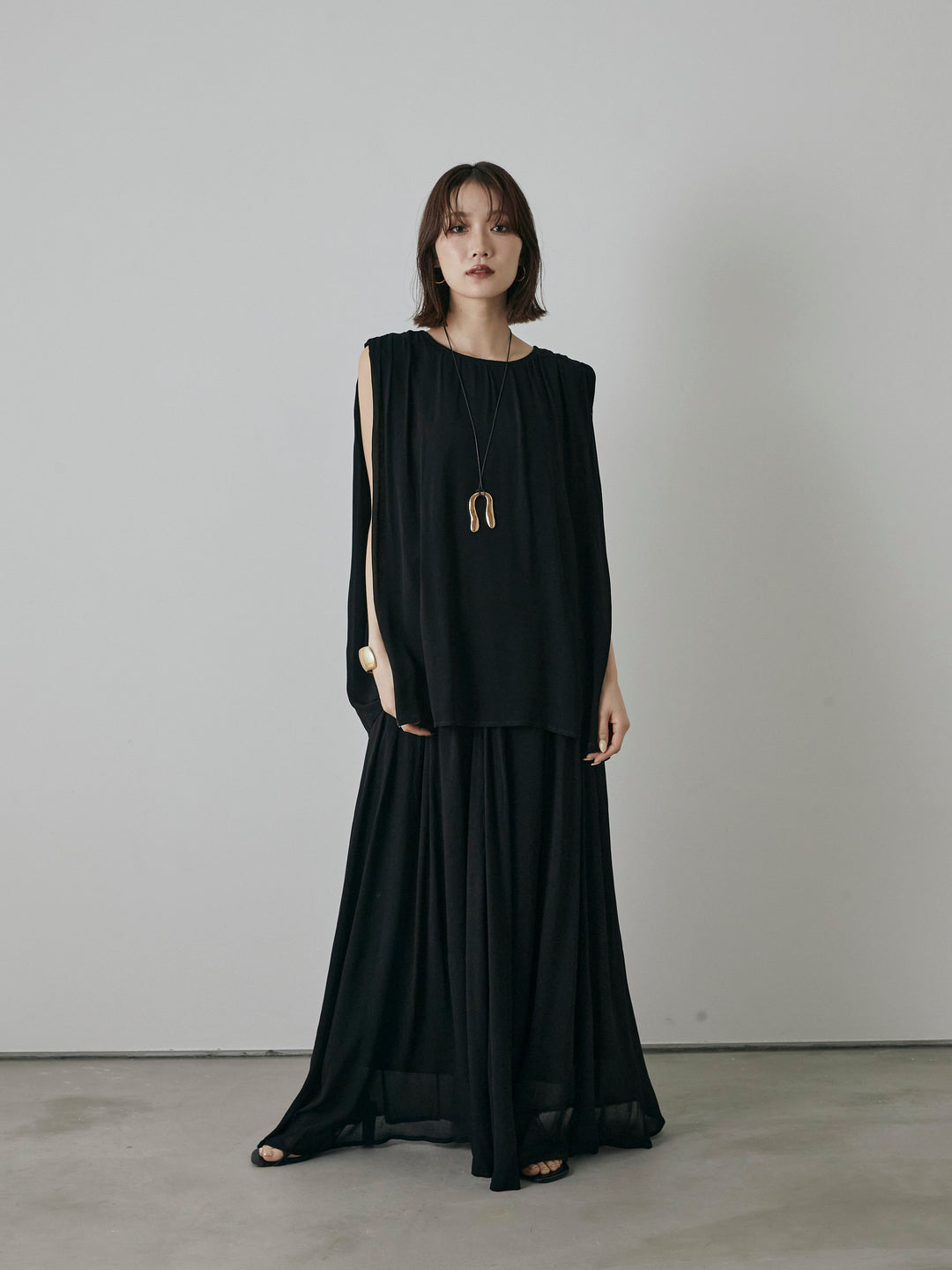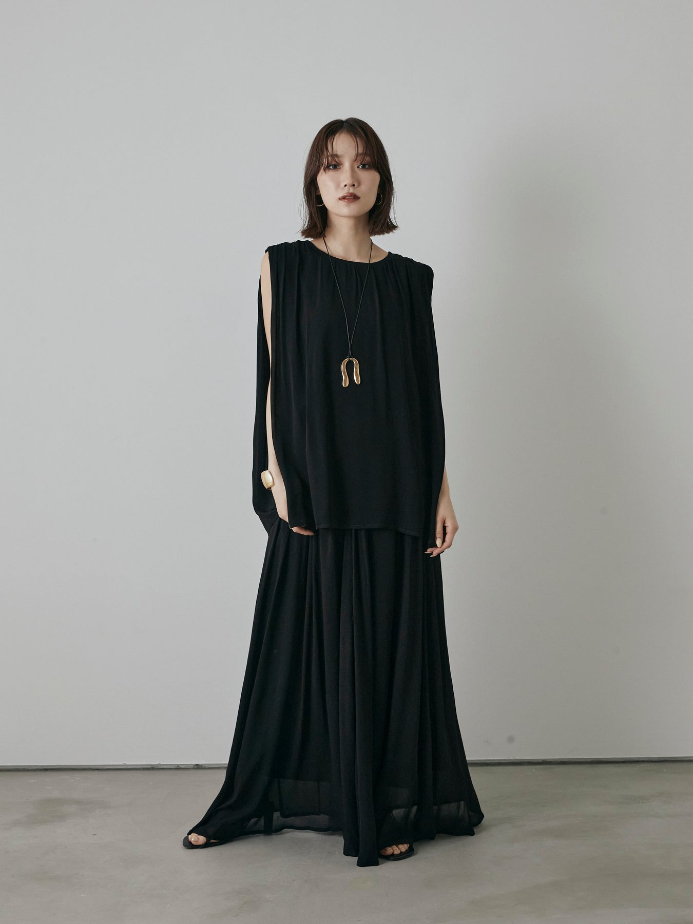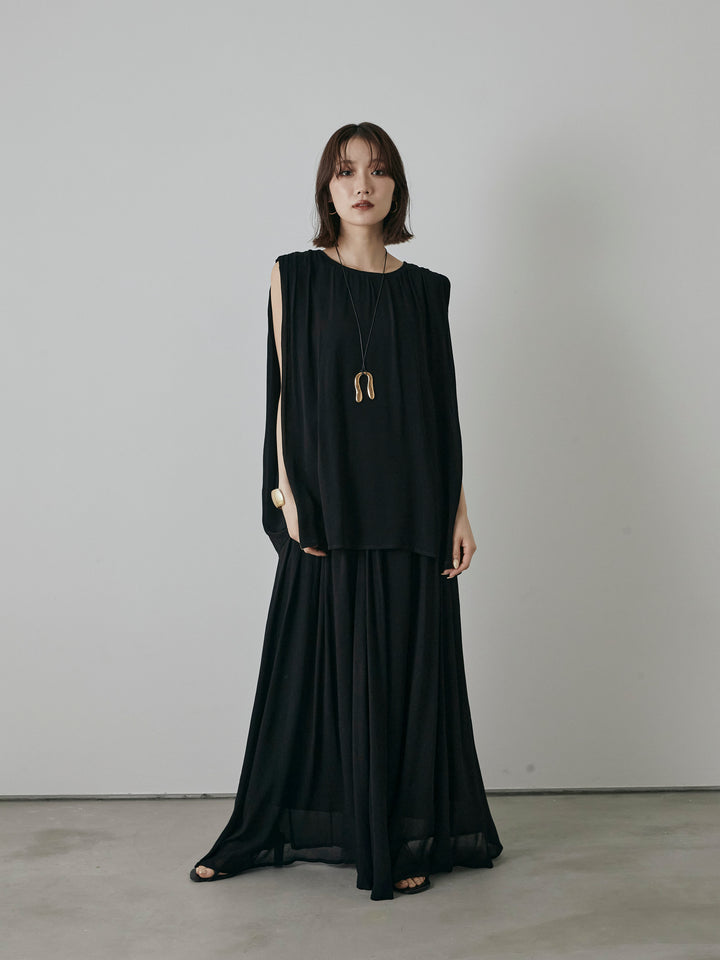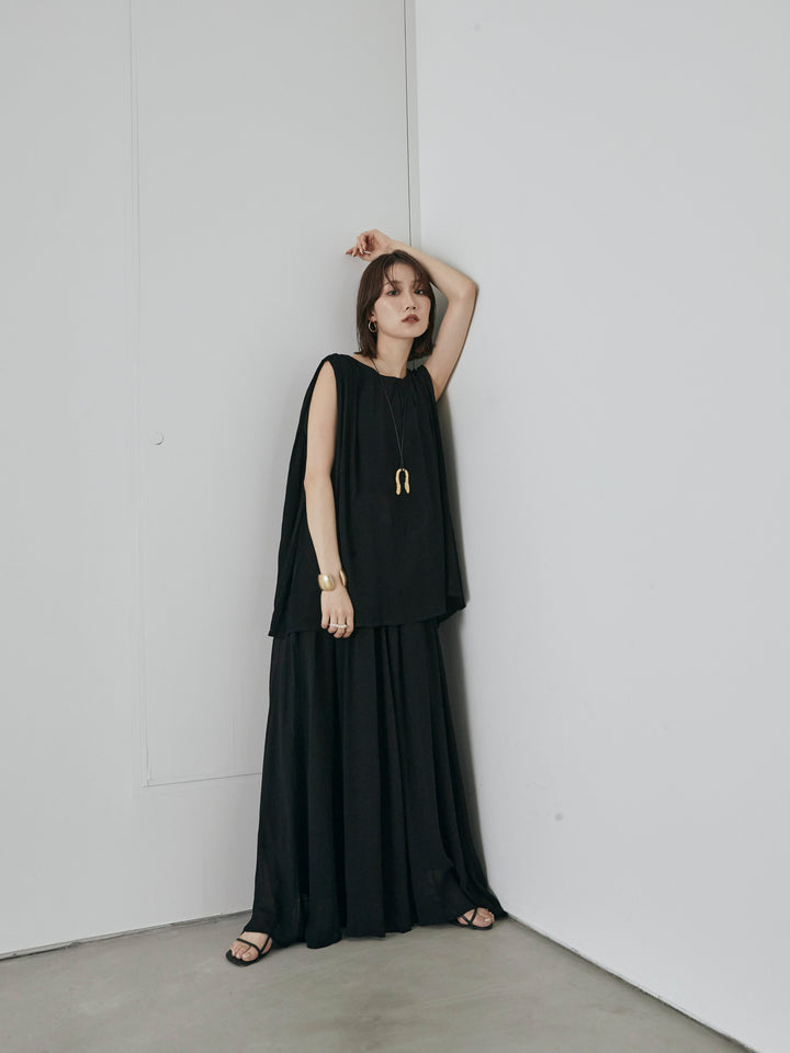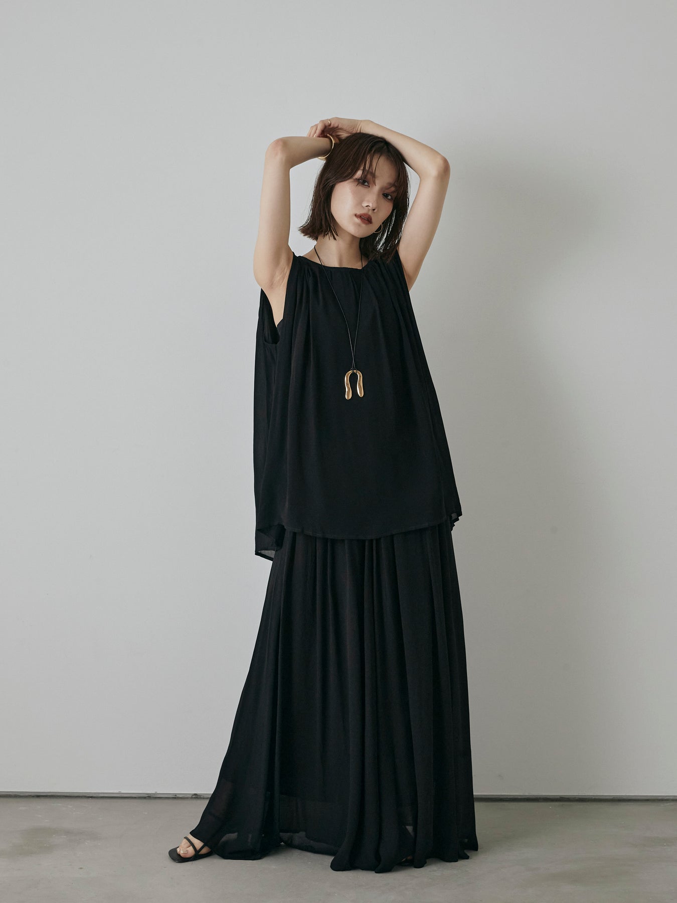 [SET]シアータックショルダーブラウス+シアーフレアマキシスカート(2set)