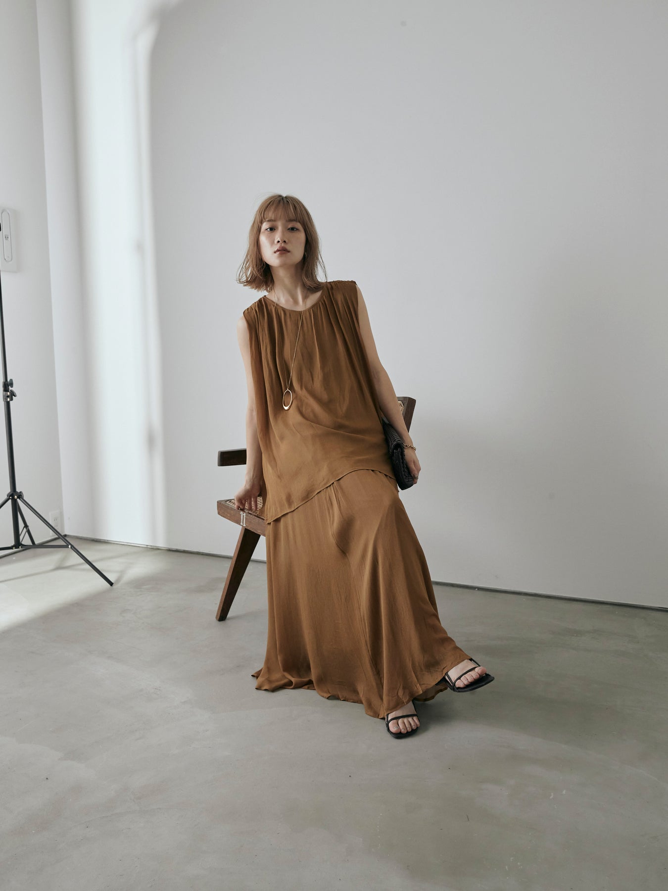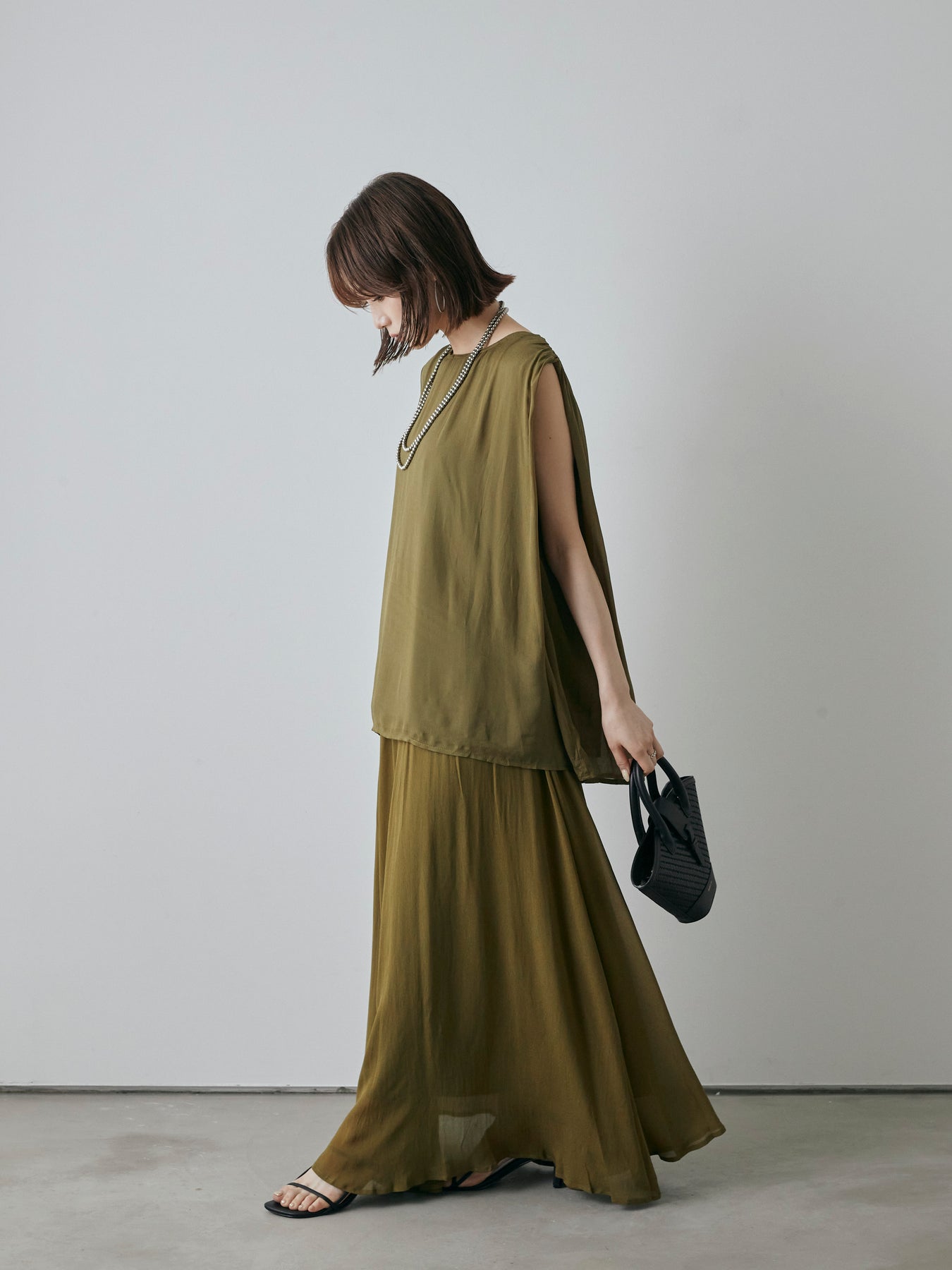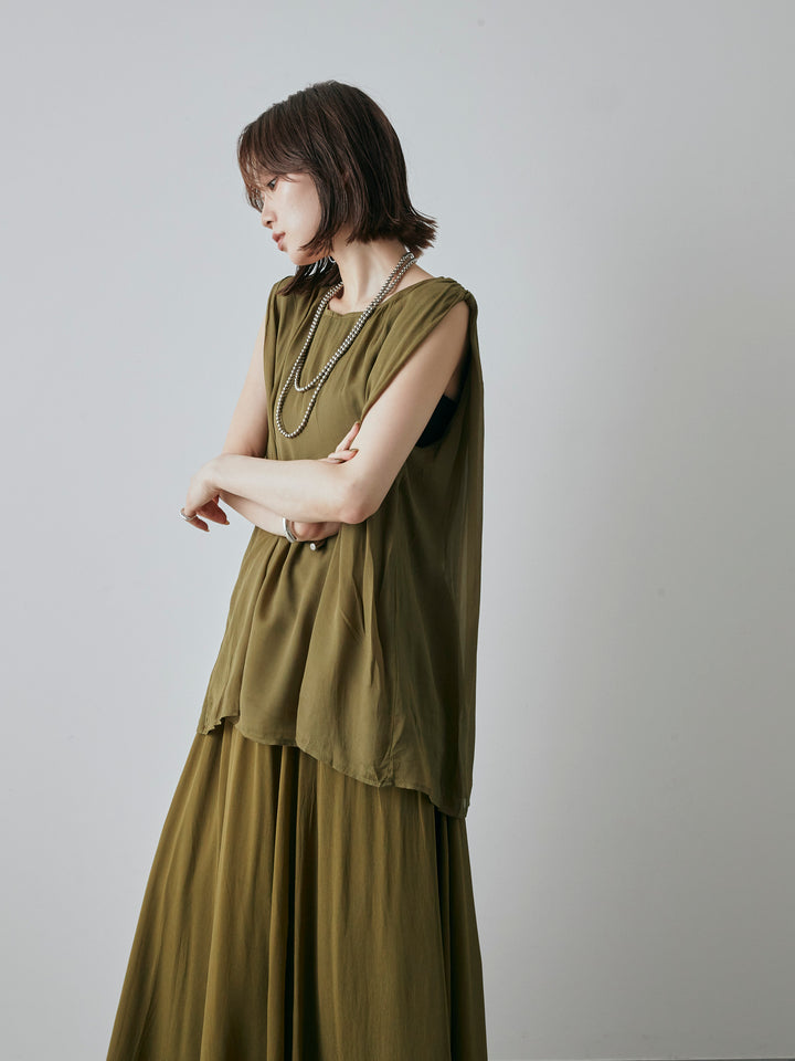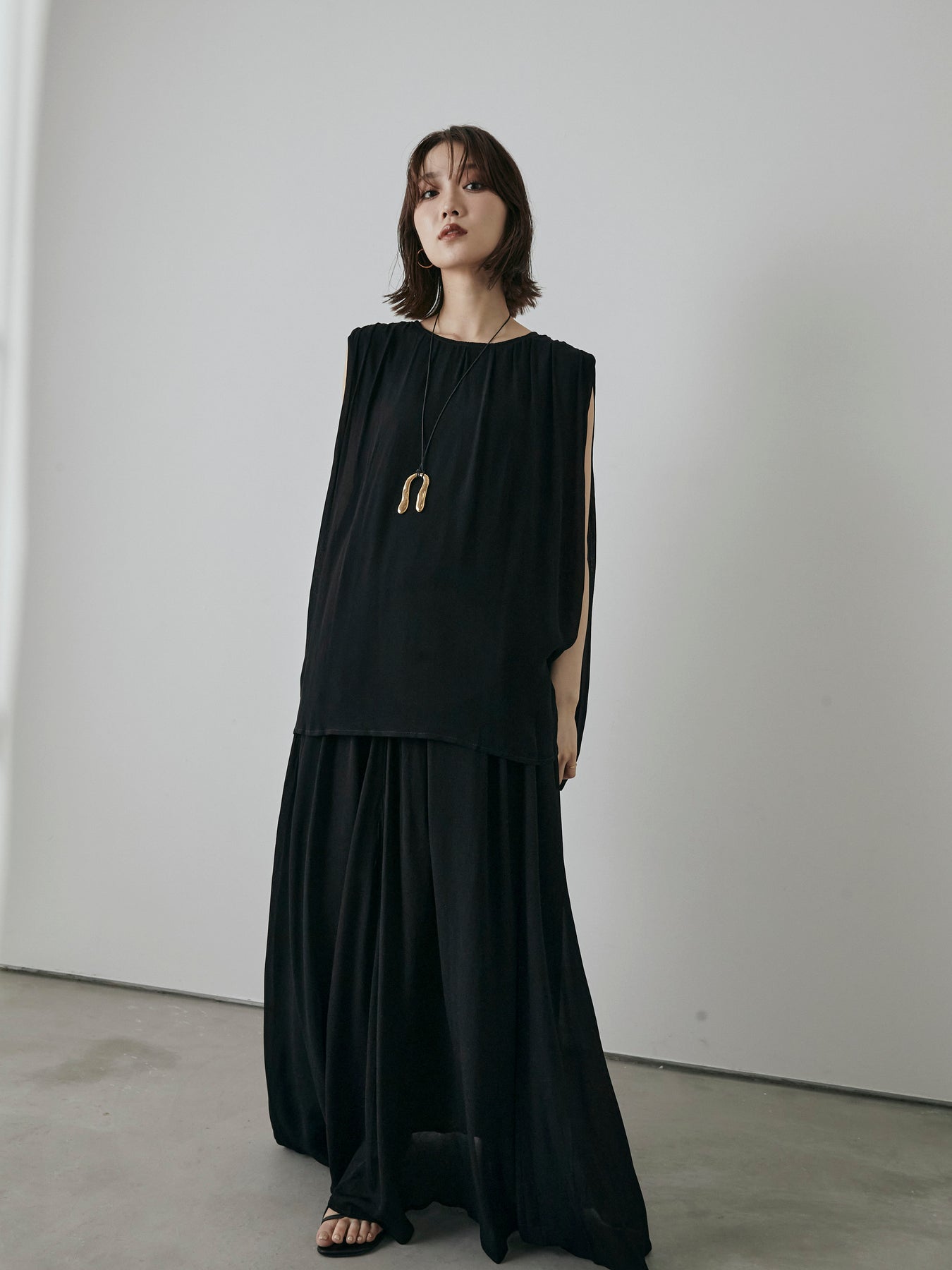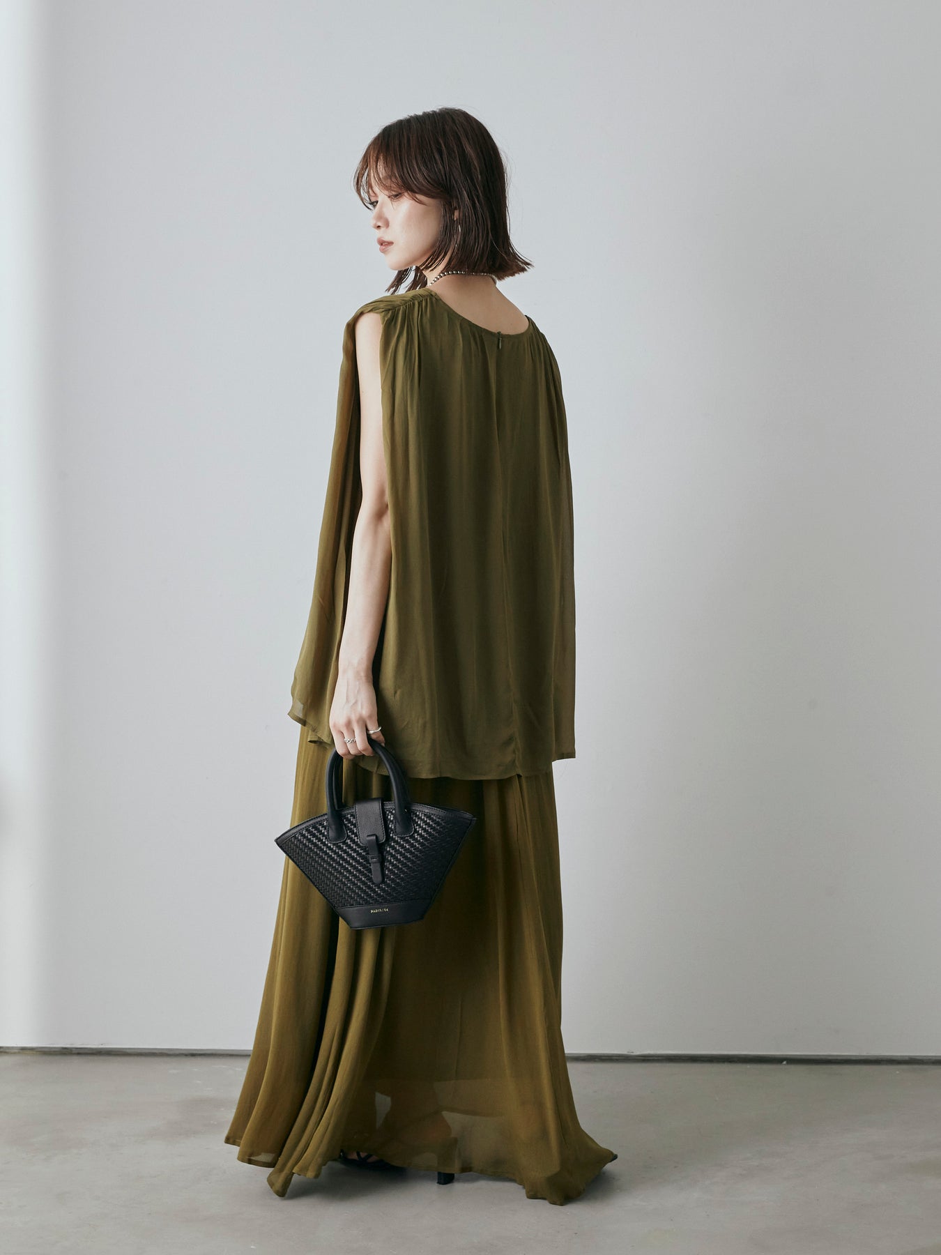[SET]シアータックショルダーブラウス+シアーフレアマキシスカート(2set)