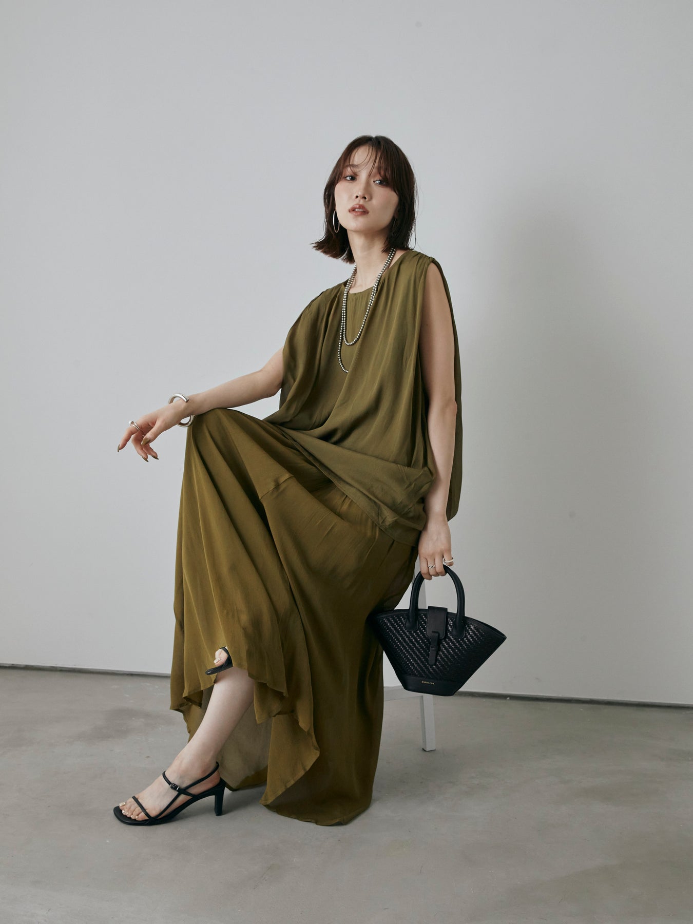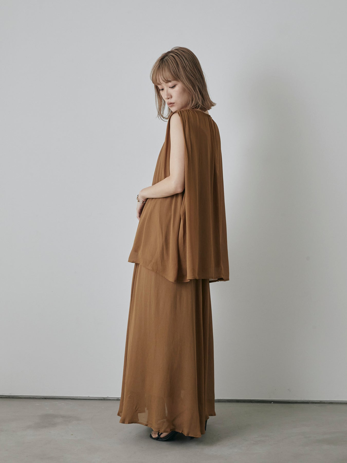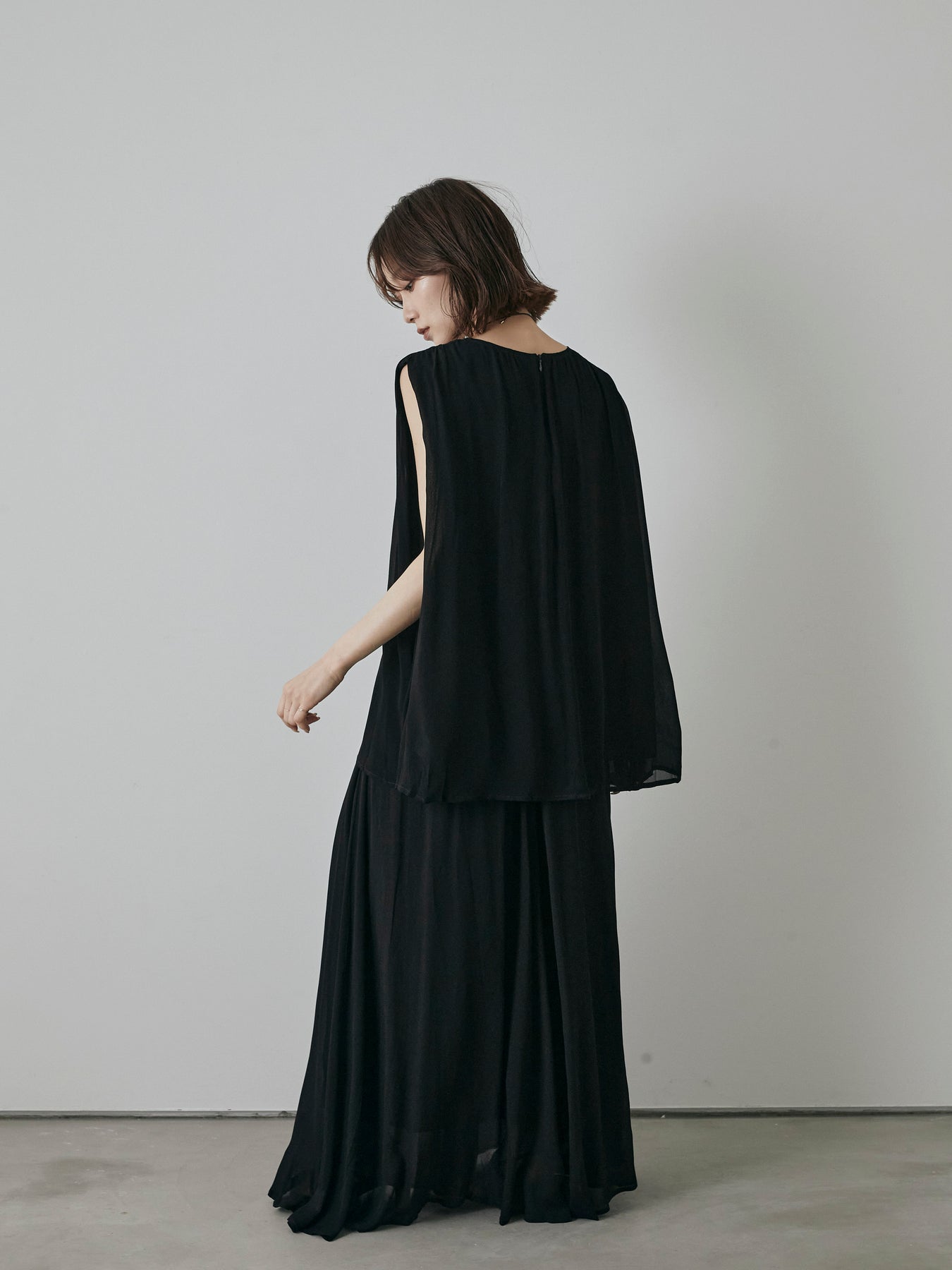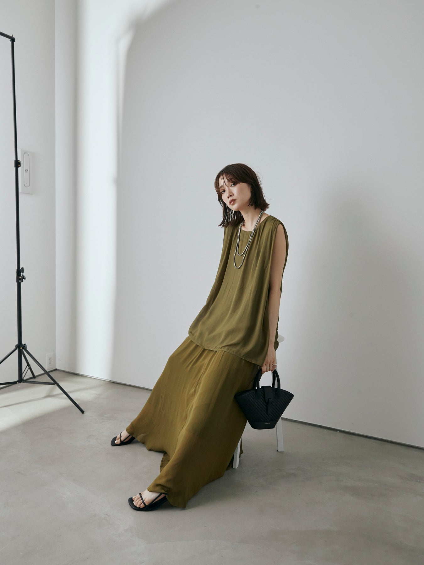 [SET]シアータックショルダーブラウス+シアーフレアマキシスカート(2set)