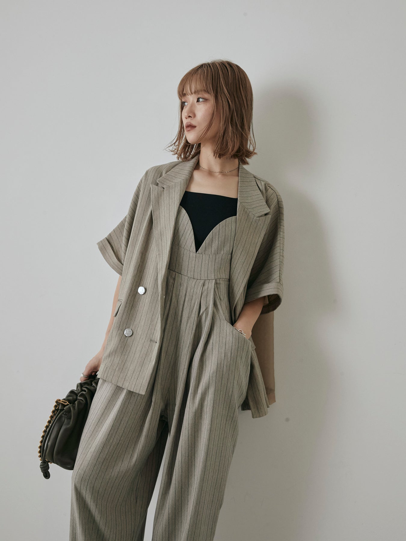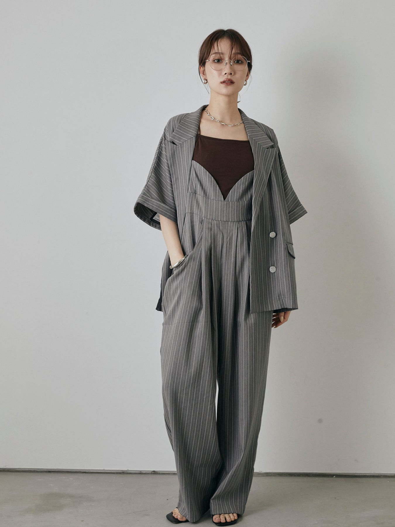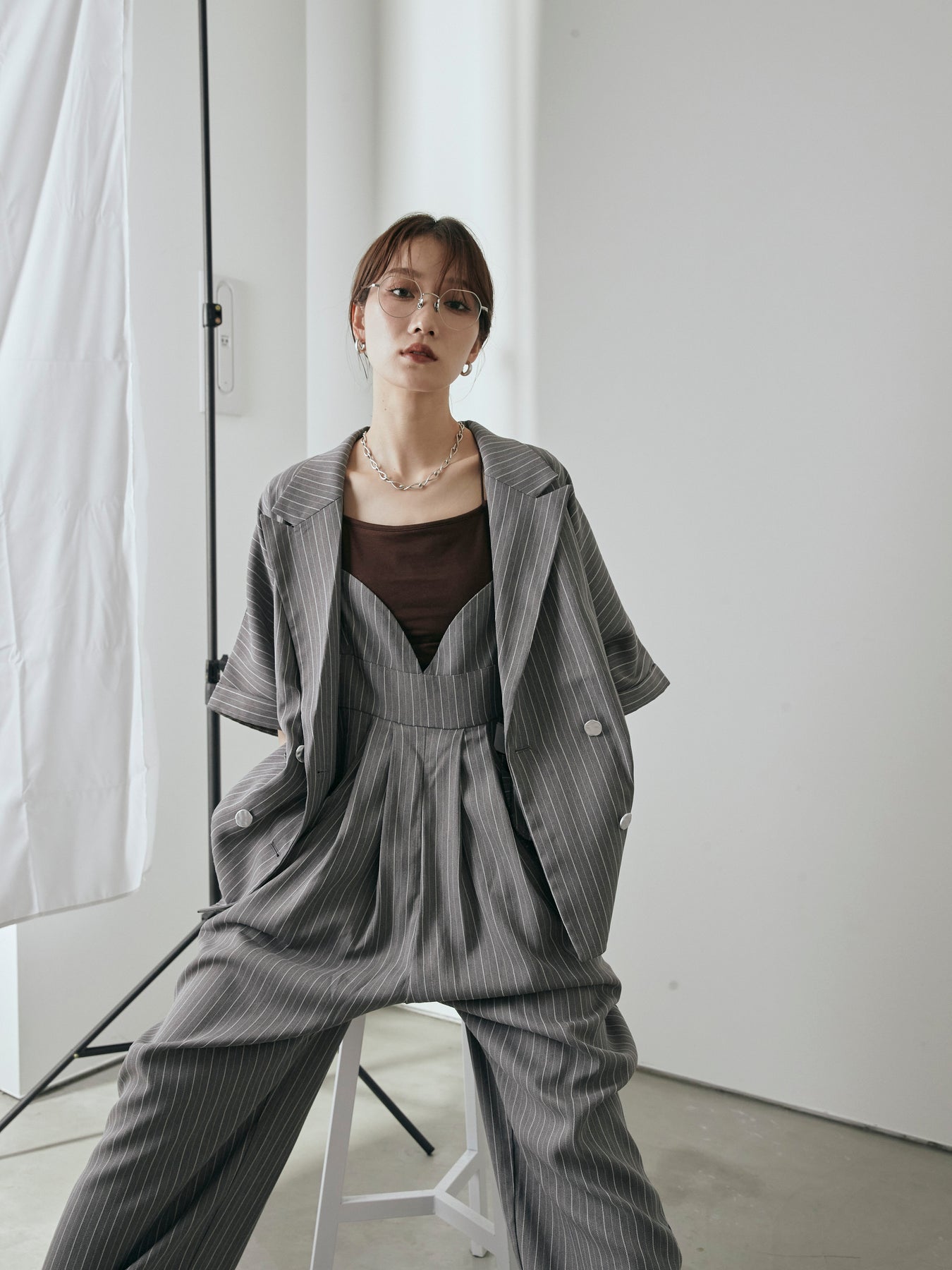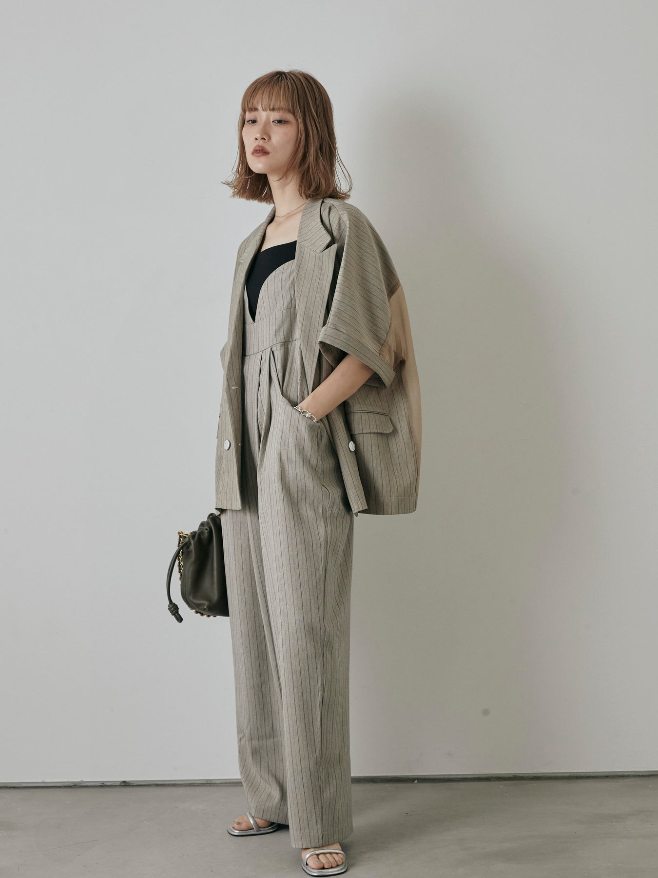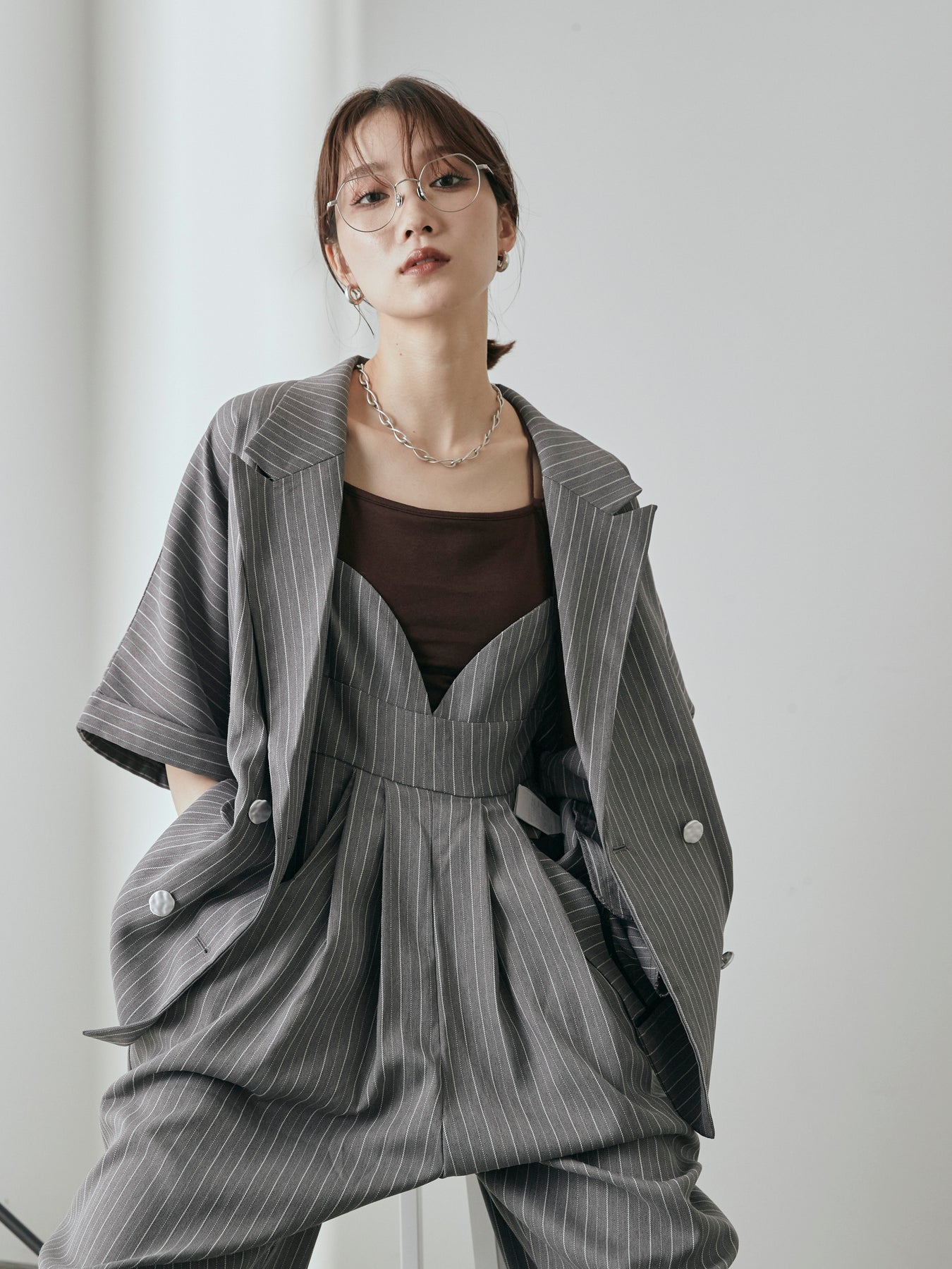 [SET]バックオーガンジーヘリンボーンストライプハーフジャケット+ヘリンボーンストライプサロペット(2set)