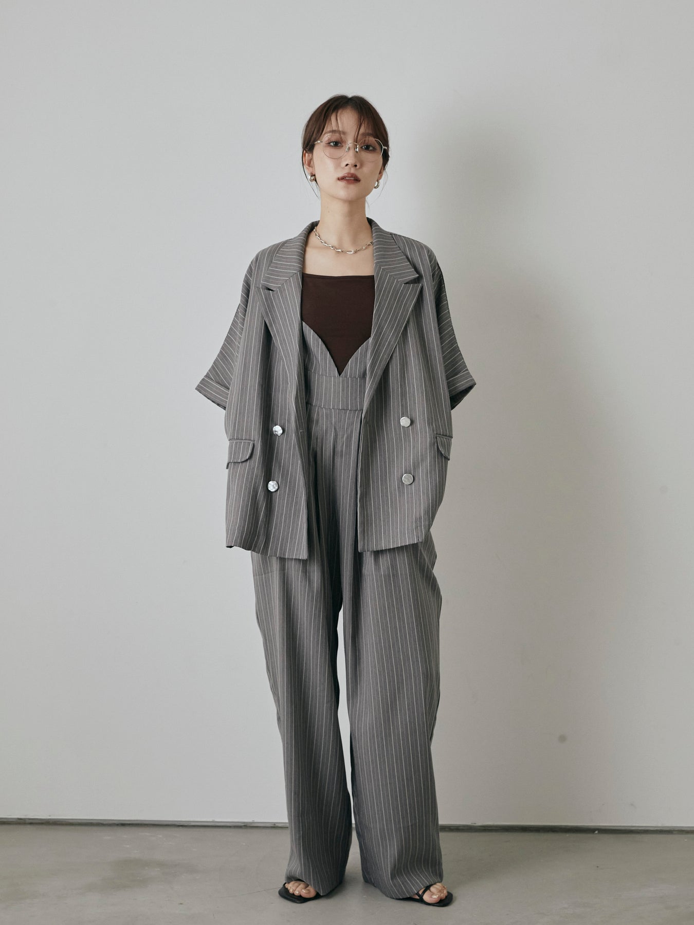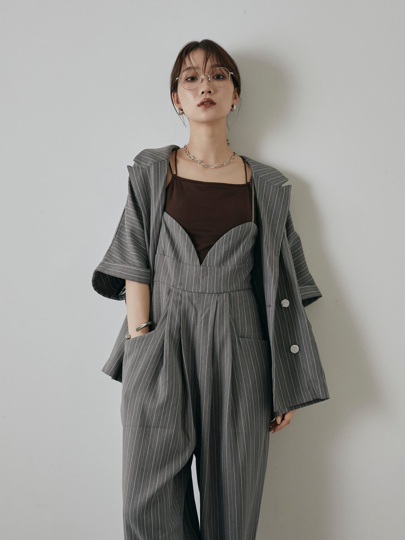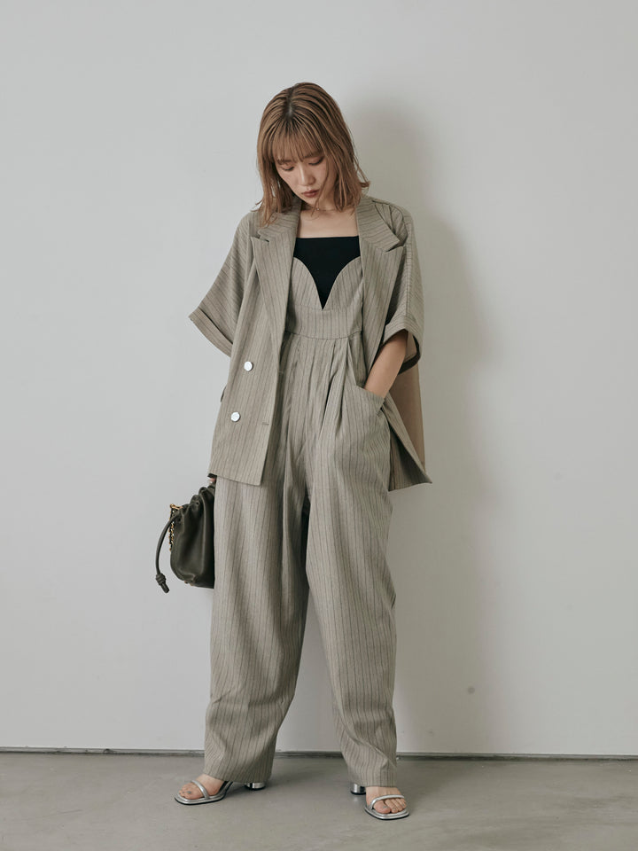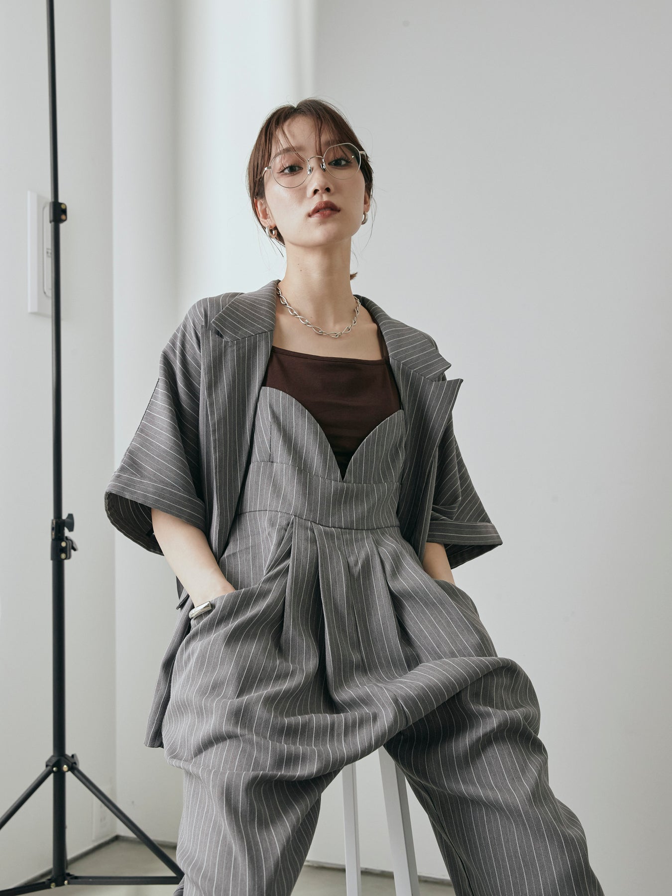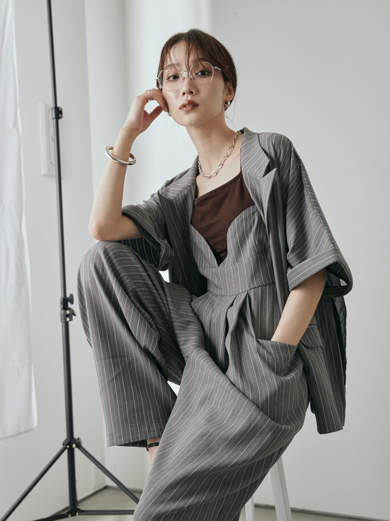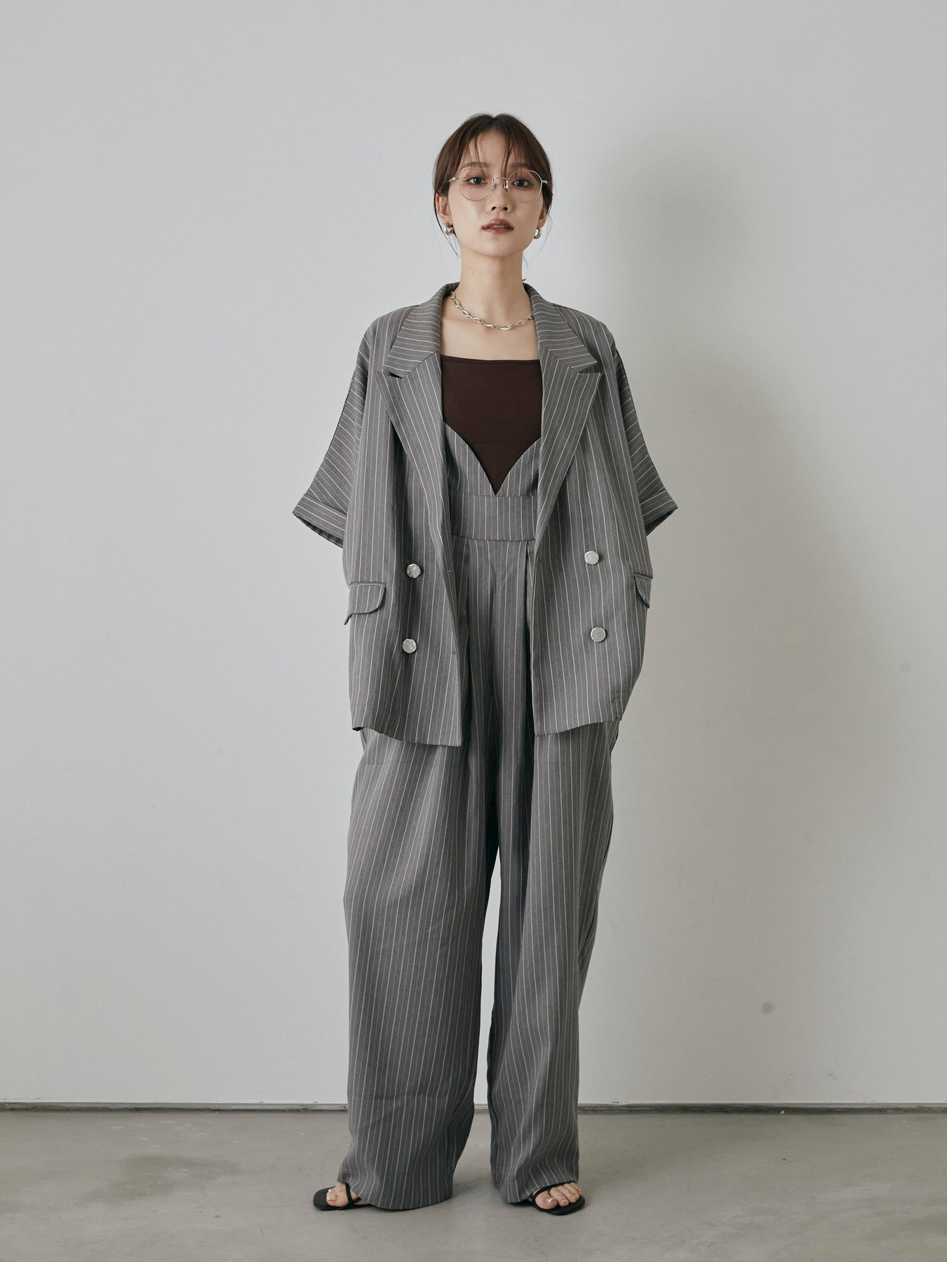 [SET]バックオーガンジーヘリンボーンストライプハーフジャケット+ヘリンボーンストライプサロペット(2set)