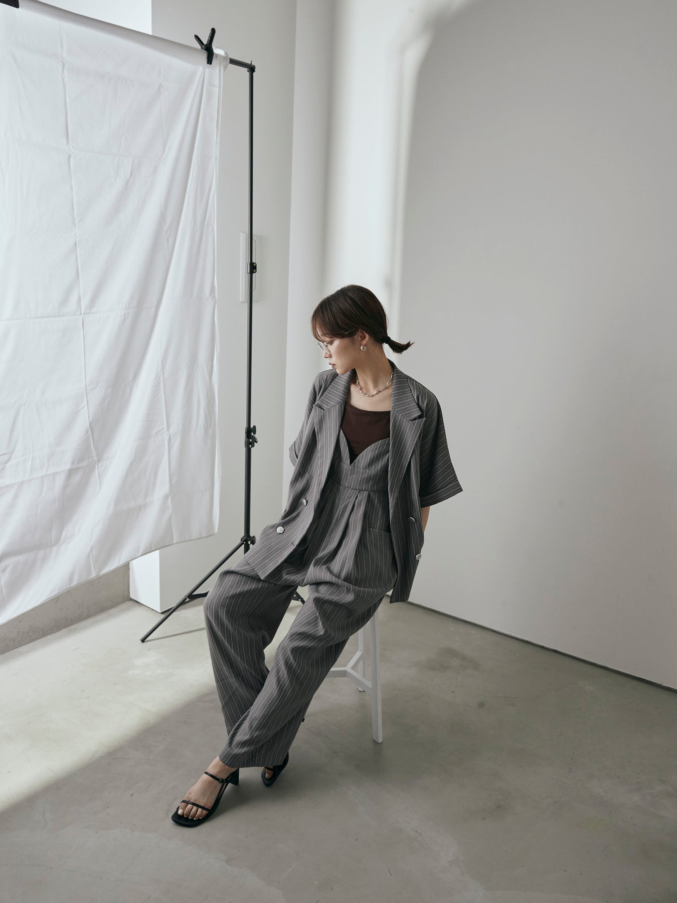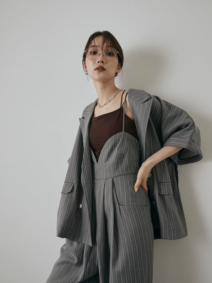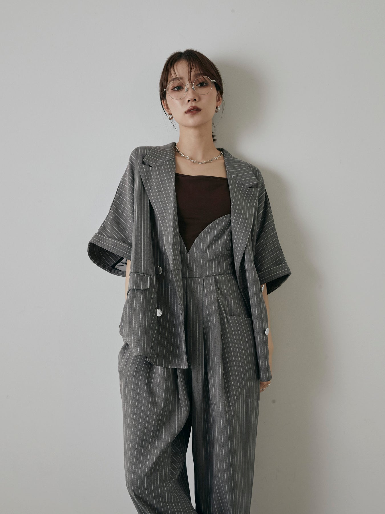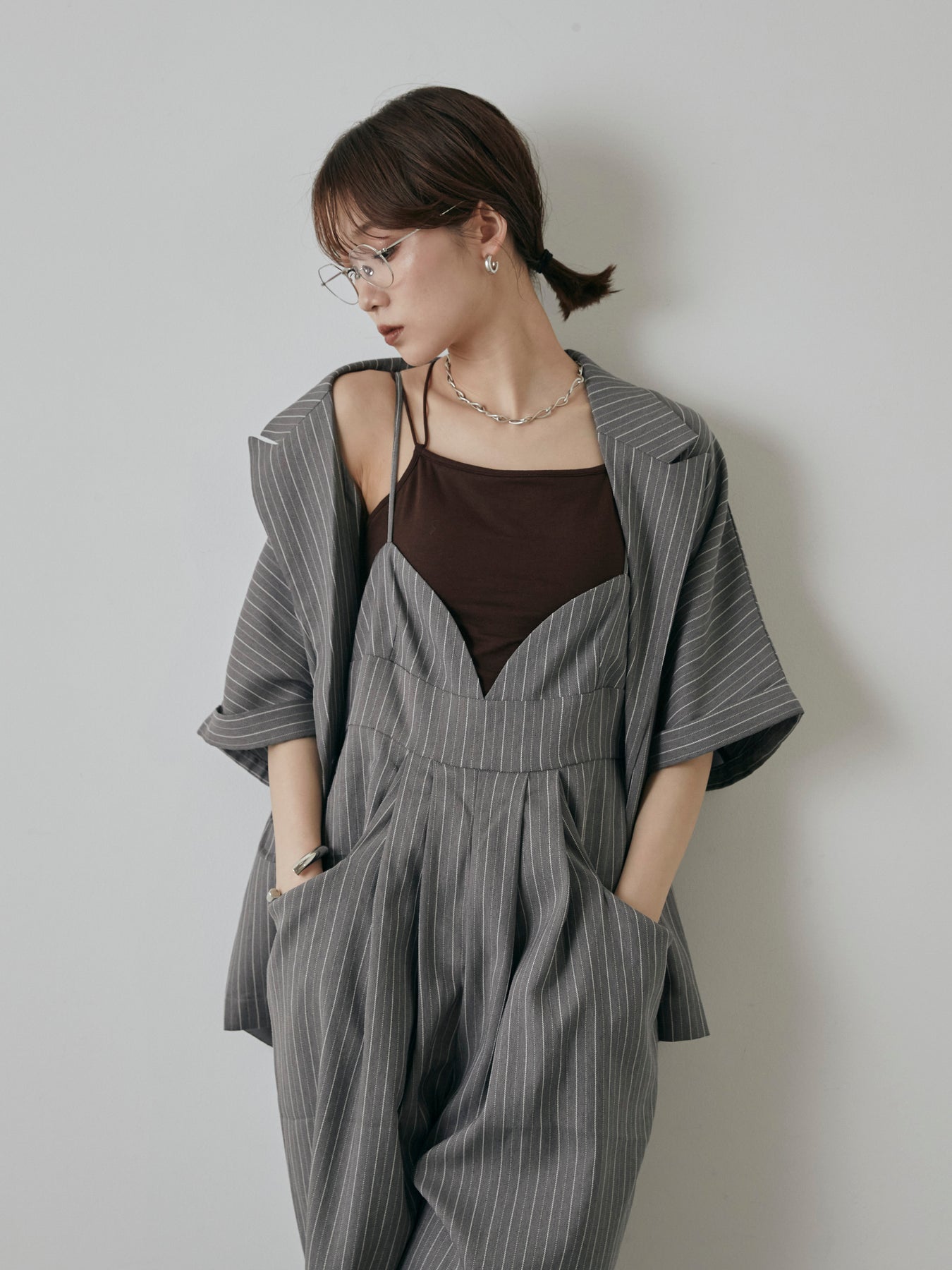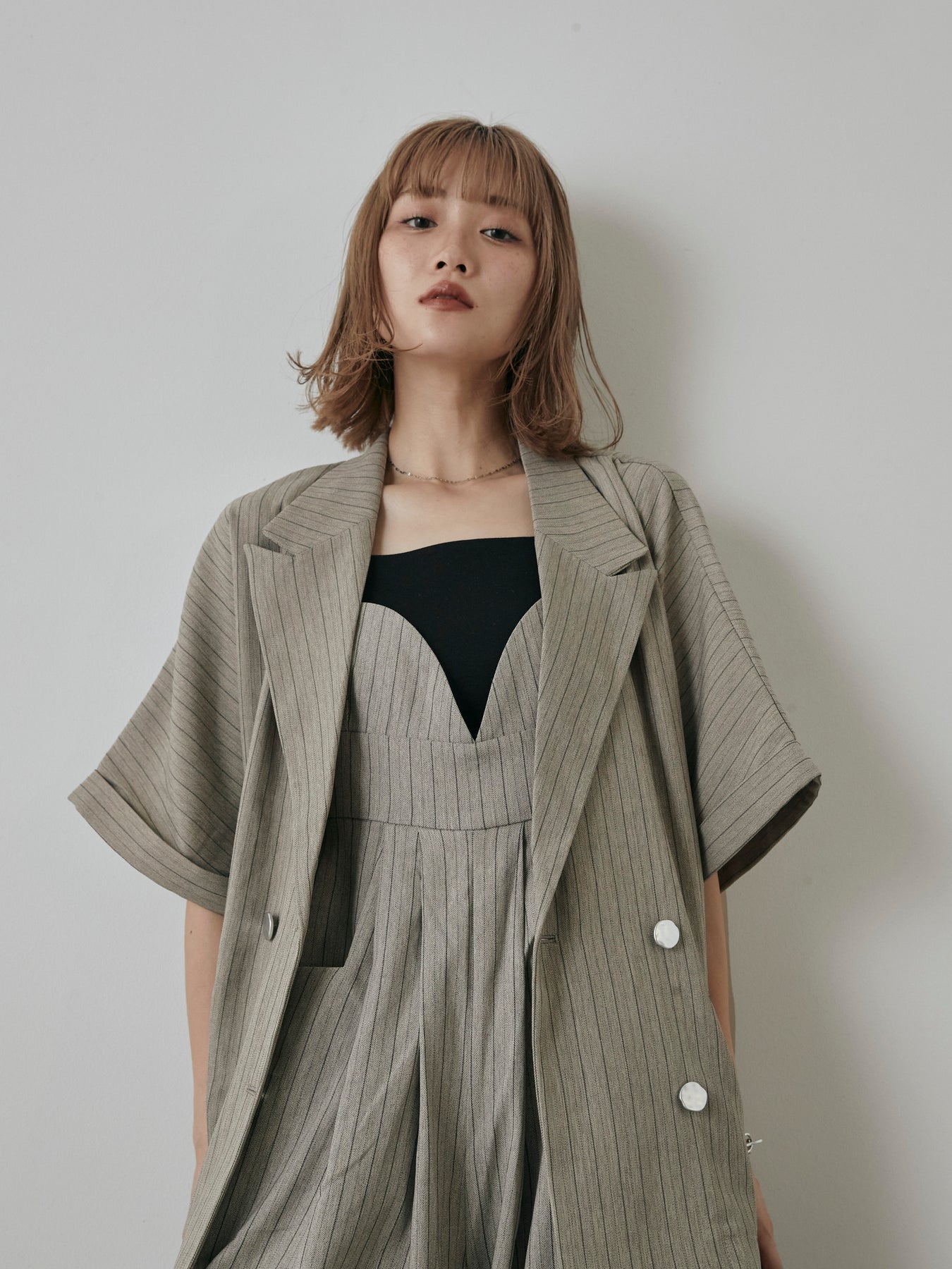 [SET]バックオーガンジーヘリンボーンストライプハーフジャケット+ヘリンボーンストライプサロペット(2set)