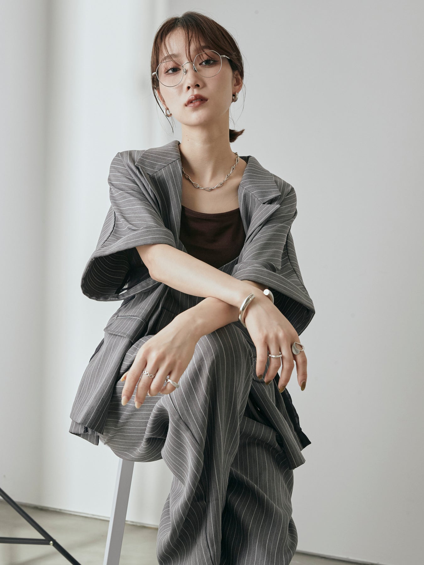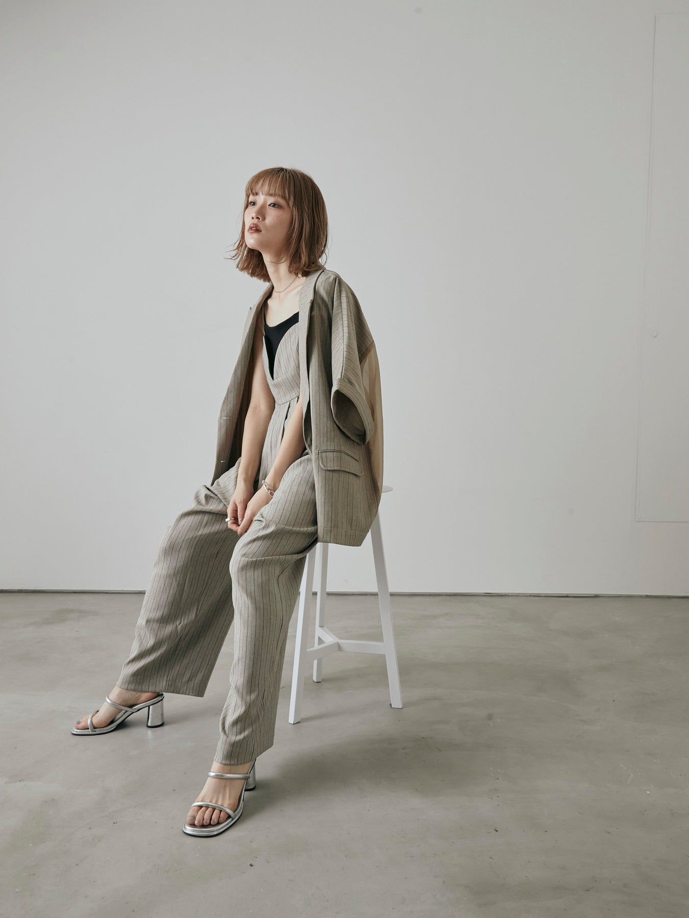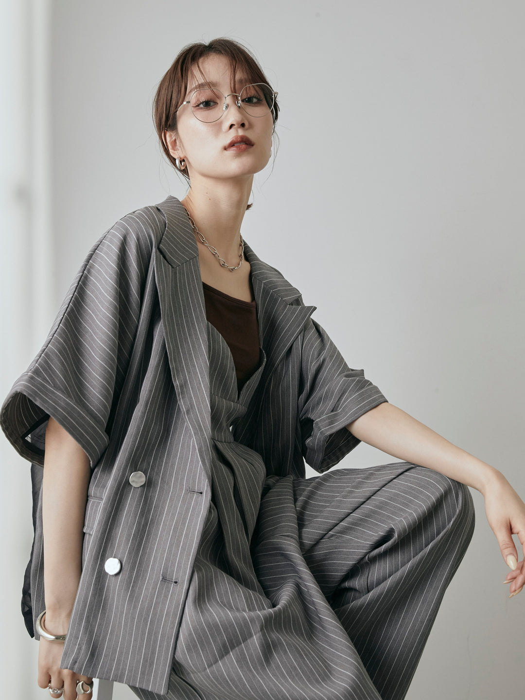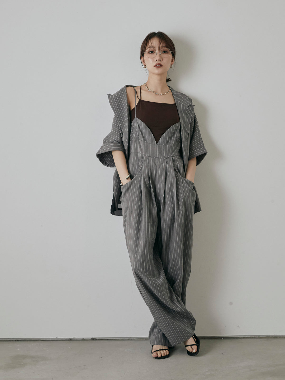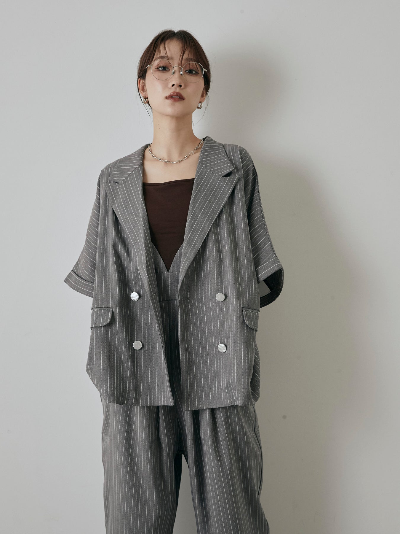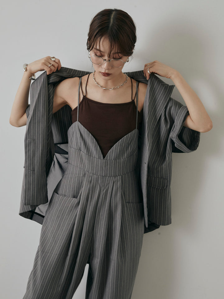 [SET]バックオーガンジーヘリンボーンストライプハーフジャケット+ヘリンボーンストライプサロペット(2set)