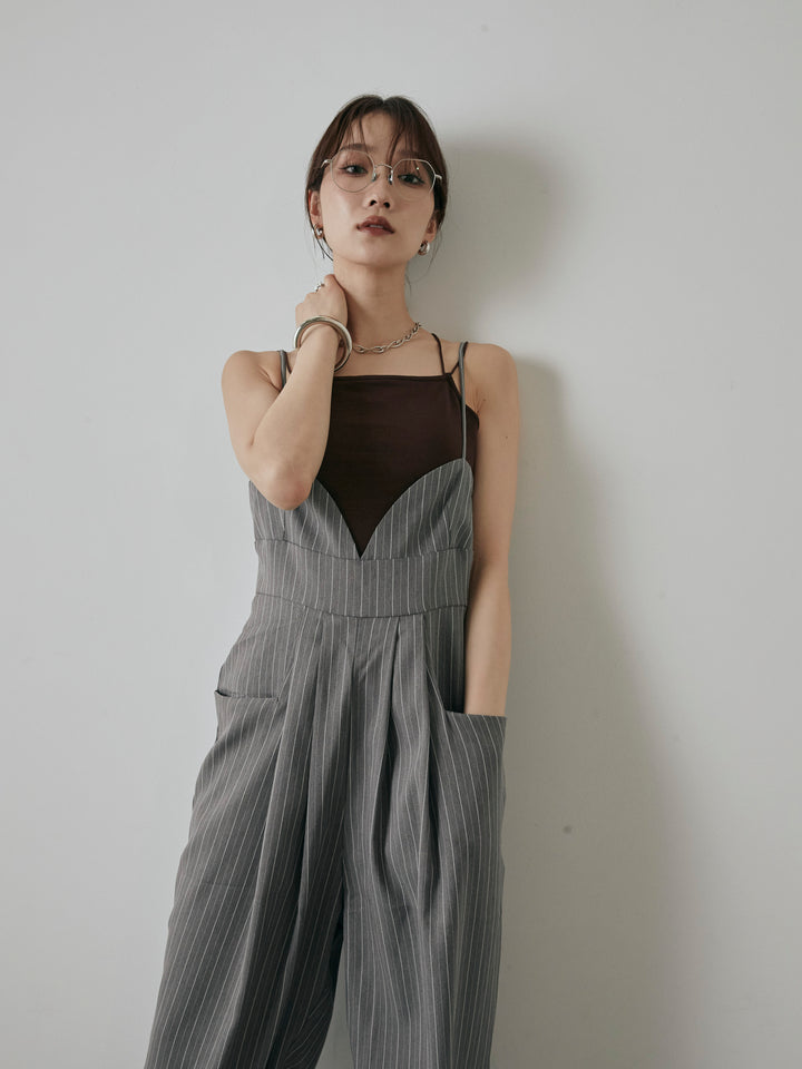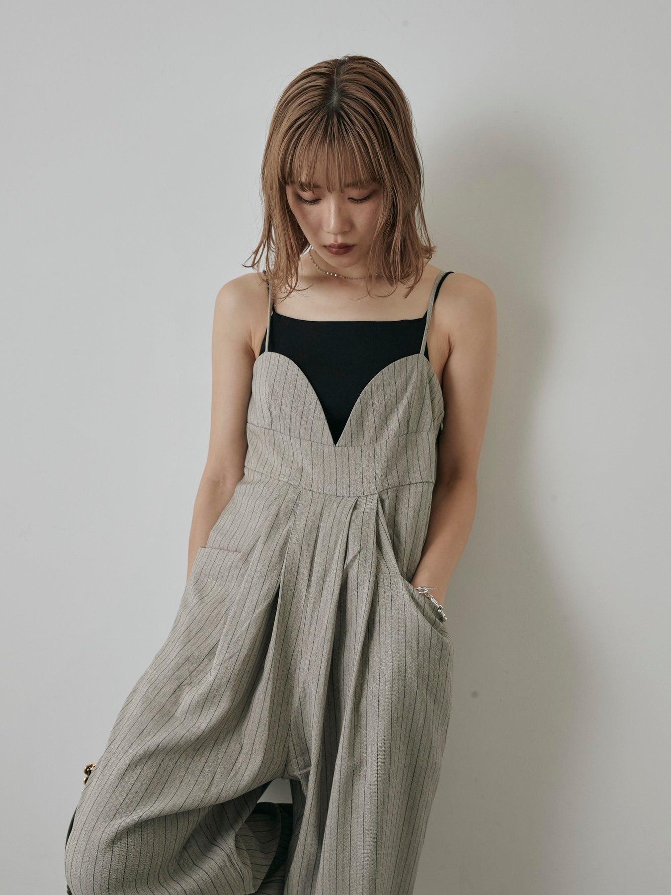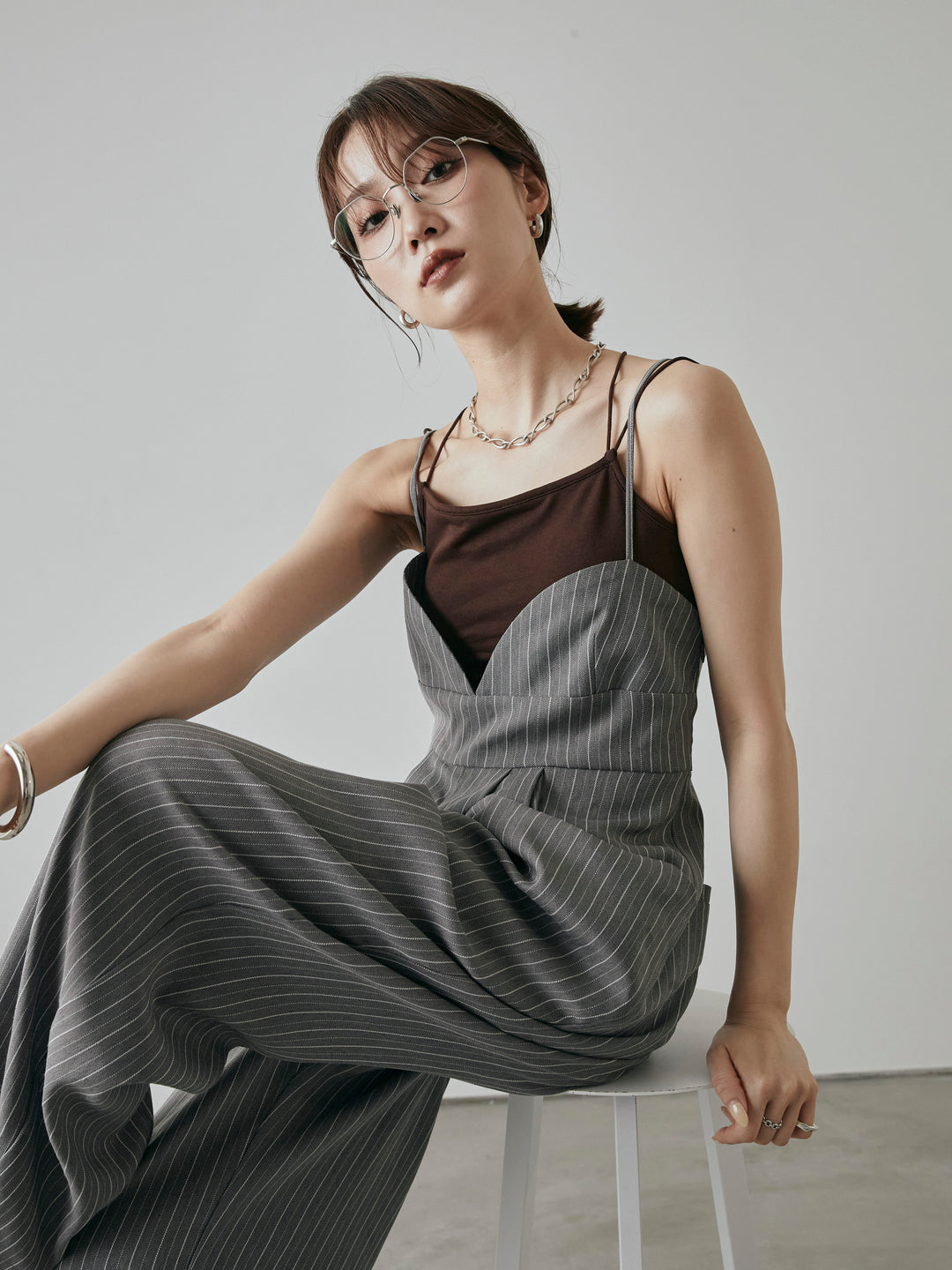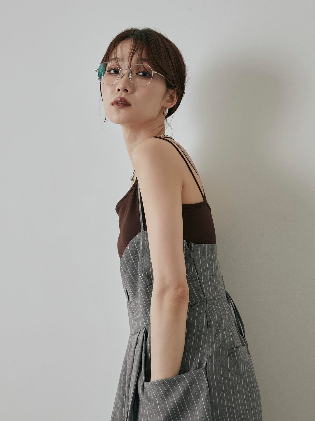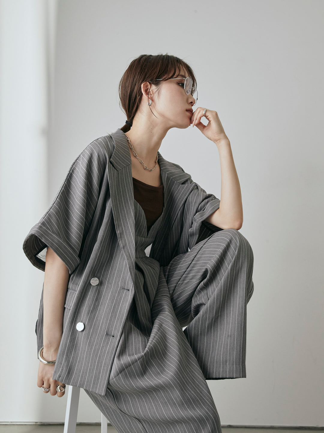 [SET]バックオーガンジーヘリンボーンストライプハーフジャケット+ヘリンボーンストライプサロペット(2set)