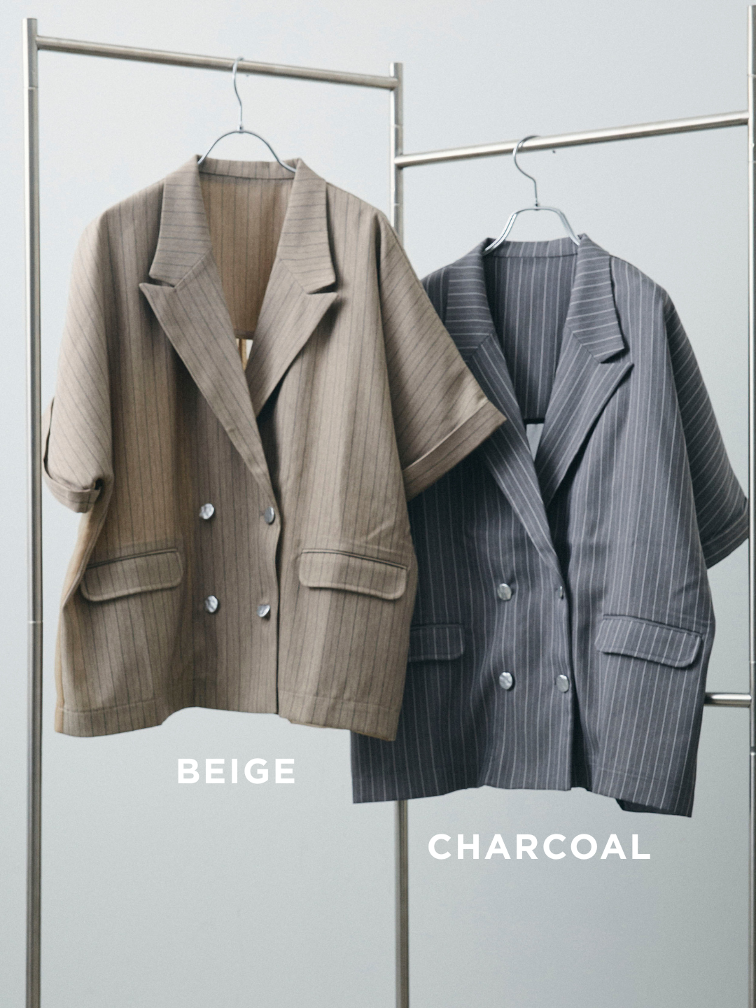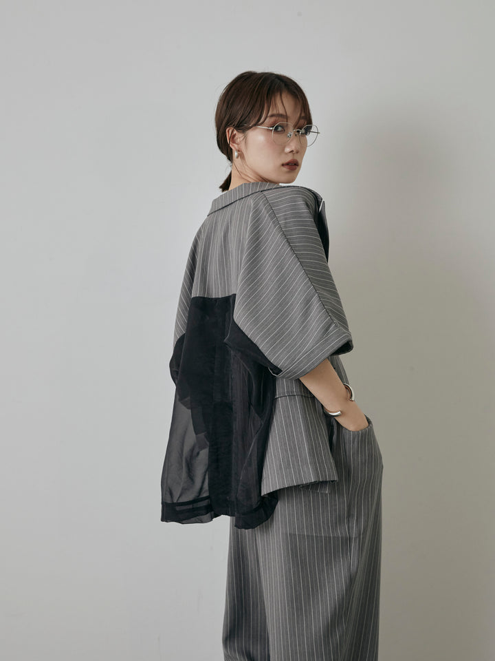 ◆ [予約]バックオーガンジーヘリンボーンストライプハーフジャケット