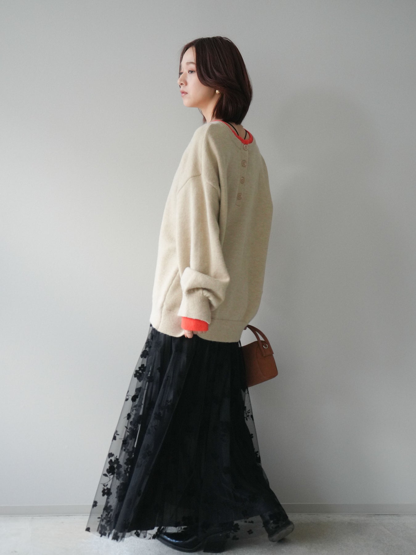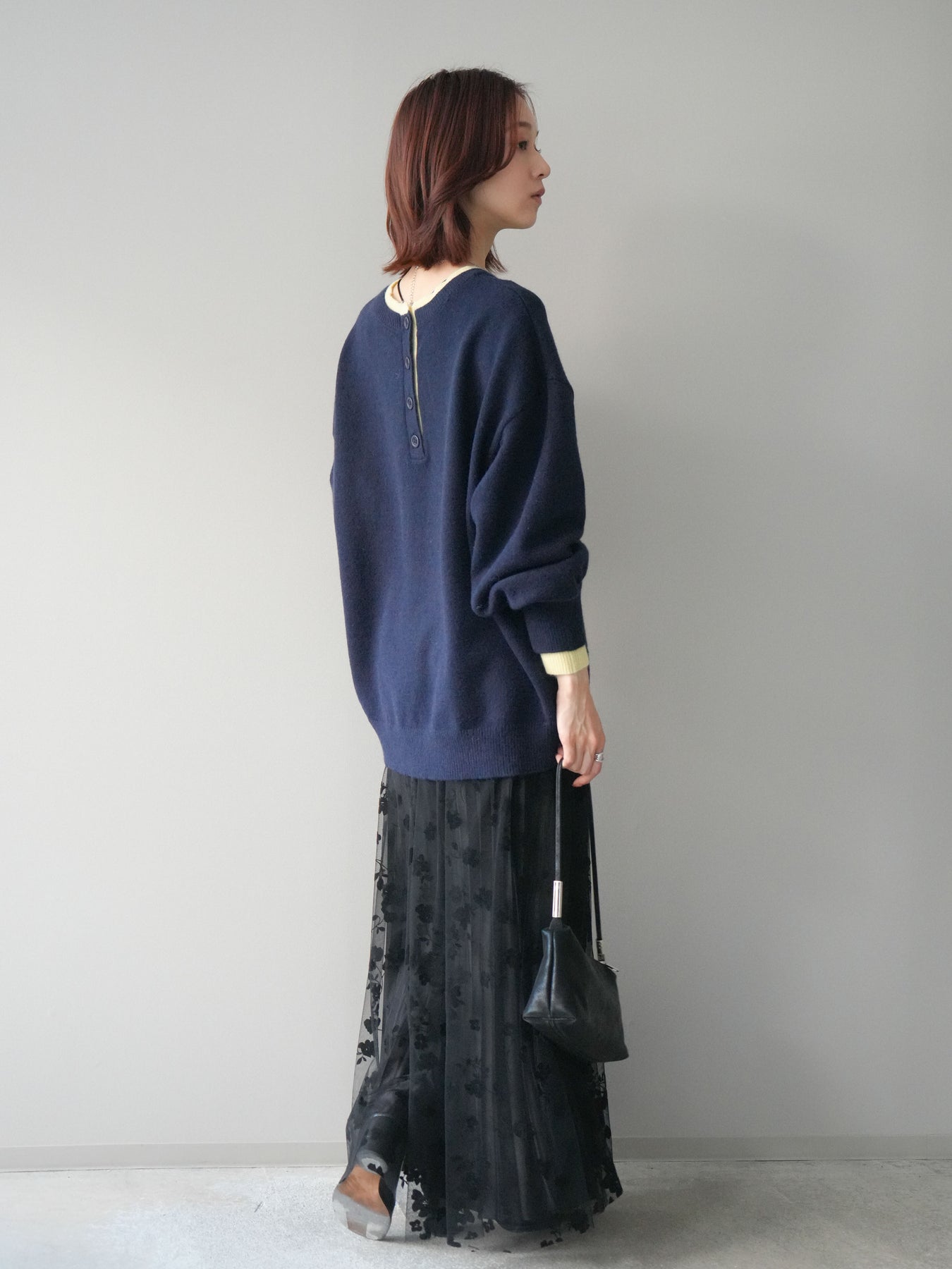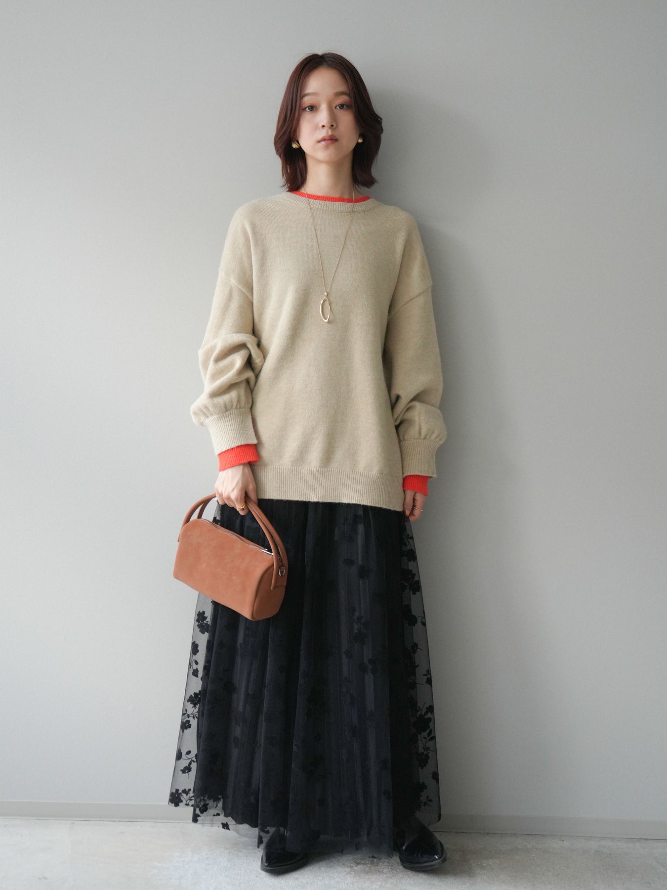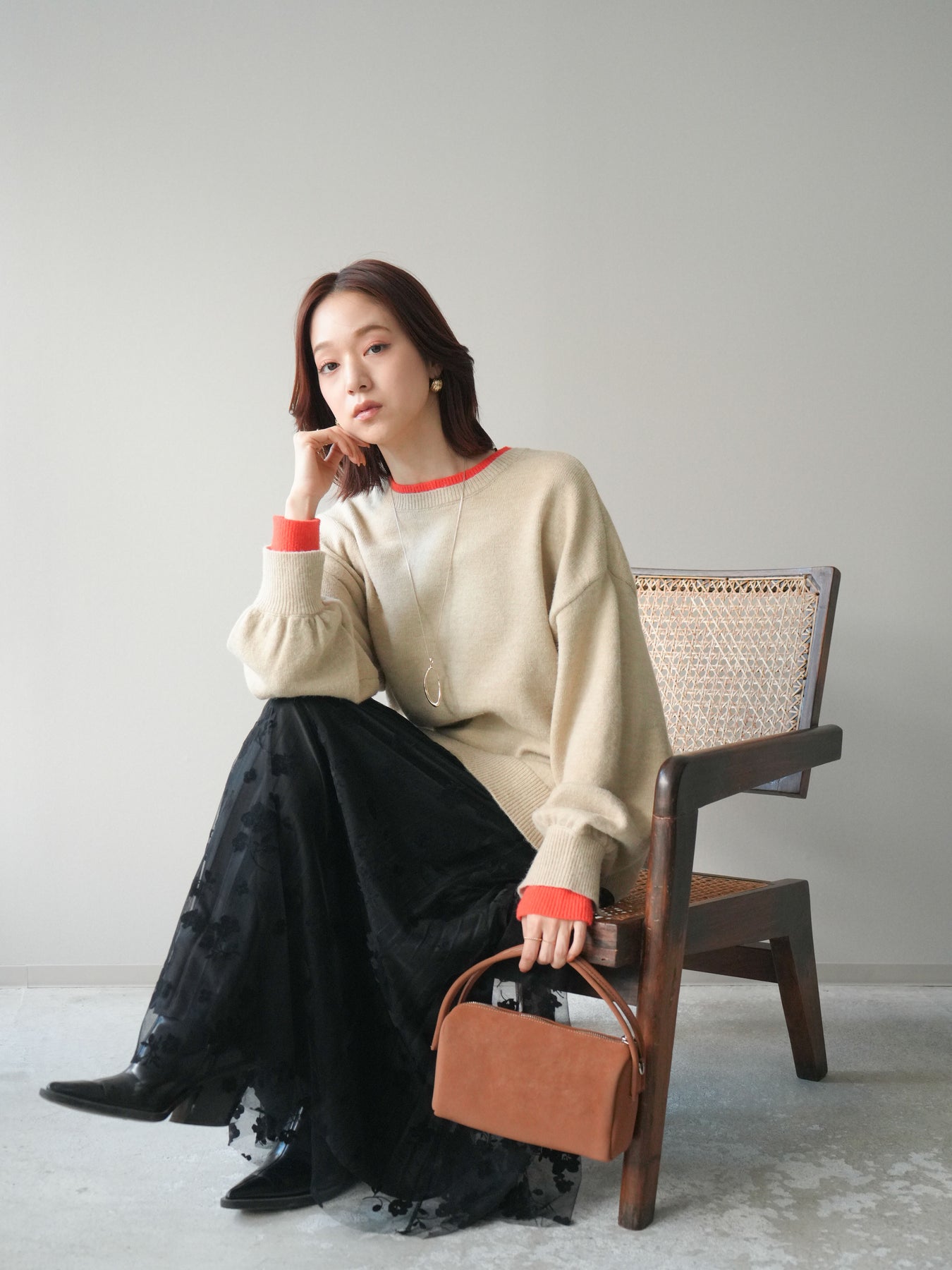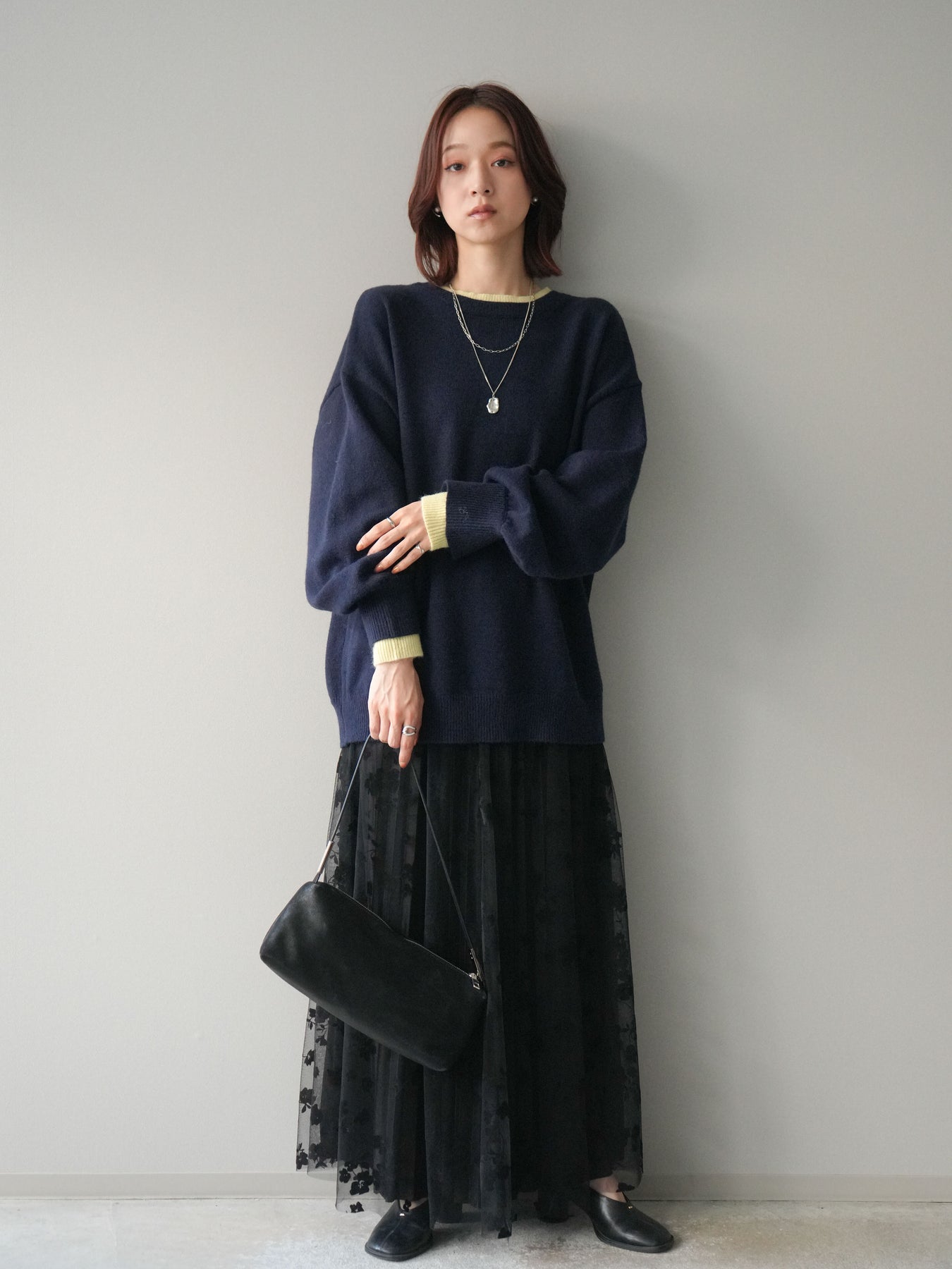 ヘンリーネックデザインのインナーを重ね着したように見える、配色レイヤード風のニットプルオーバー。首元と袖口からのぞく差し色がコーデ全体にリズムを与え、シンプルながらも抜け感のある着こなしを叶えます。ニットは柔らかな肌触りでゆったりとしたシルエットに仕上げ、デイリーに取り入れやすいリラクシーな着心地が魅力。パンツにもスカートにも合わせやすく、1枚でバランスよくスタイリングが決まる万能アイテムです。 ※ボトムス、キャミソール(インナー)以外の商品は一律でインナーは付属していません。