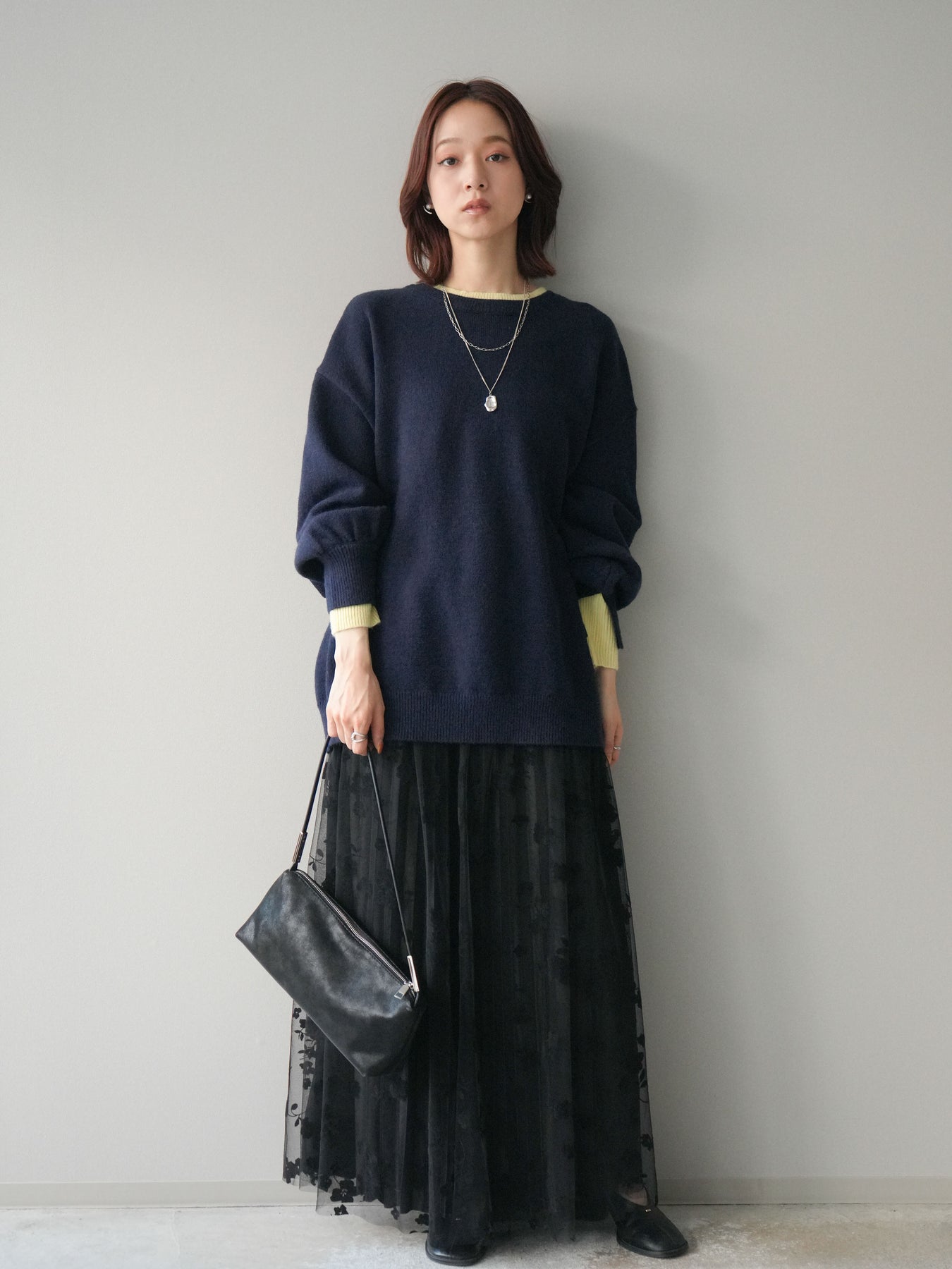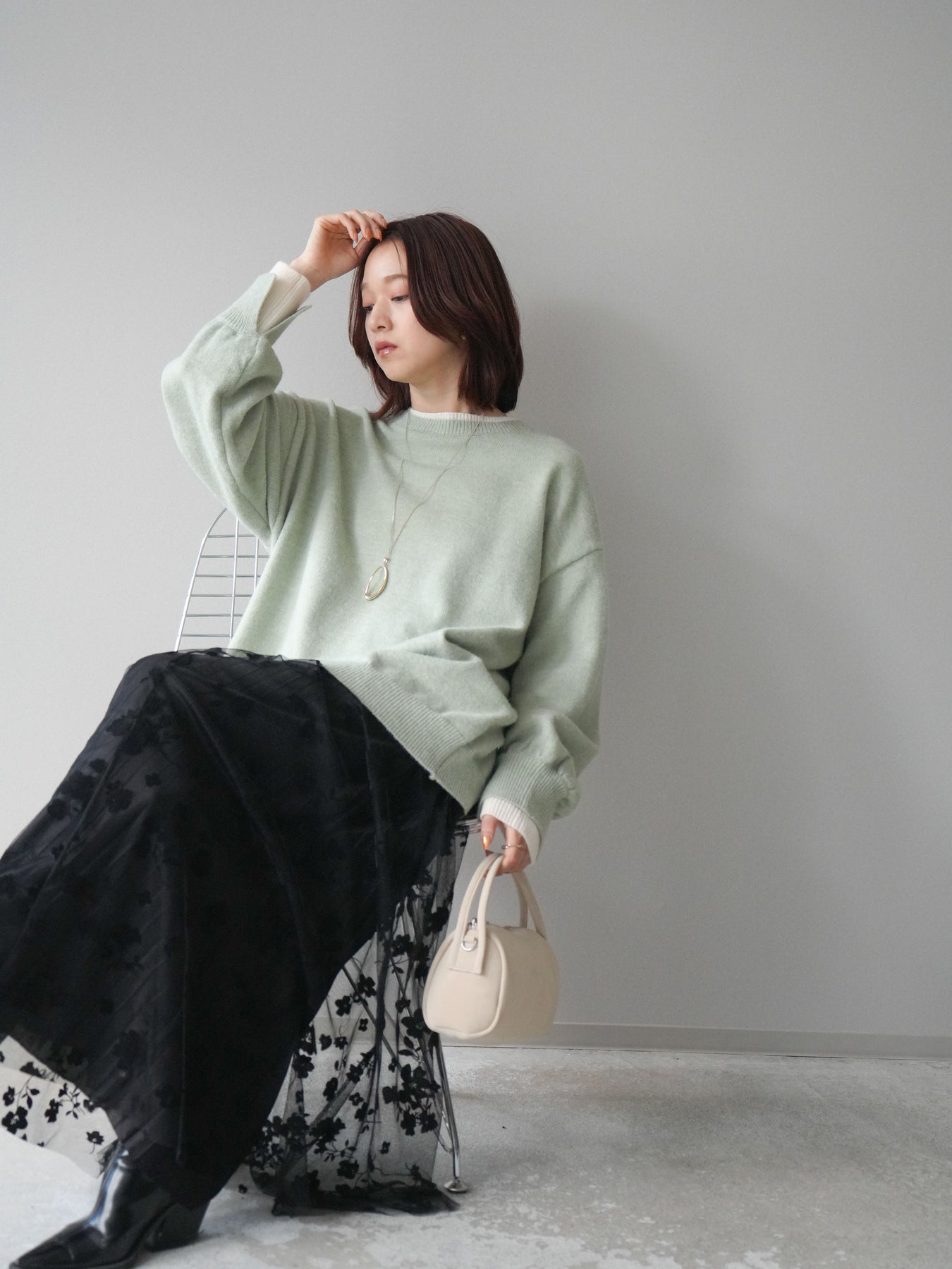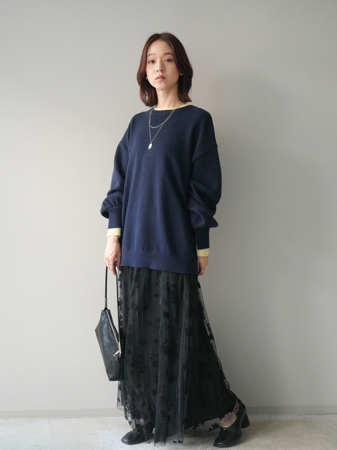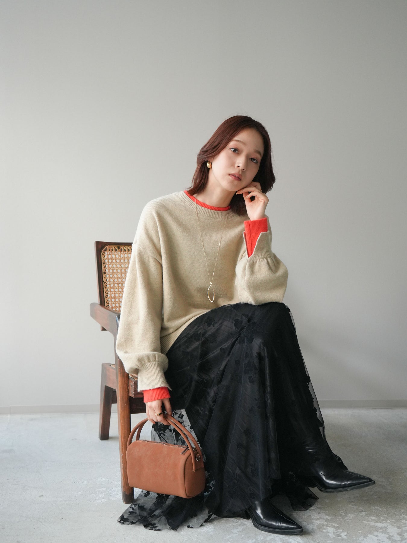 ヘンリーネックデザインのインナーを重ね着したように見える、配色レイヤード風のニットプルオーバー。首元と袖口からのぞく差し色がコーデ全体にリズムを与え、シンプルながらも抜け感のある着こなしを叶えます。ニットは柔らかな肌触りでゆったりとしたシルエットに仕上げ、デイリーに取り入れやすいリラクシーな着心地が魅力。パンツにもスカートにも合わせやすく、1枚でバランスよくスタイリングが決まる万能アイテムです。 ※ボトムス、キャミソール(インナー)以外の商品は一律でインナーは付属していません。