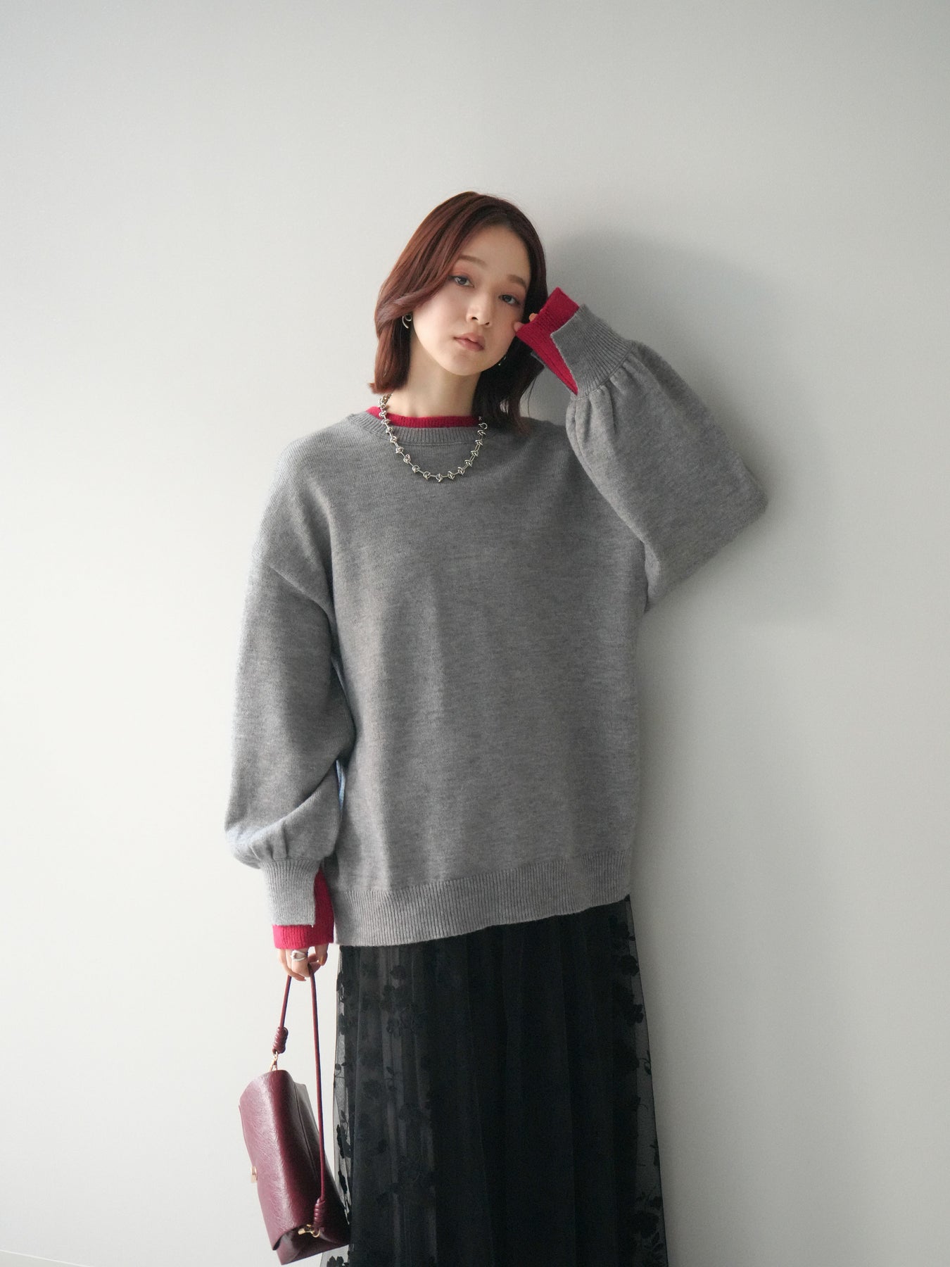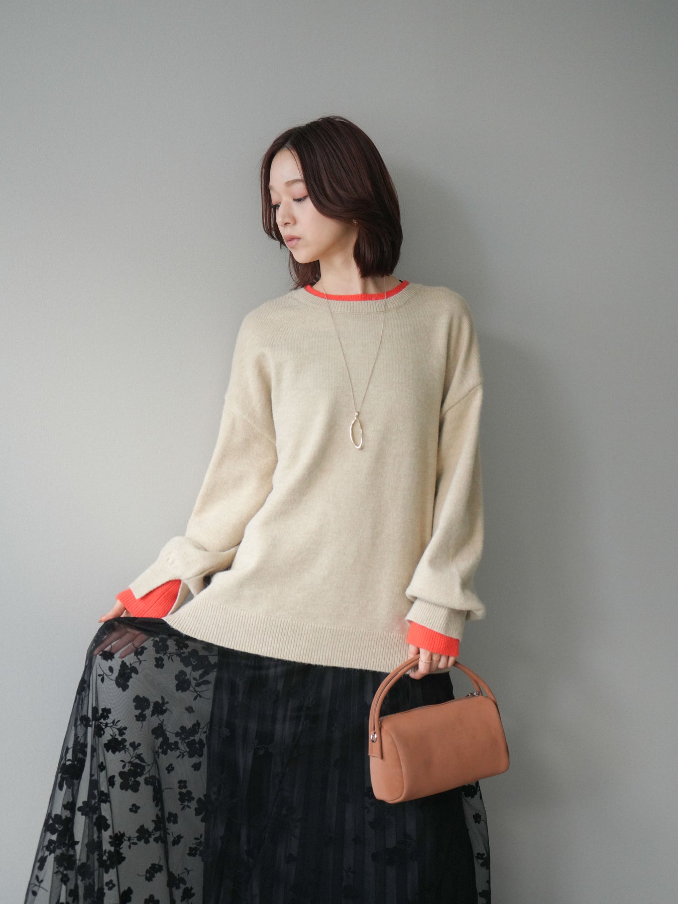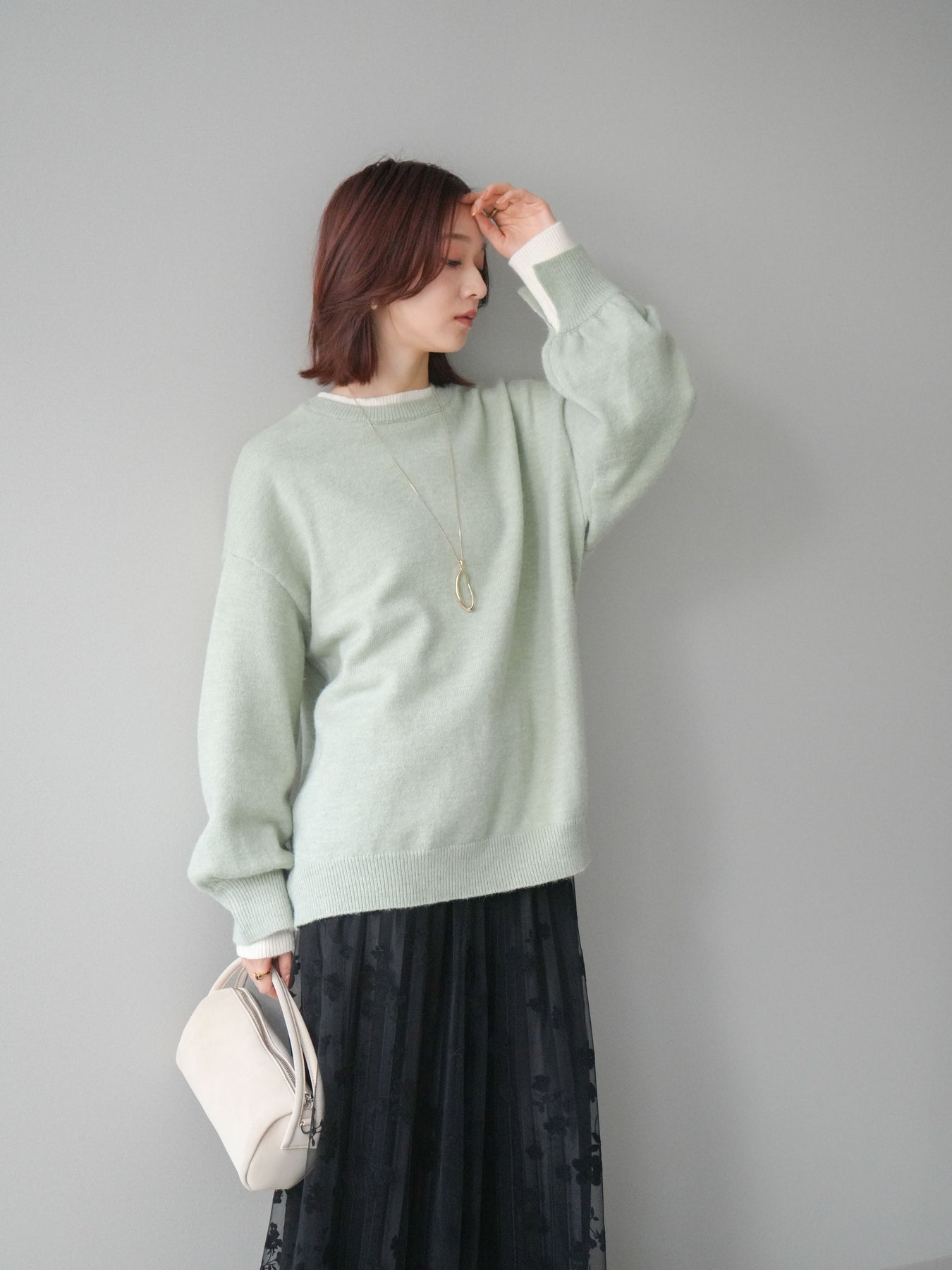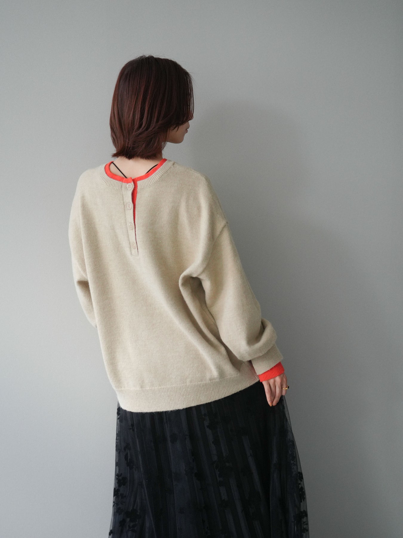 ◆ [予約]ヘンリーネック配色レイヤードニットプルオーバー