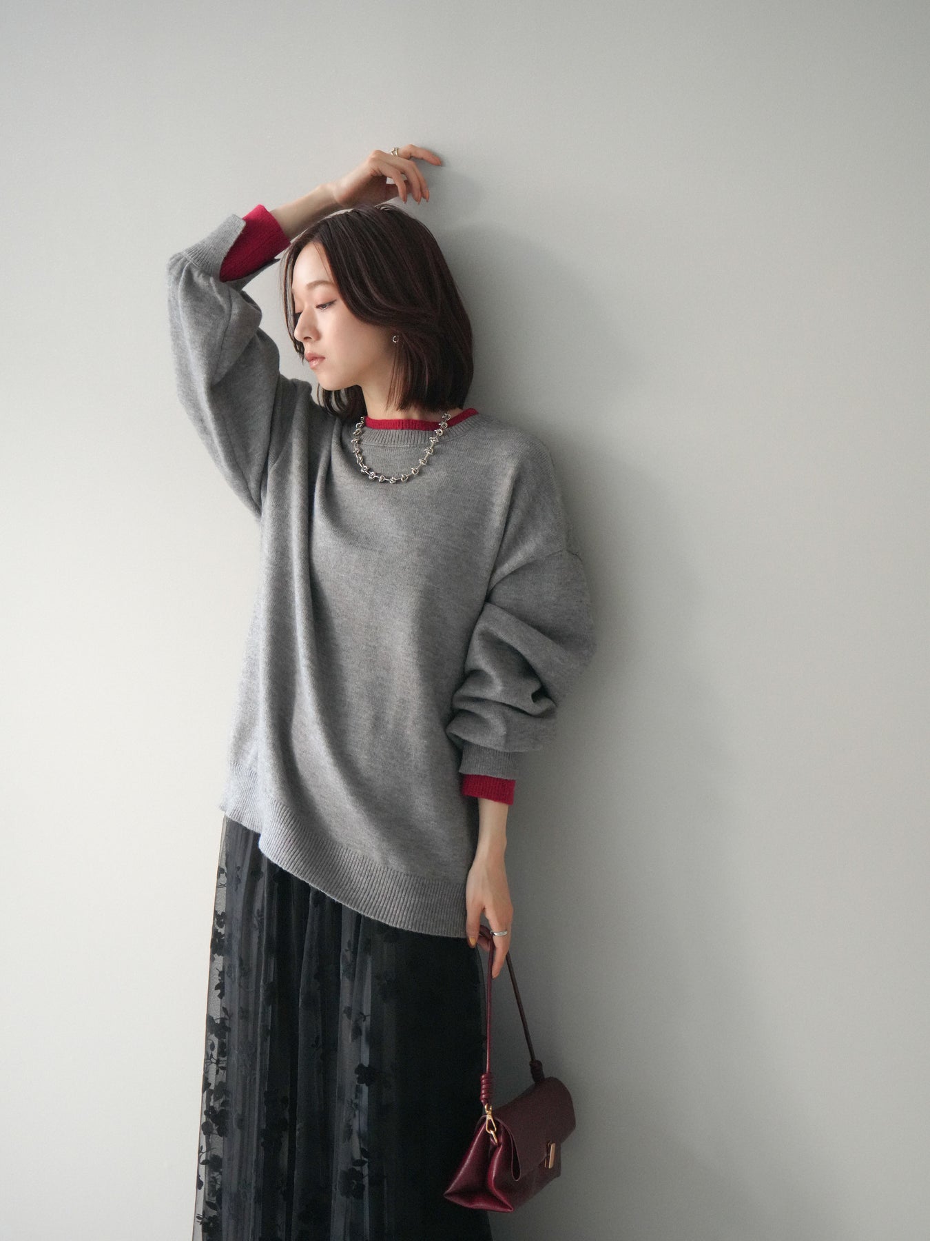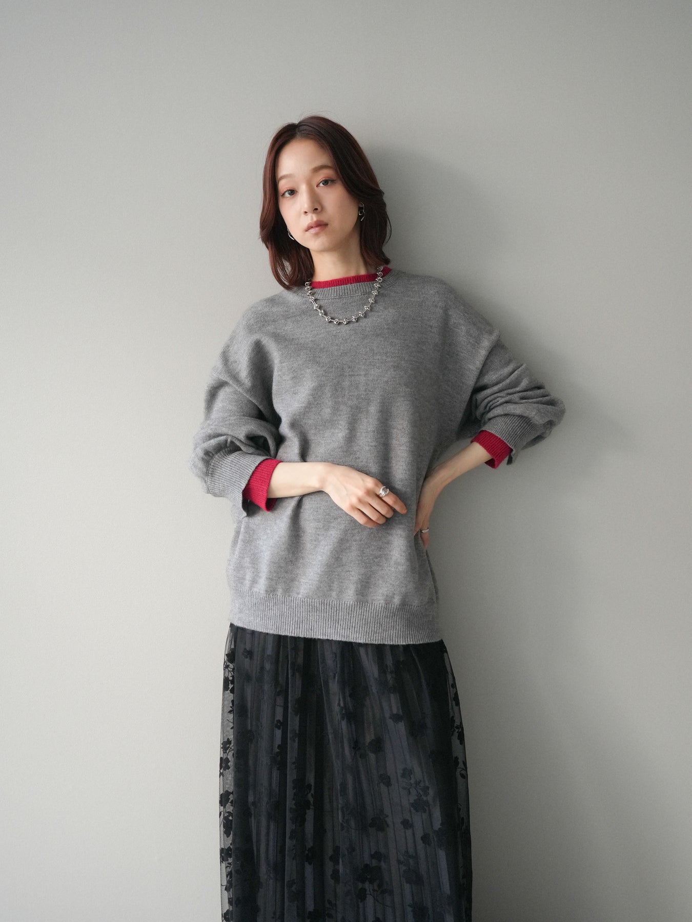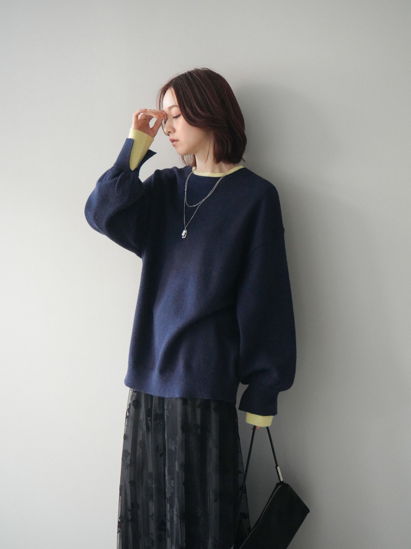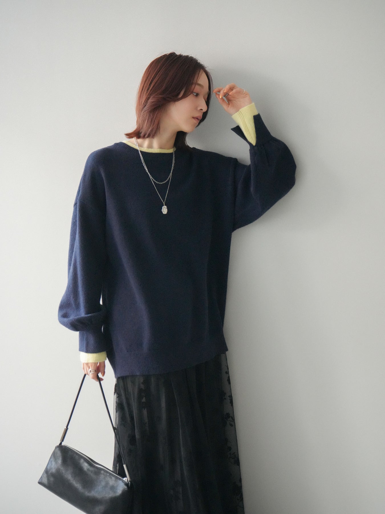 ◆ [予約]ヘンリーネック配色レイヤードニットプルオーバー
