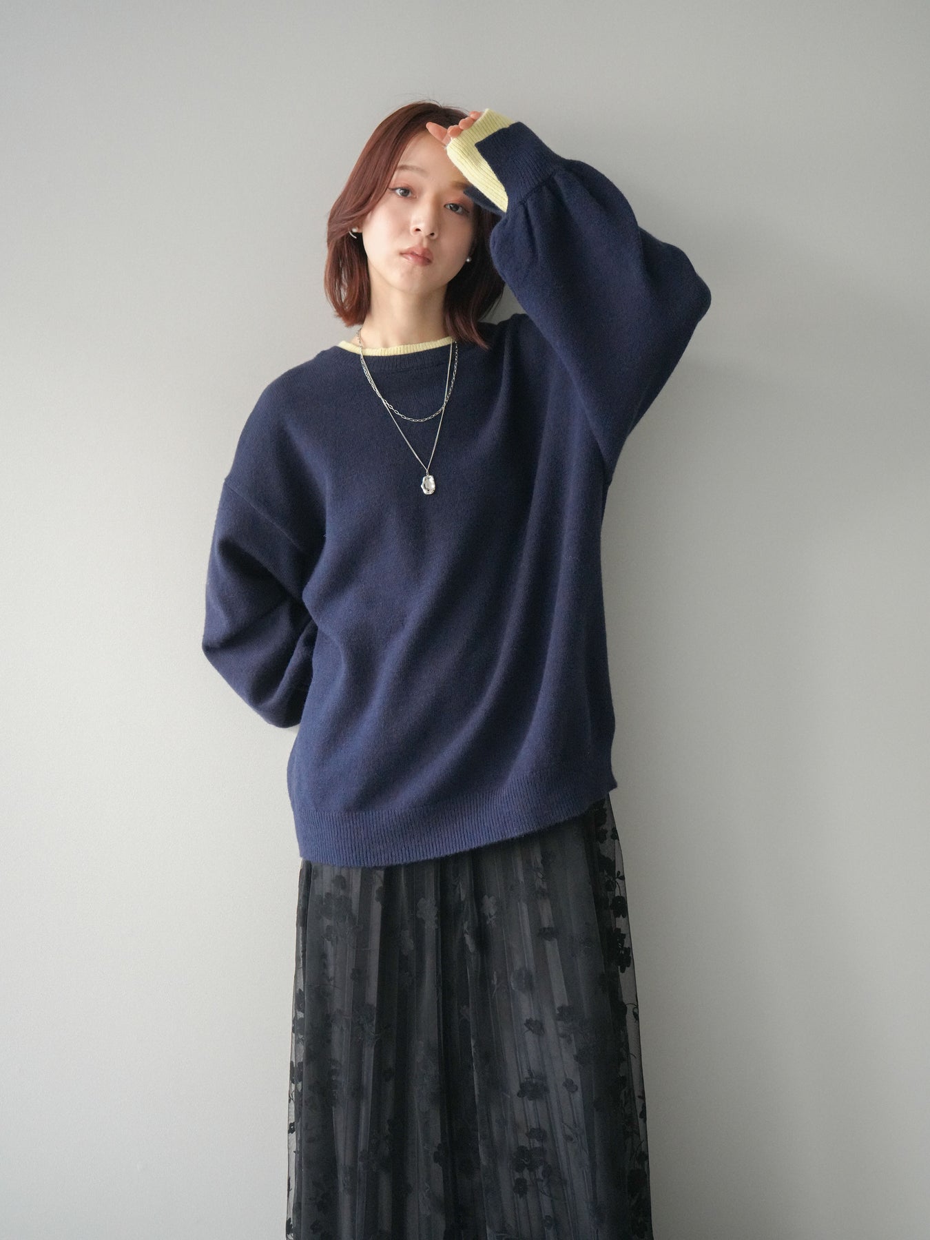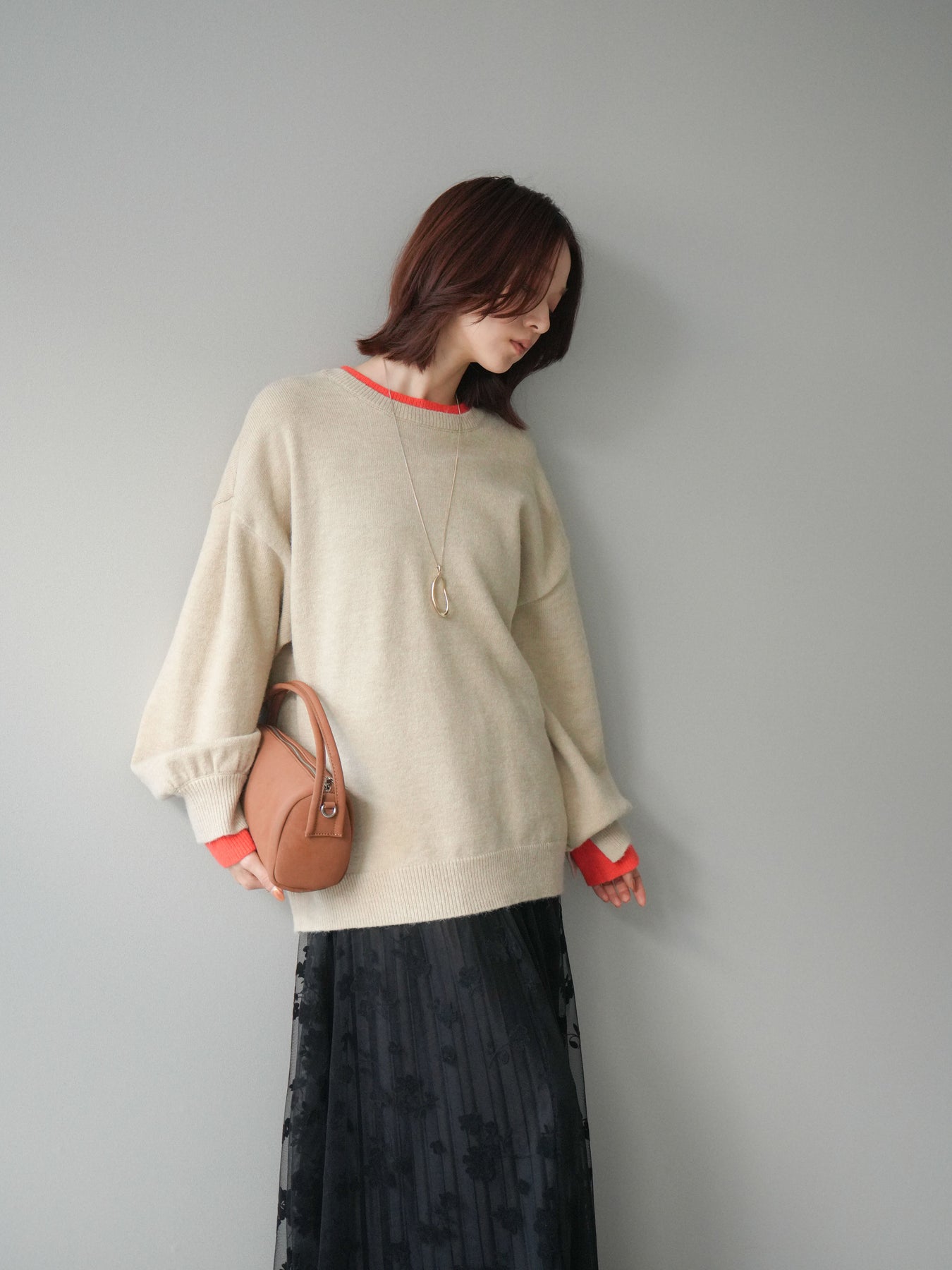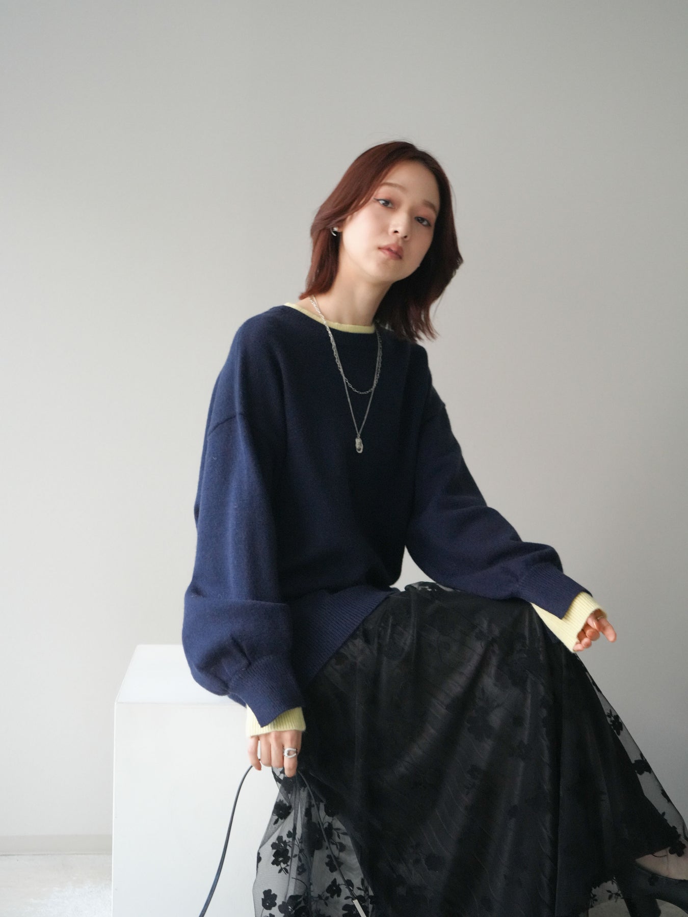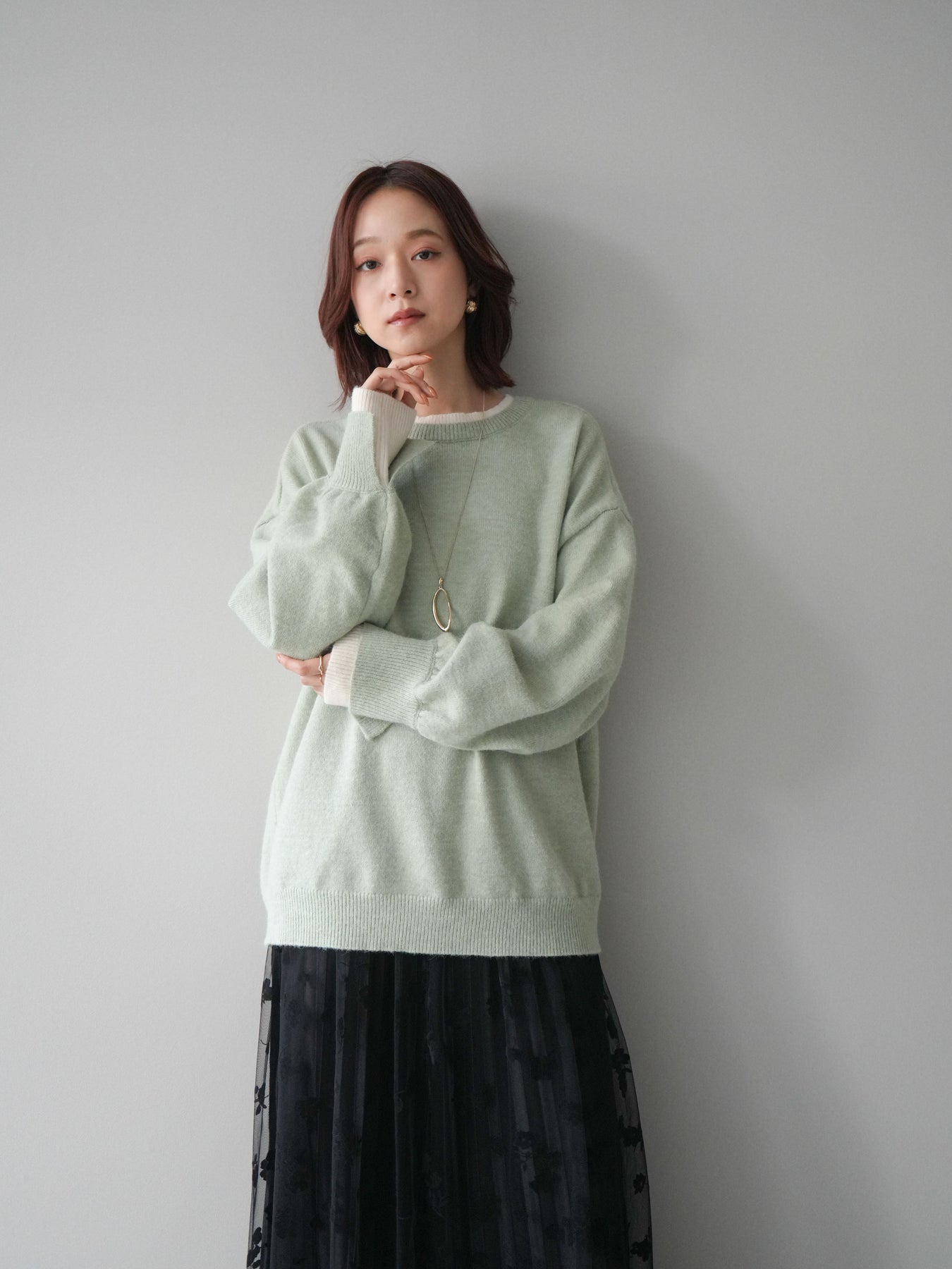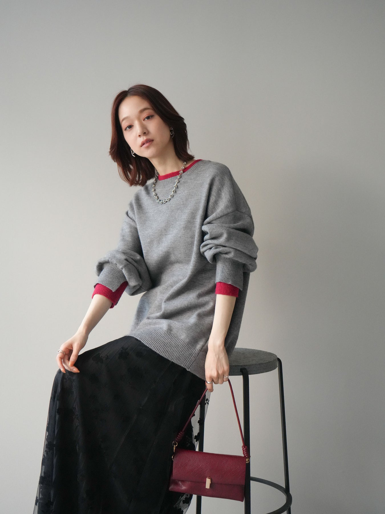 ◆ [予約]ヘンリーネック配色レイヤードニットプルオーバー