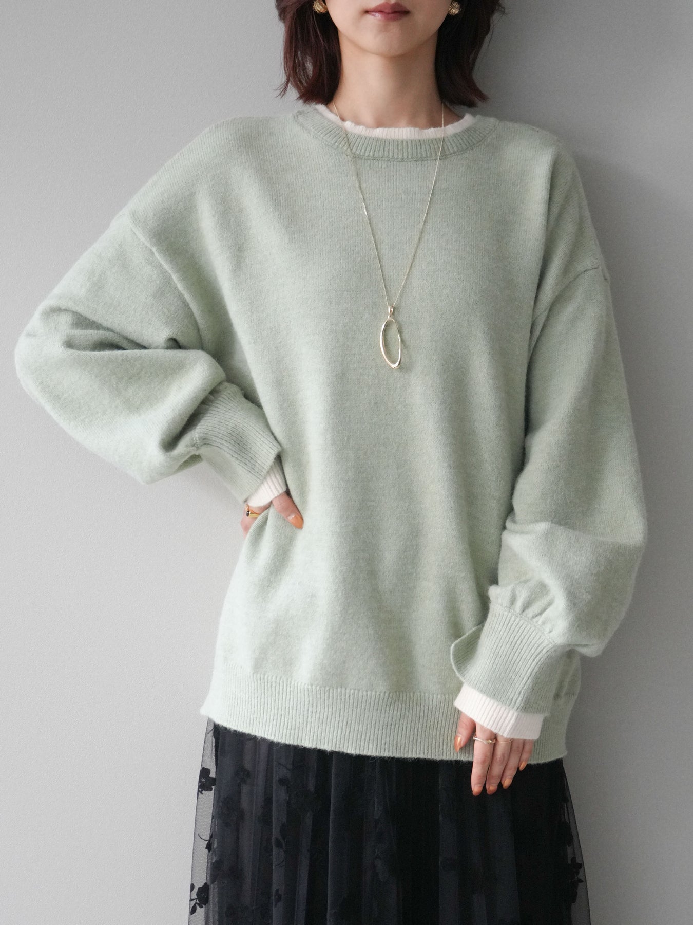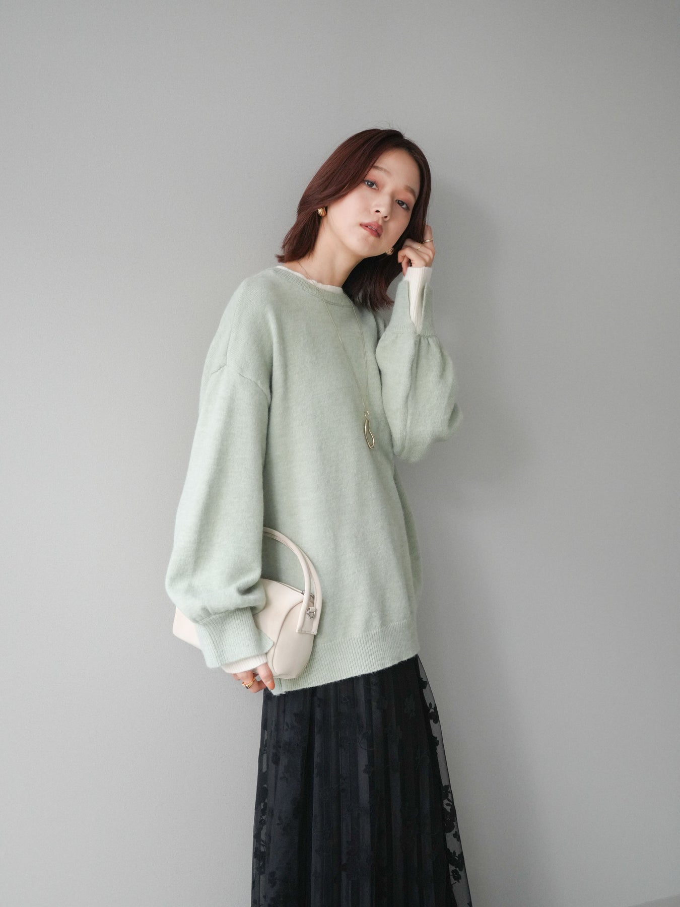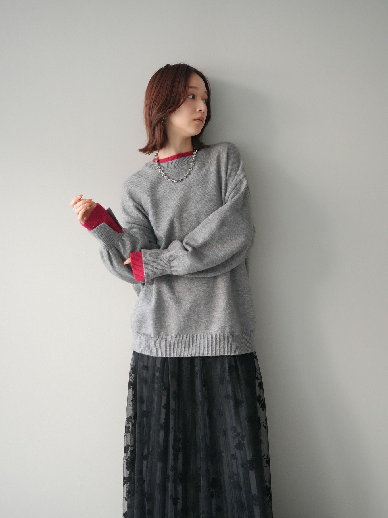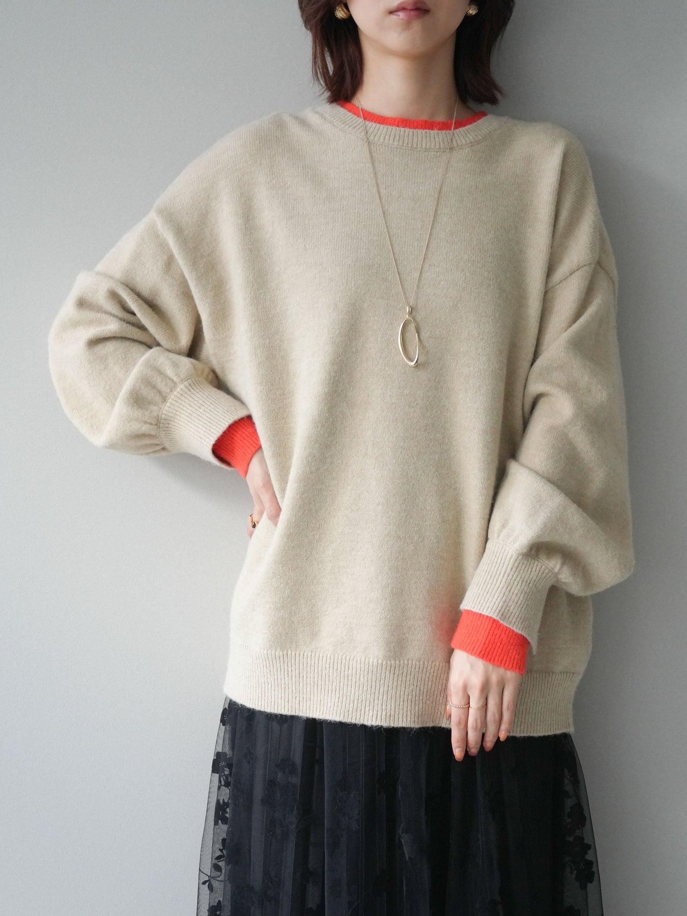 ◆ [予約]ヘンリーネック配色レイヤードニットプルオーバー