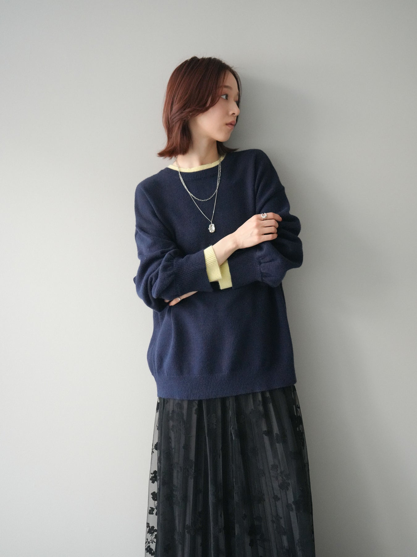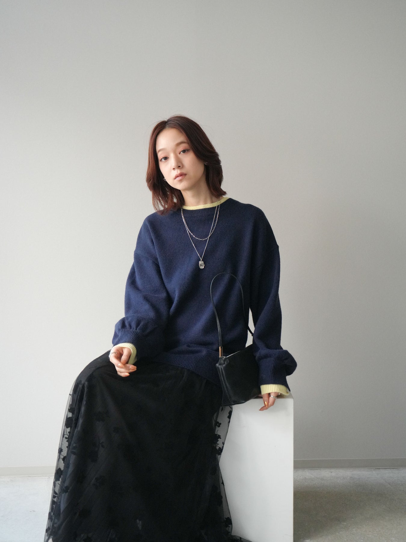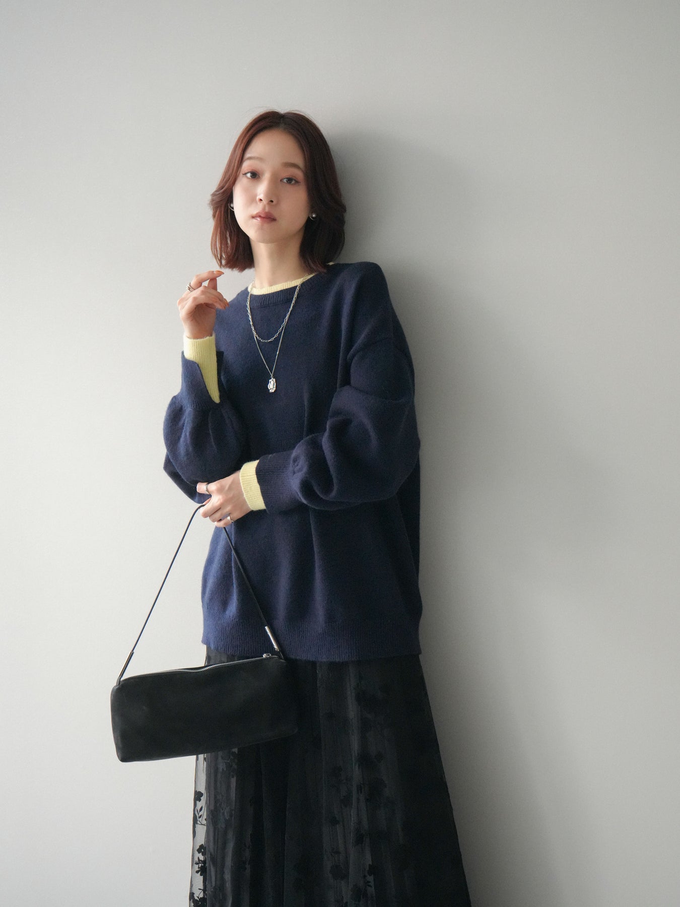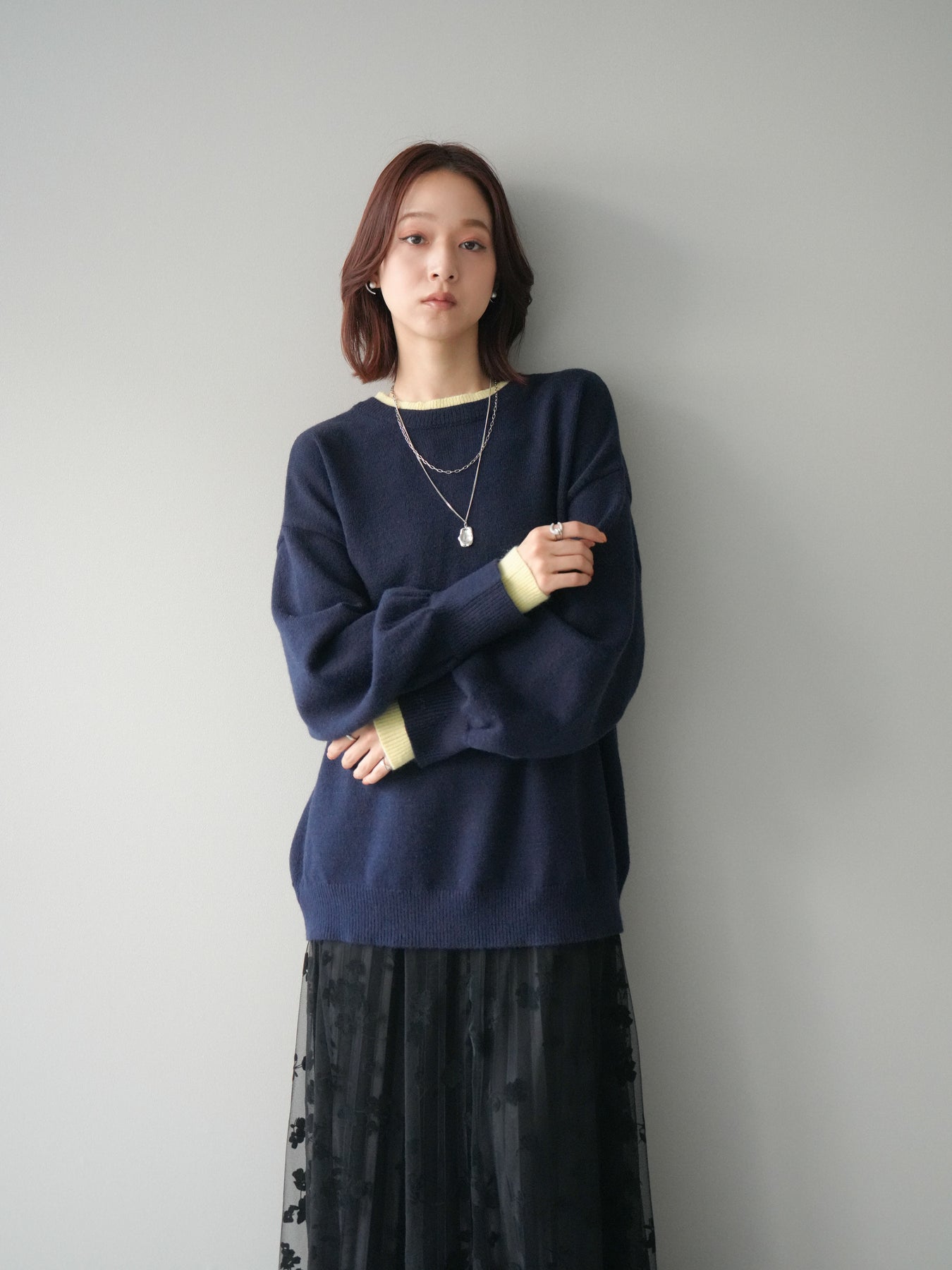 ◆ [予約]ヘンリーネック配色レイヤードニットプルオーバー