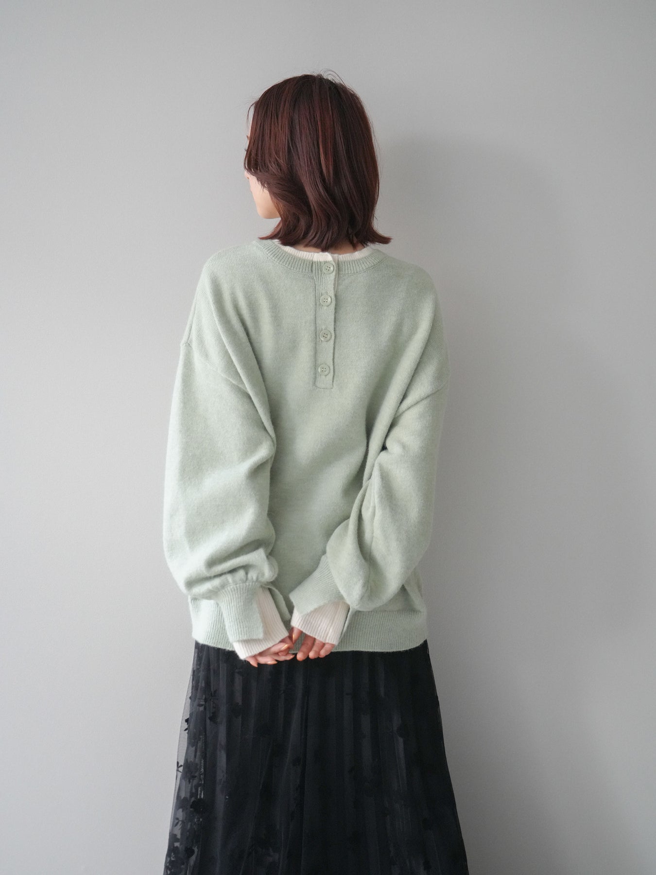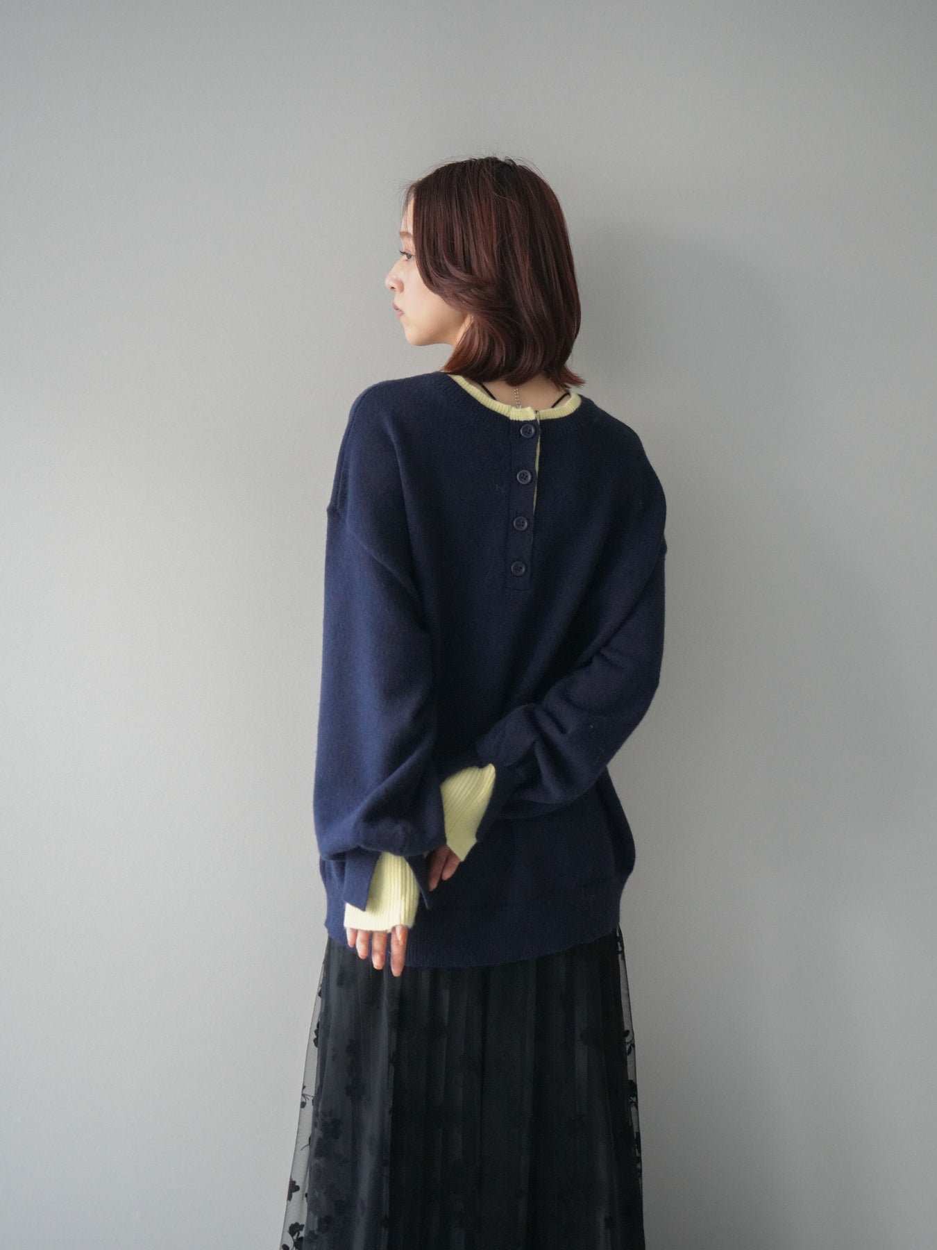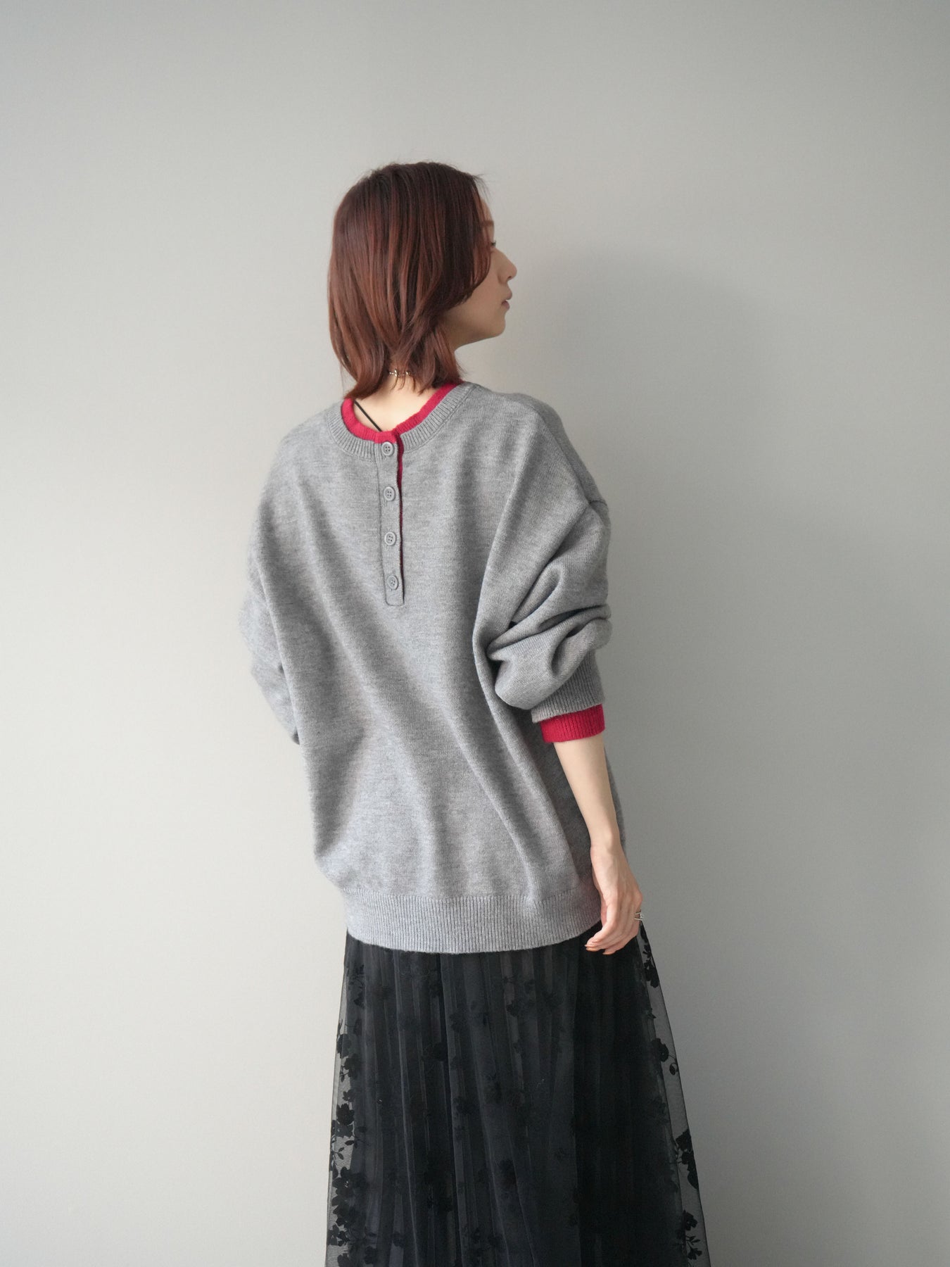 [予約]ヘンリーネック配色レイヤードニットプルオーバー