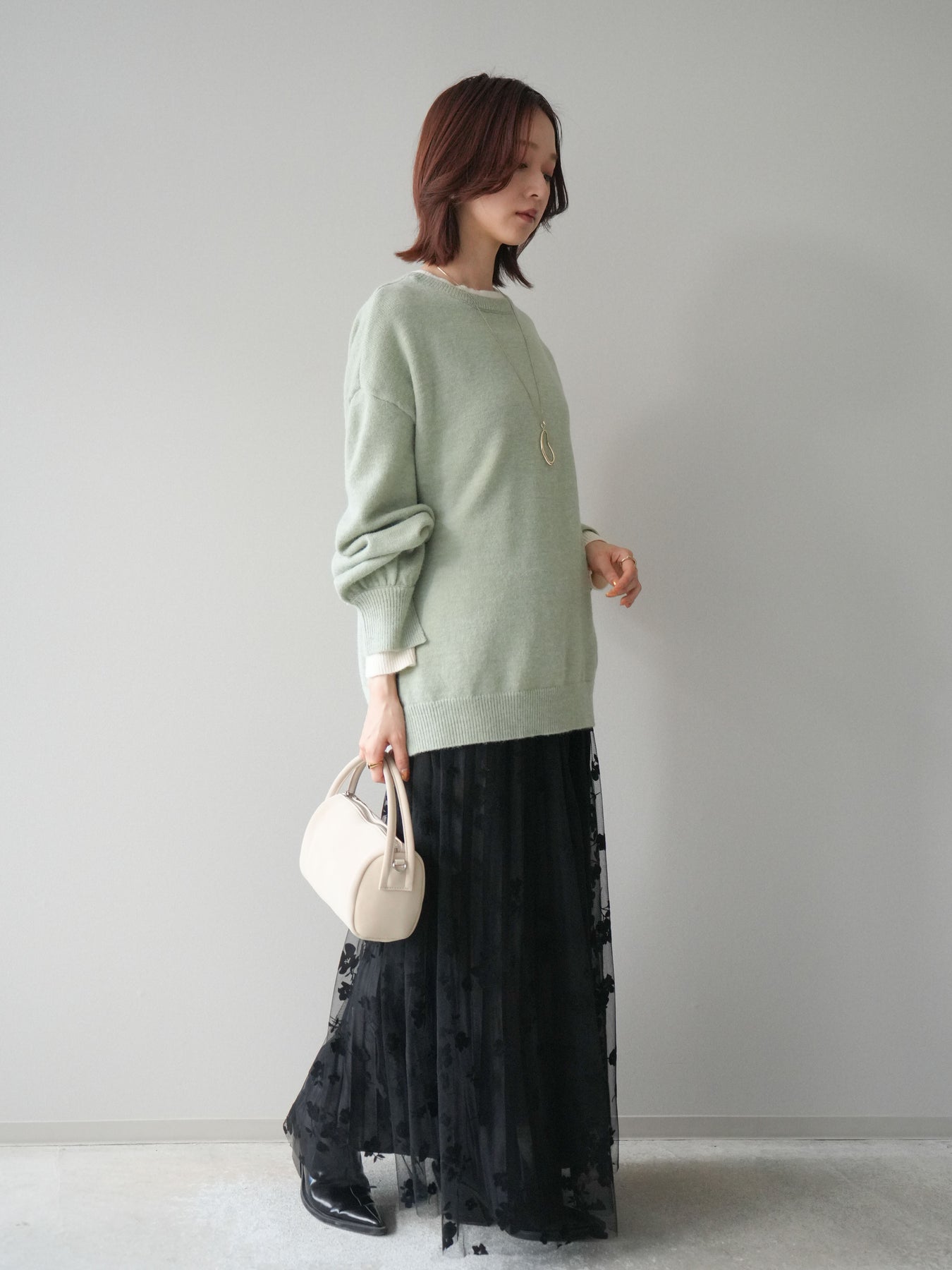 繊細なチュールにフラワーフロッキー加工を施した、上品な存在感のプリーツスカート。揺れるたびに立体的な柄が浮かび上がり、コーディネートに奥行きと華やかさをプラスします。プリーツの落ち感が美しく、歩く動作に合わせて優雅なシルエットを描くのも魅力。ウエストは総ゴム仕様で快適な穿き心地を叶えながら、トップスをタックインしてもすっきりまとまるデザインに。シンプルなニットやブラウスと合わせるだけで主役級の着こなしが完成し、デイリーから特別なシーンまで幅広く活躍する一枚です。