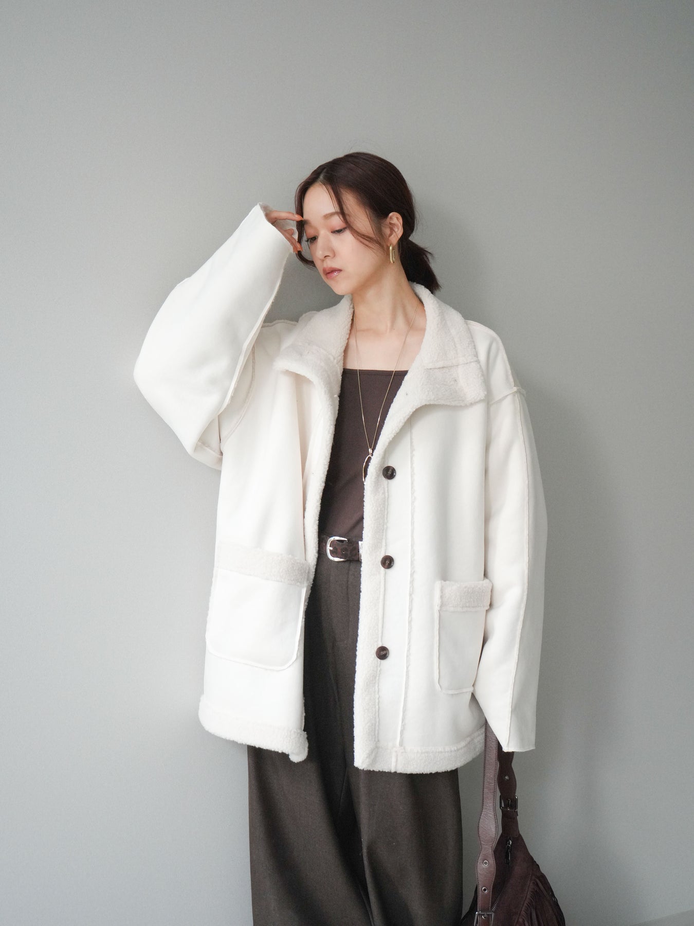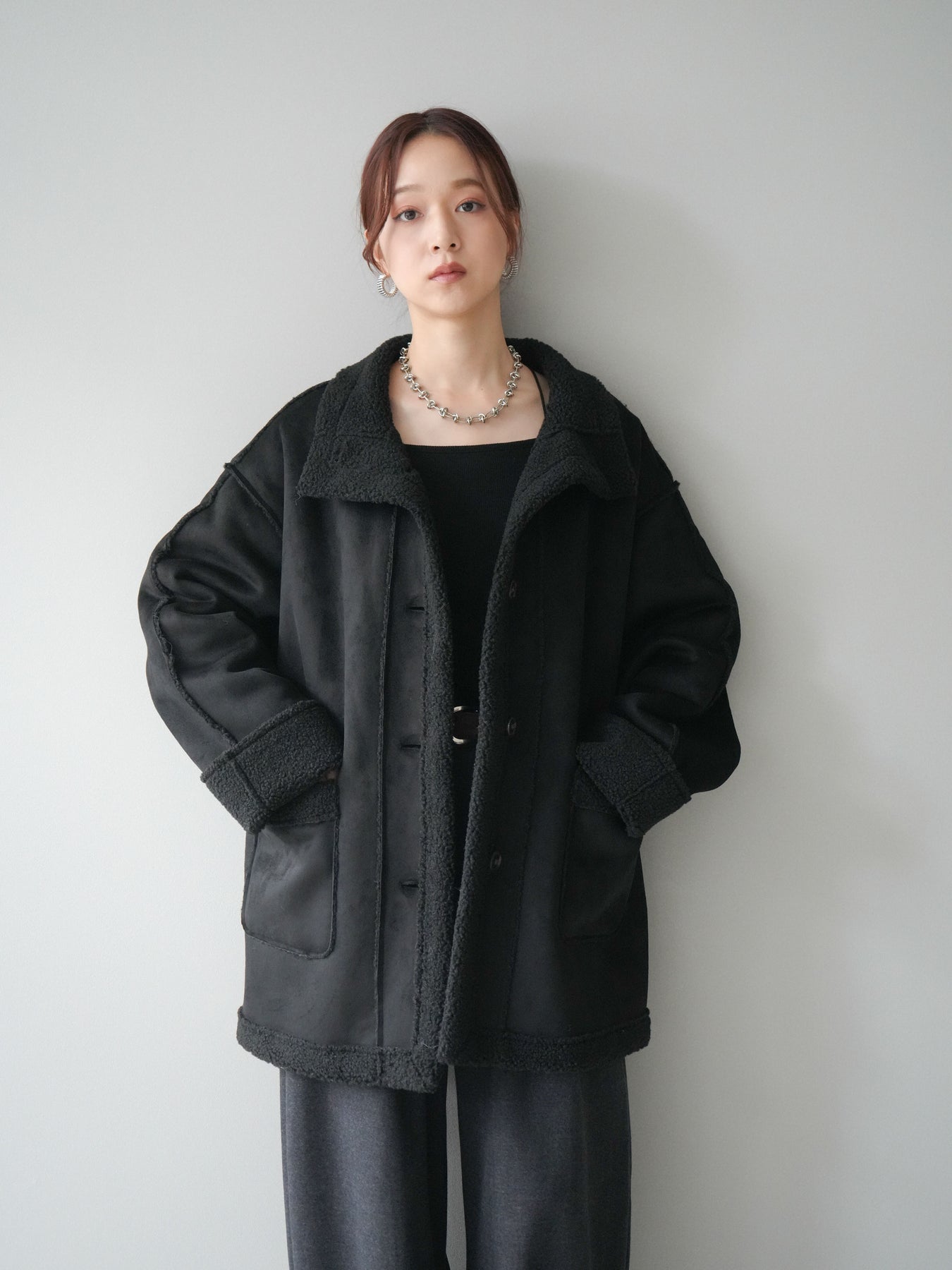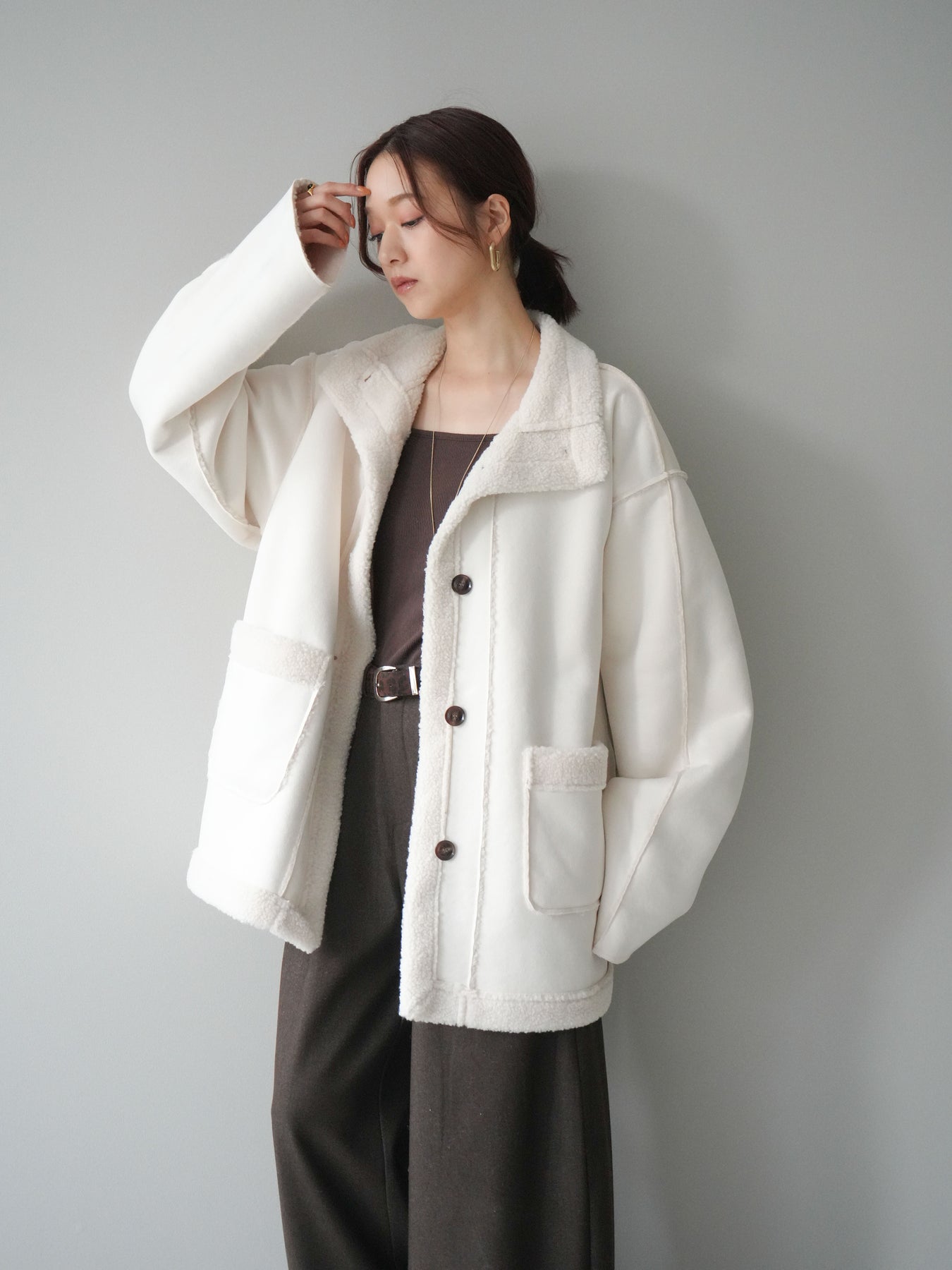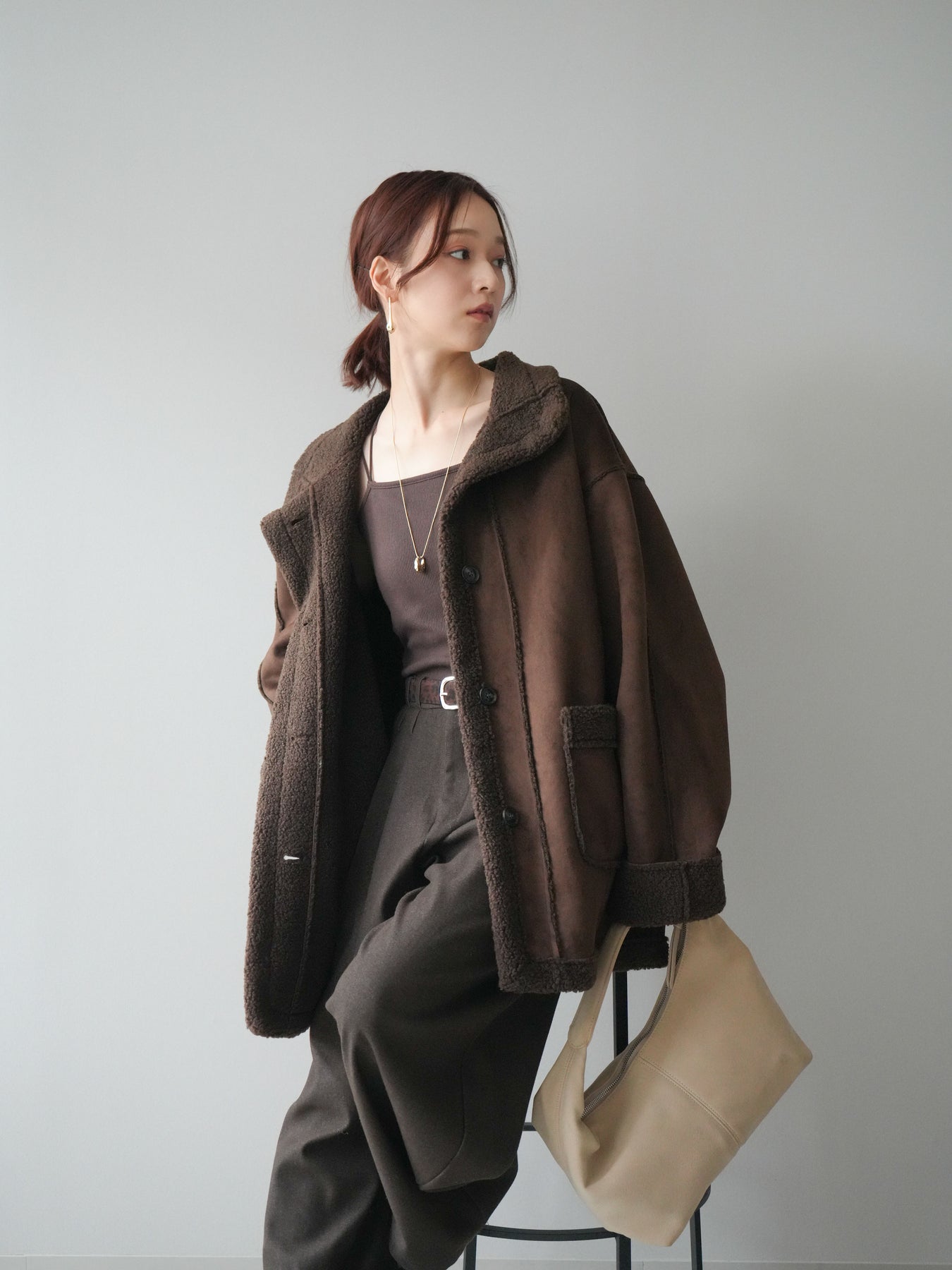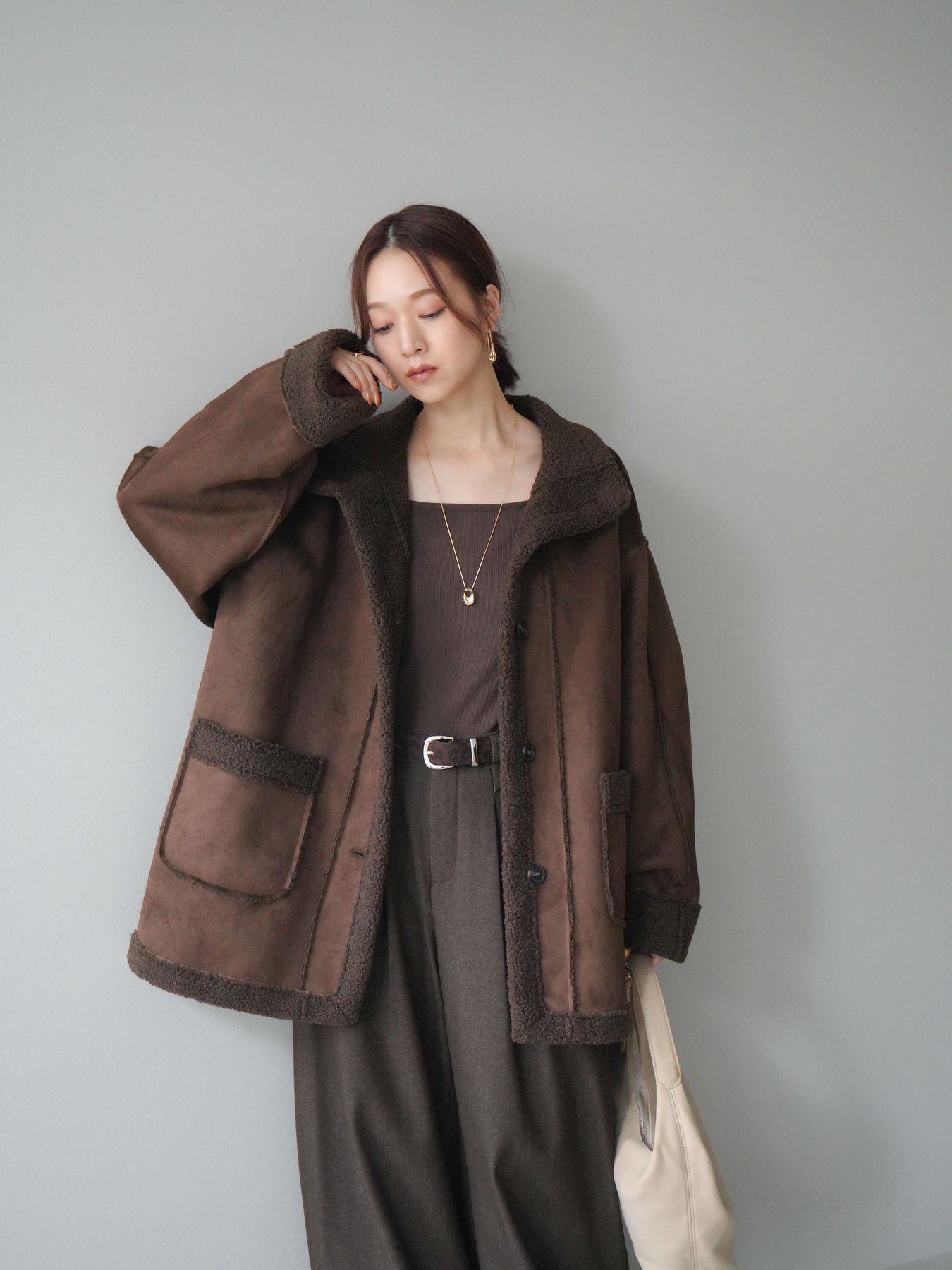 ◆ [予約]スタンドネックフェイクムートンミディアムコート