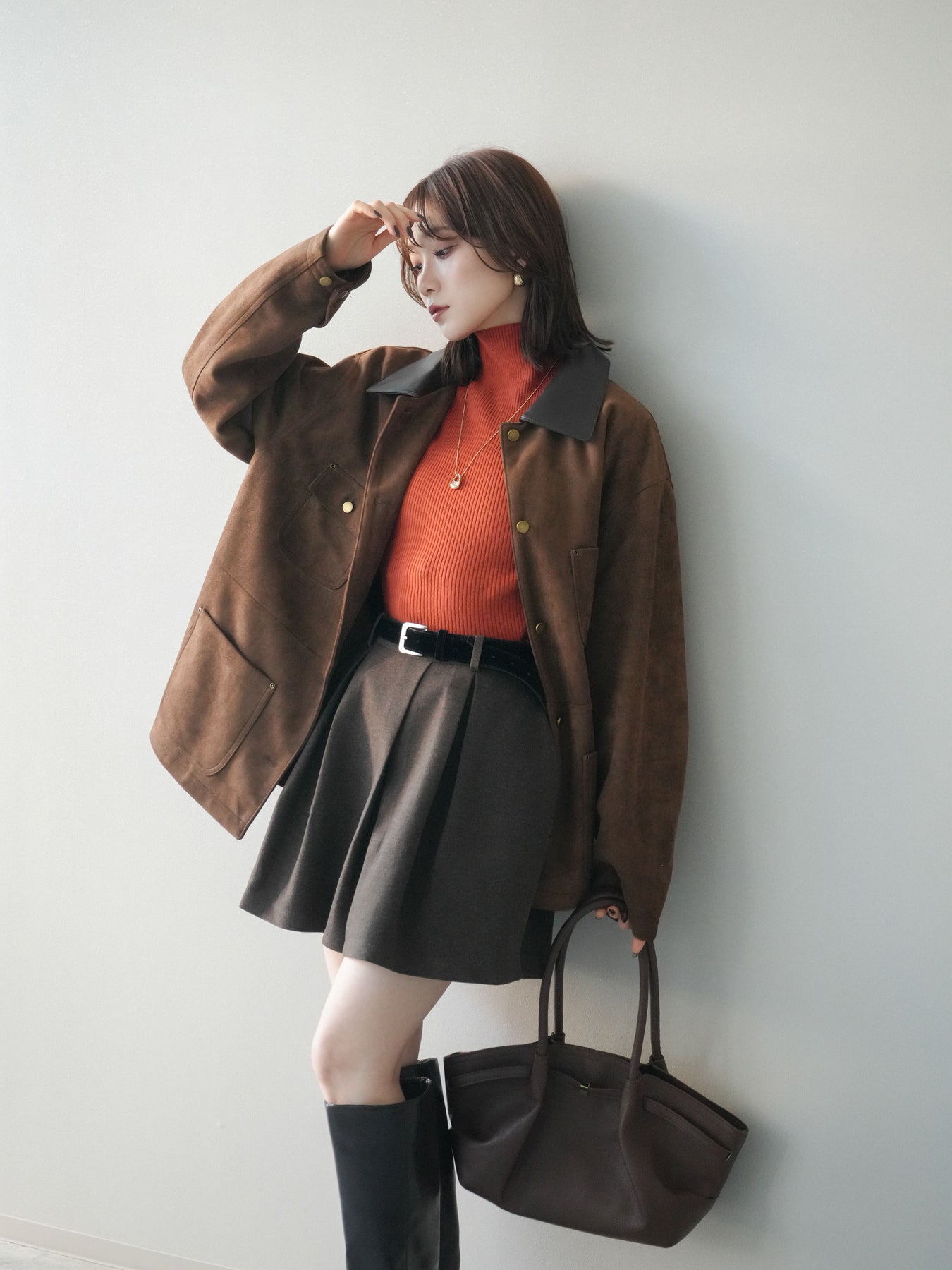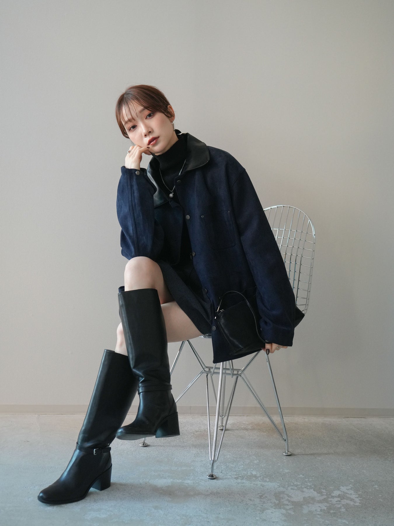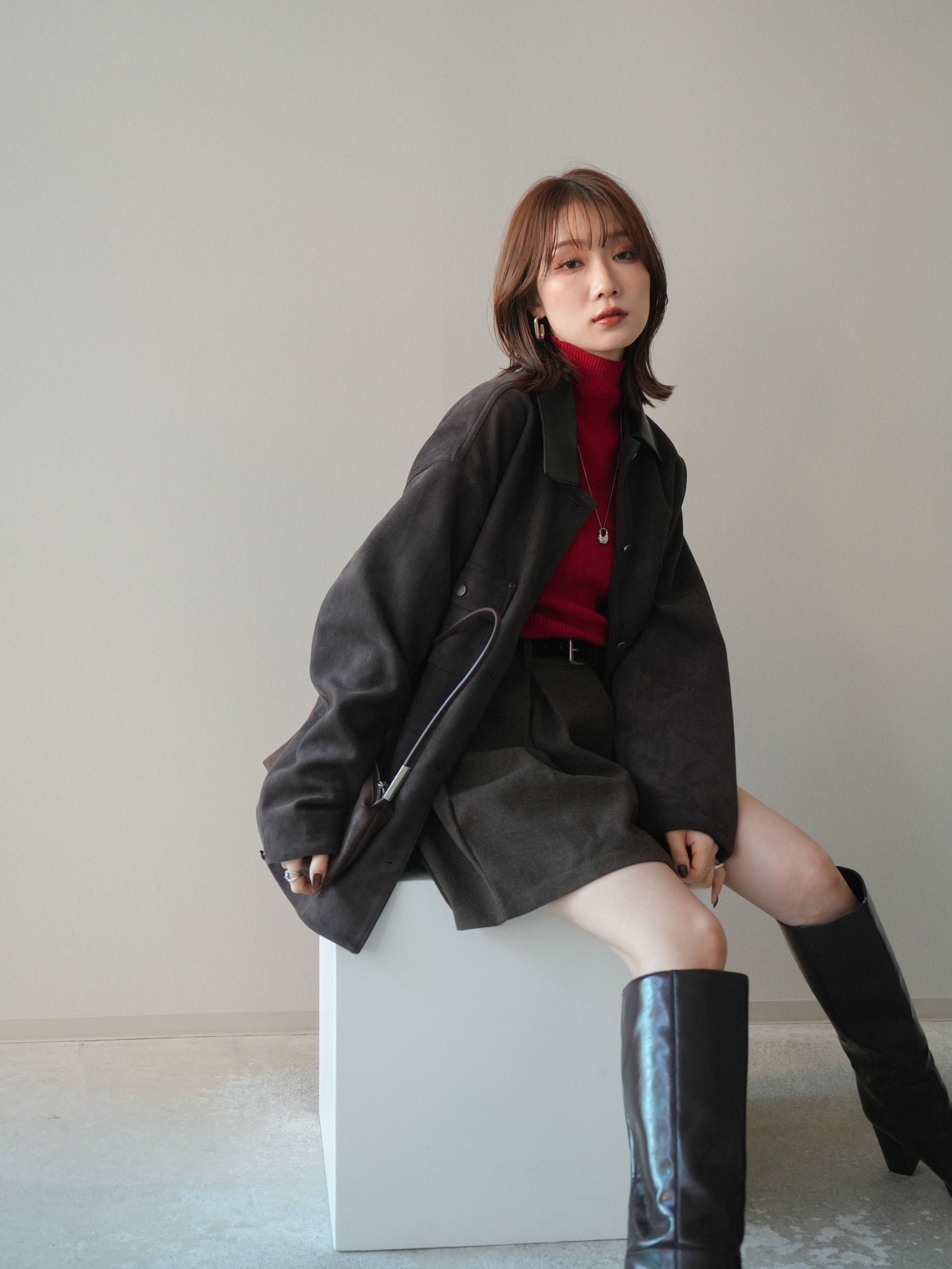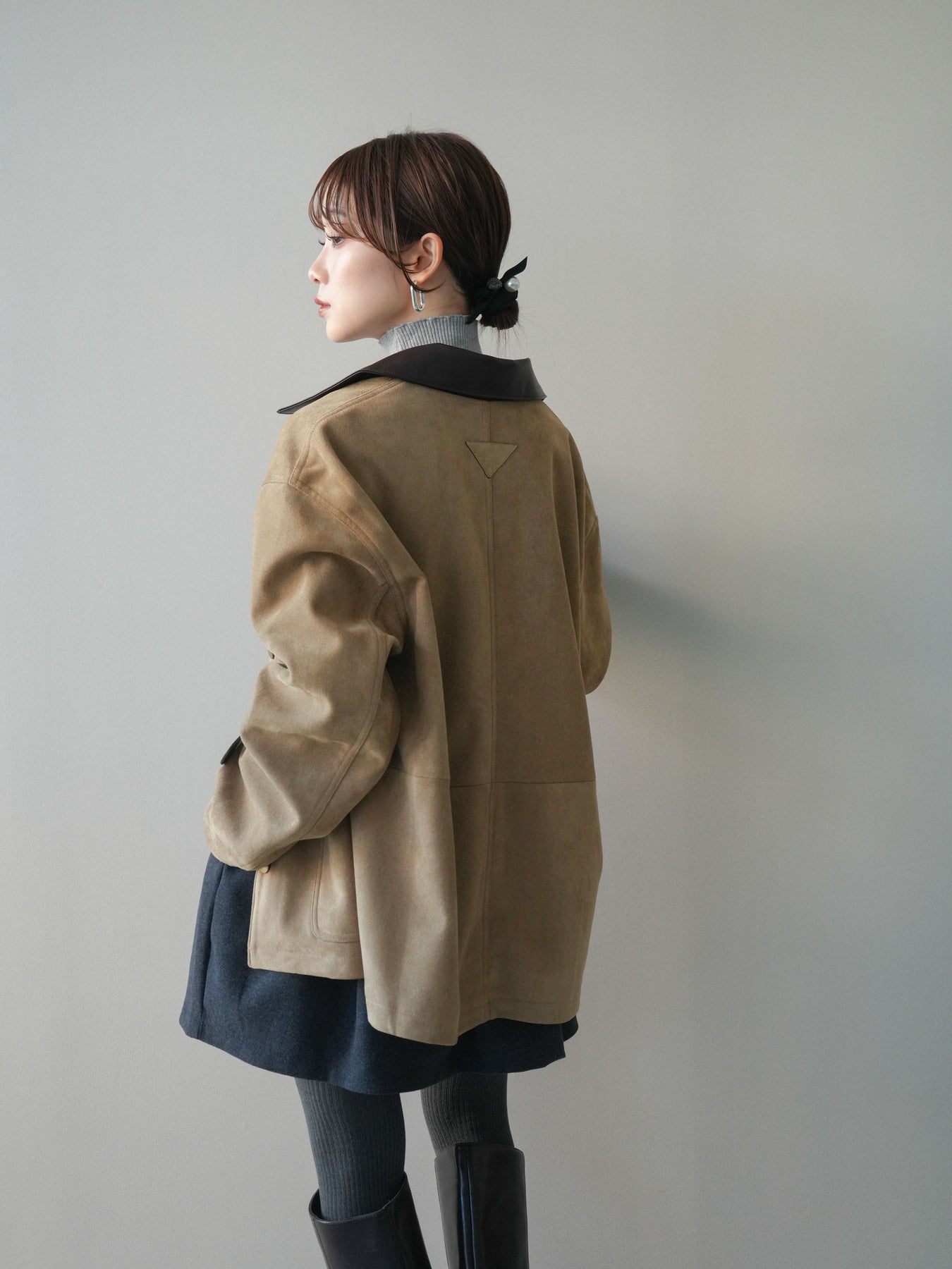 [予約]襟レザーステンカラースエードジャケット + [予約]襟レザーステンカラースエードジャケット