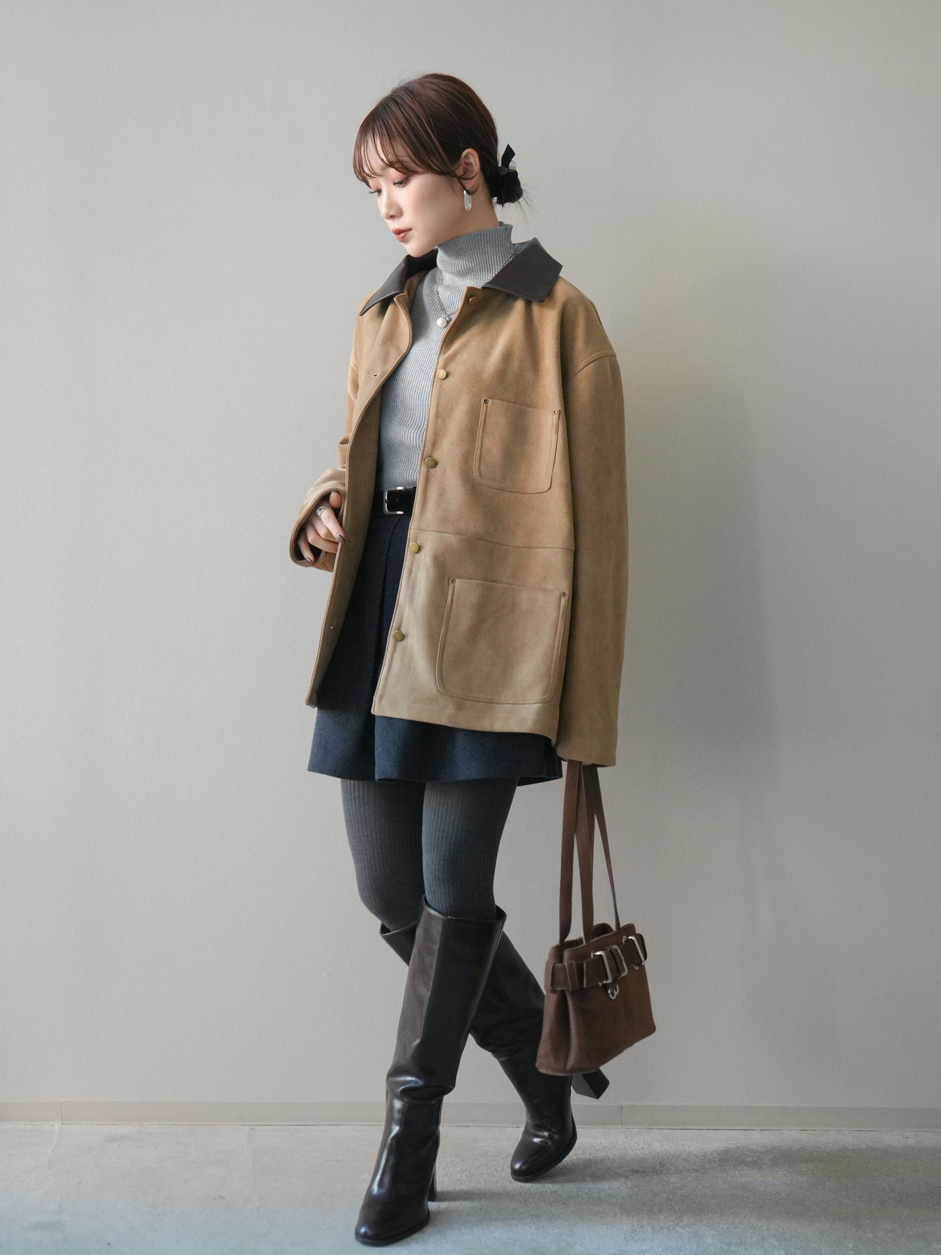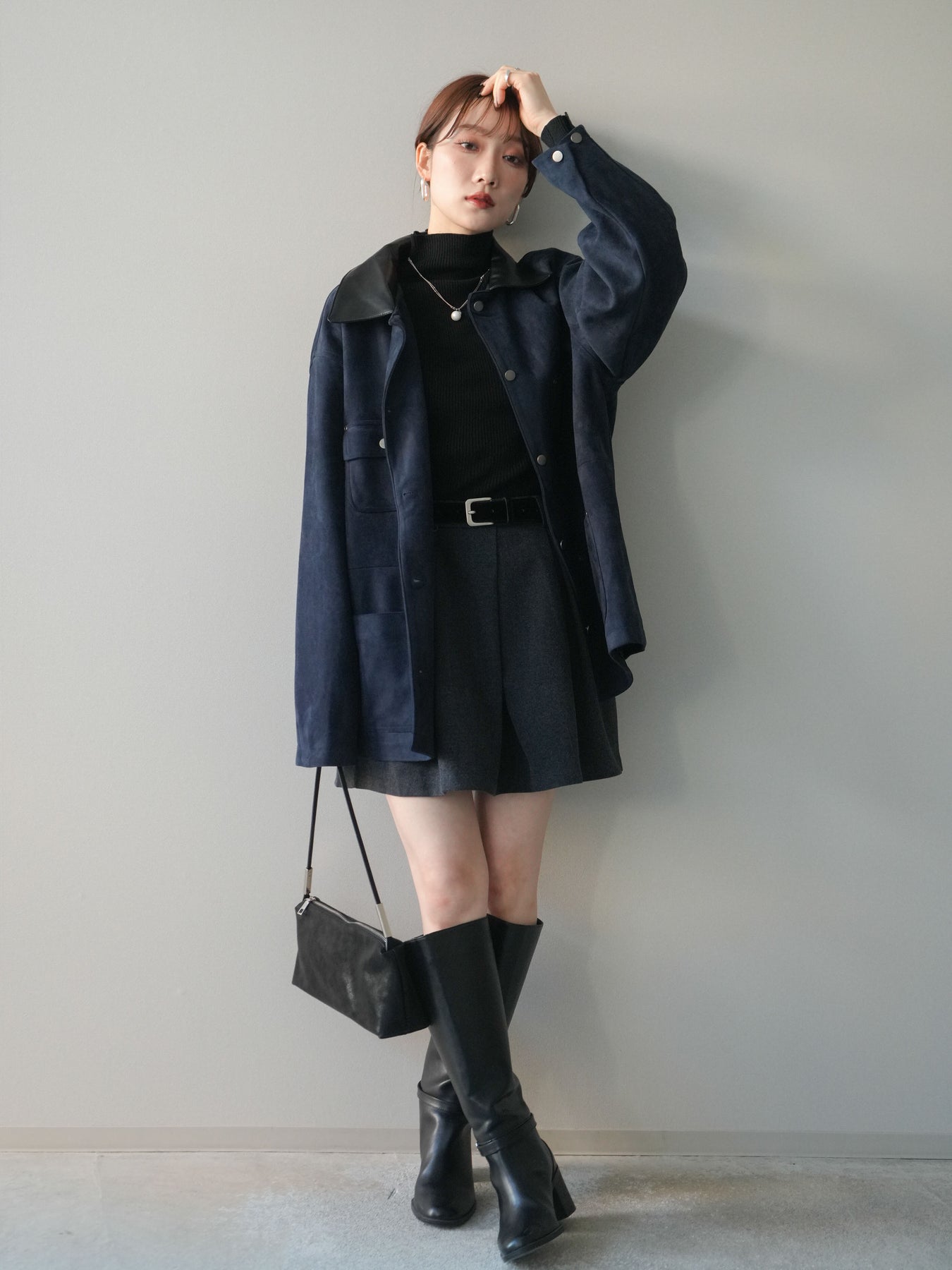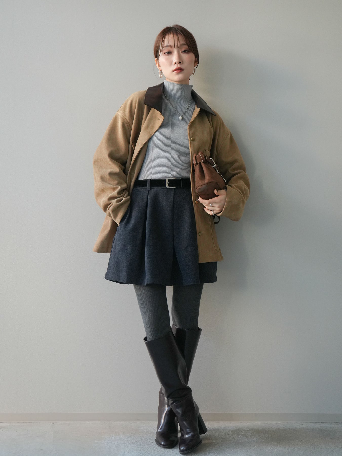 フロントに深めのタックを施し、立体感のあるシルエットに仕上げたミニスカート。ほどよいハリのある素材が美しいAラインをキープし、脚をすっきりと見せてくれます。ウエストには上品なベルトをセットし、スタイリングのアクセントになるだけでなく、スタイルアップ効果もプラス。ブーツやパンプスなど幅広いシューズと相性が良く、シンプルなトップスを合わせるだけで大人らしいバランスに仕上がる万能アイテムです。