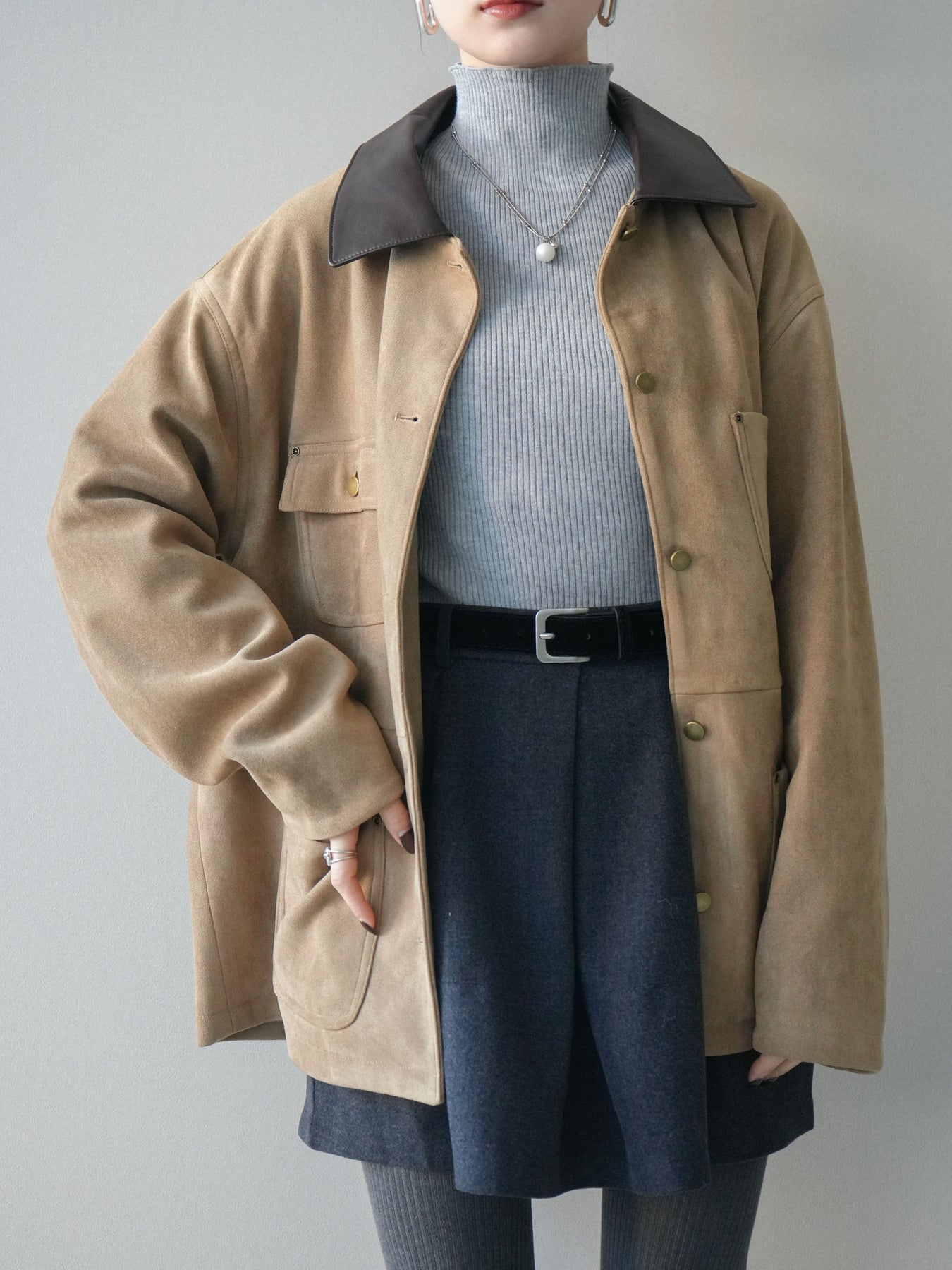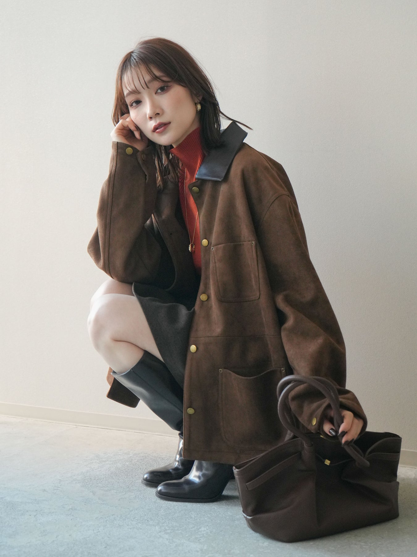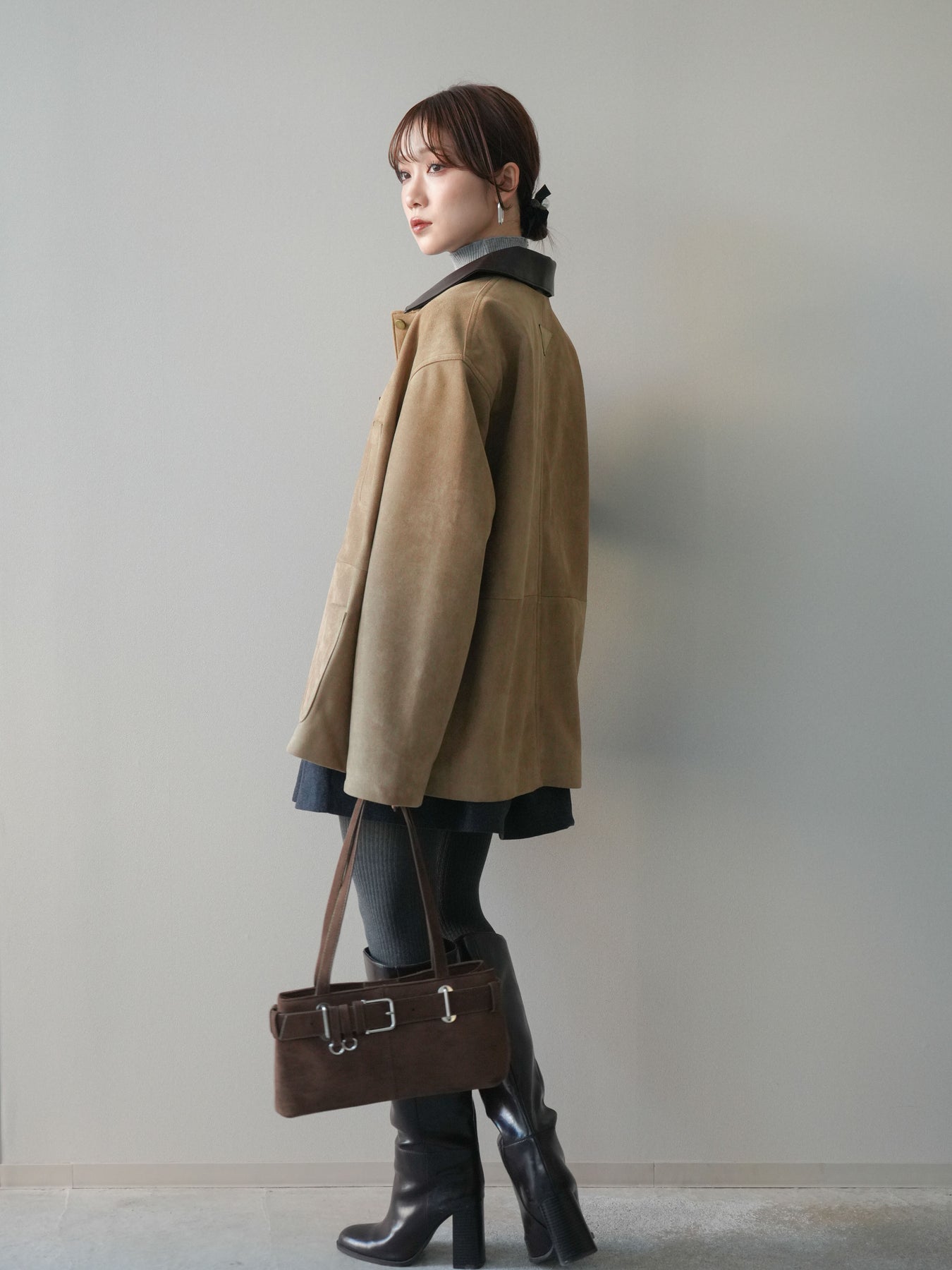 肩幅53cm バスト126cm アームホール32cm 袖丈57cm 袖口30cm 着丈70cm 裏地あり 透け感なし 伸縮性なし フロントポケットあり