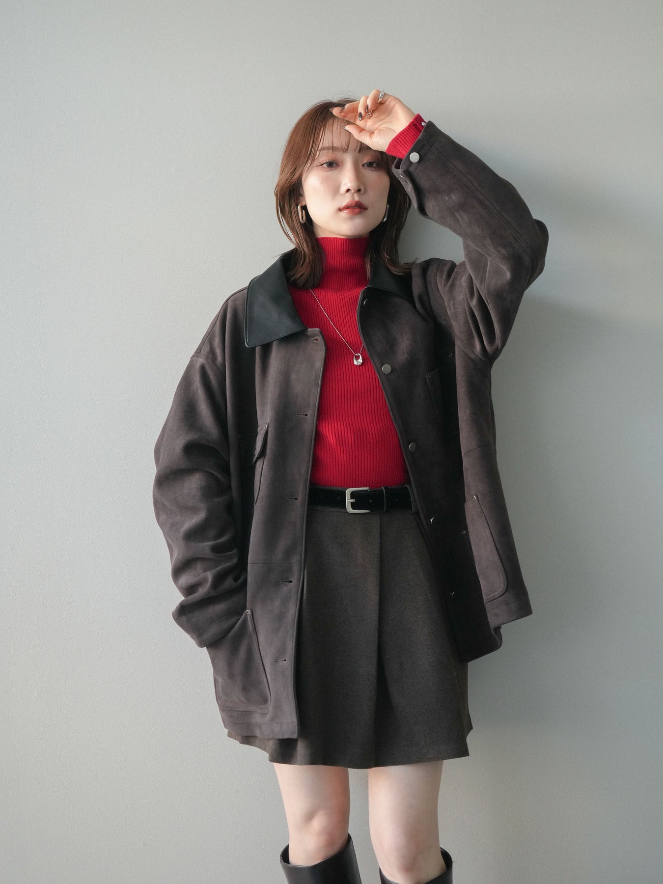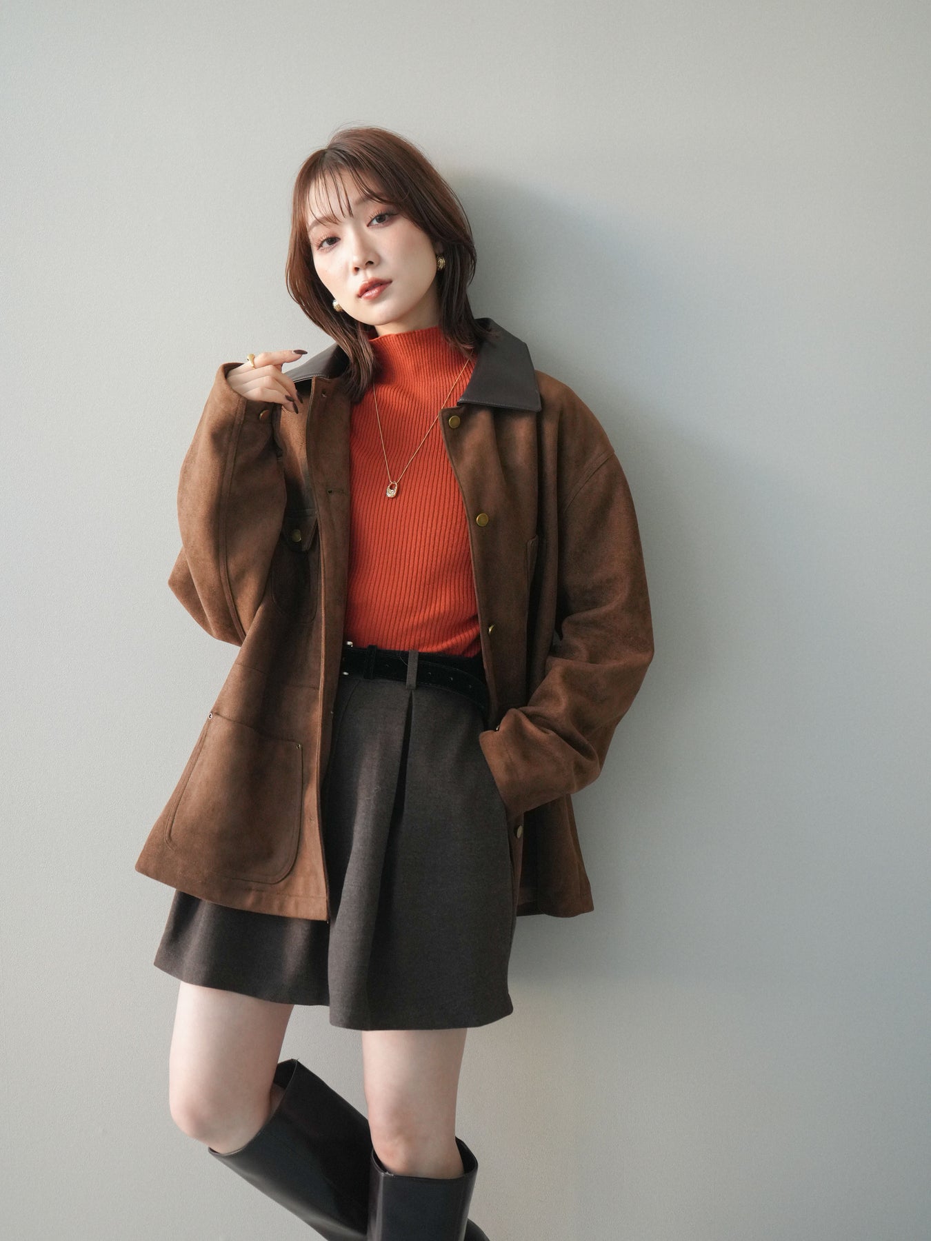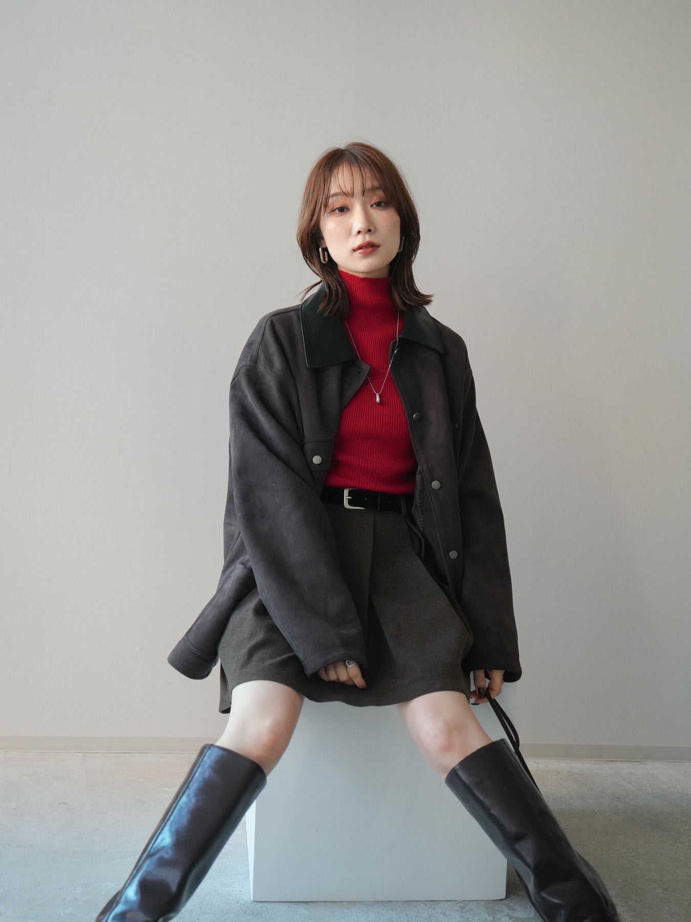 ◆ [予約]袖ボタンボトルネックリブニットトップス