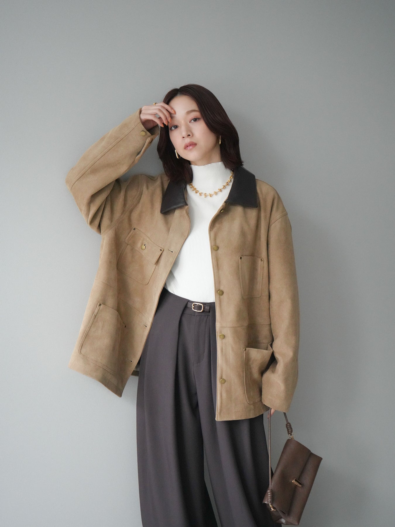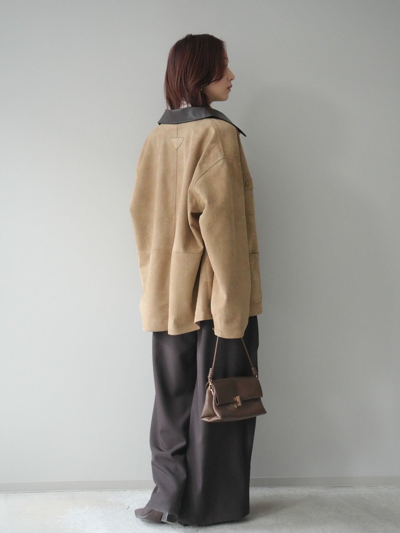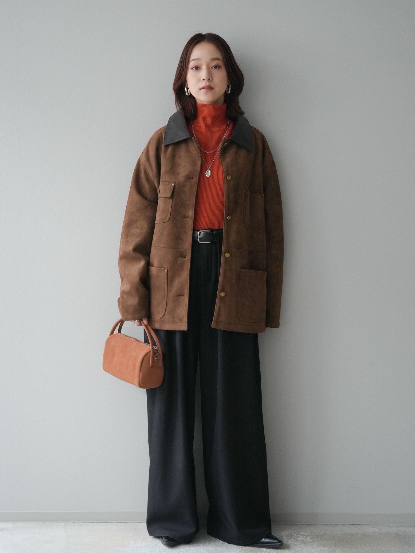 肩幅53cm バスト126cm アームホール32cm 袖丈57cm 袖口30cm 着丈70cm 裏地あり 透け感なし 伸縮性なし フロントポケットあり